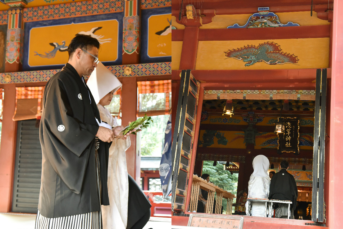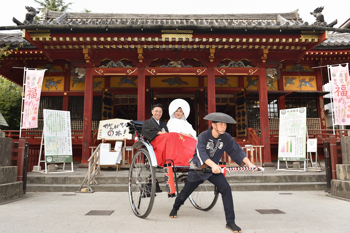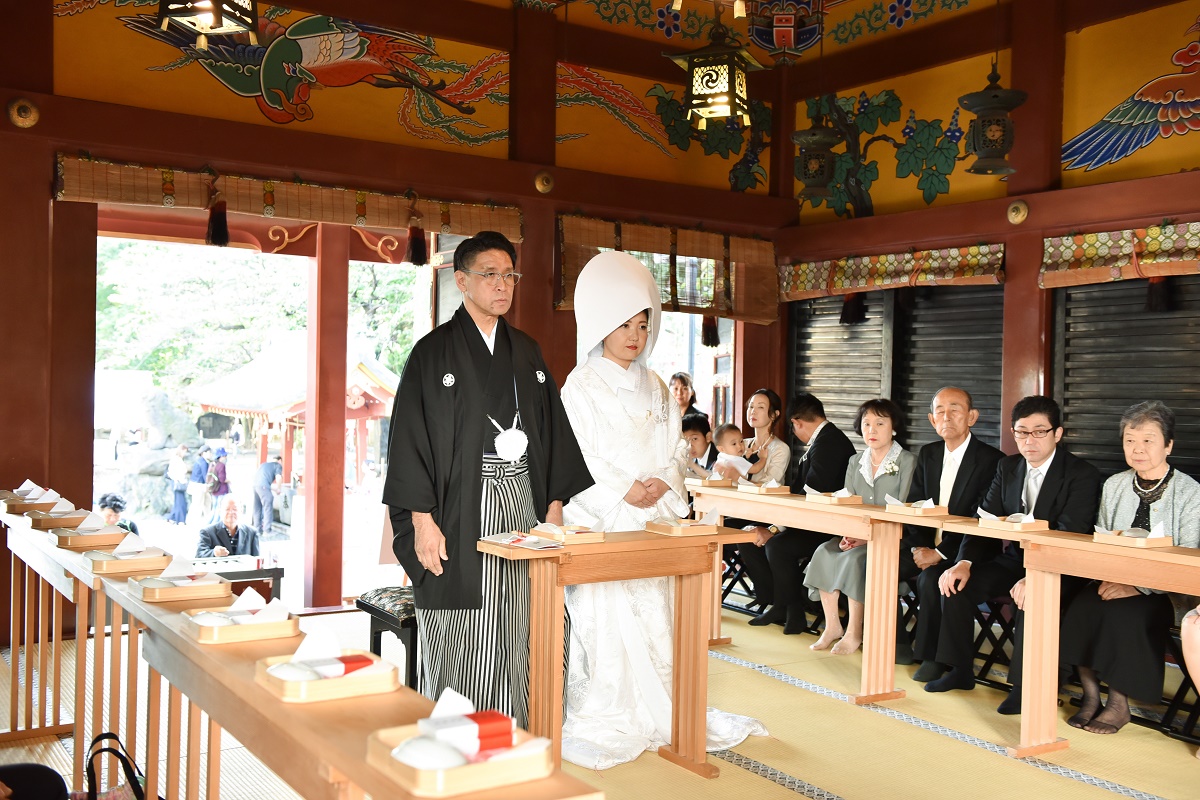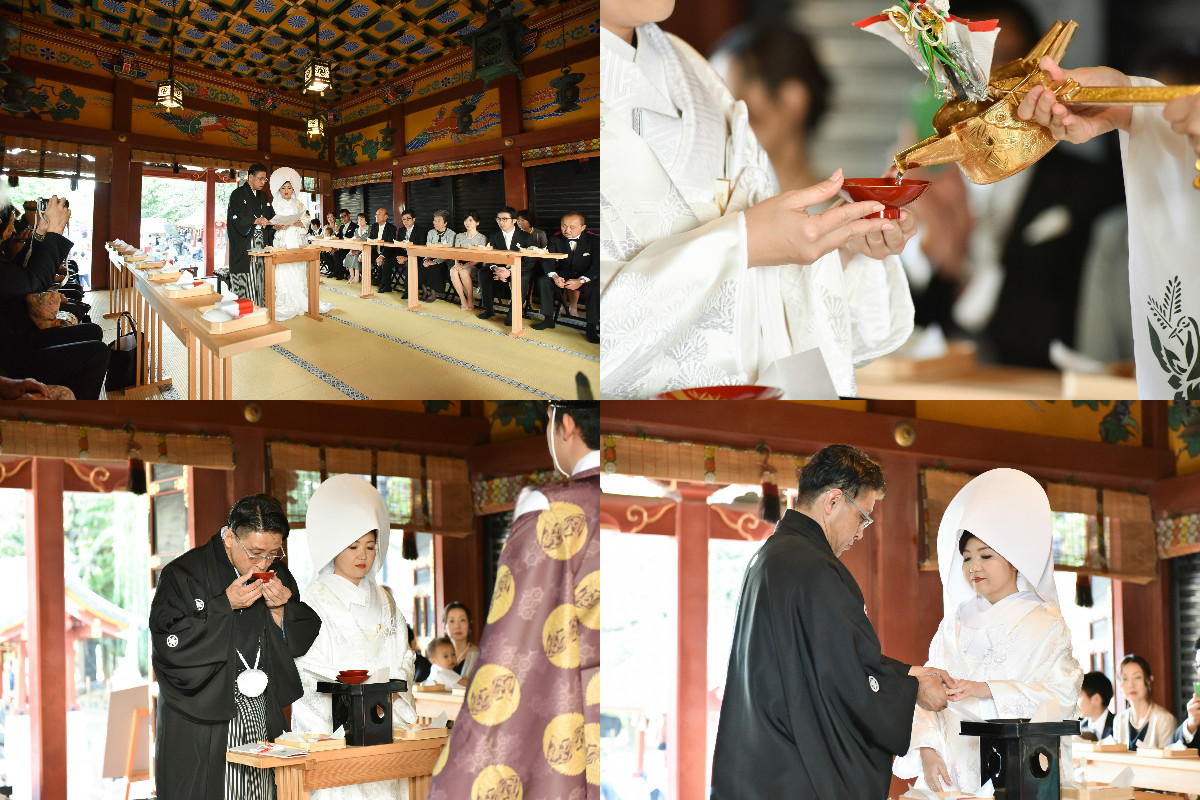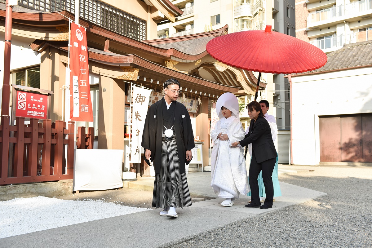 お店の入り口や中庭で、白無垢姿でお写真もたくさん撮らせていただき、より浅草の雰囲気を含んだアルバムができると思います。
