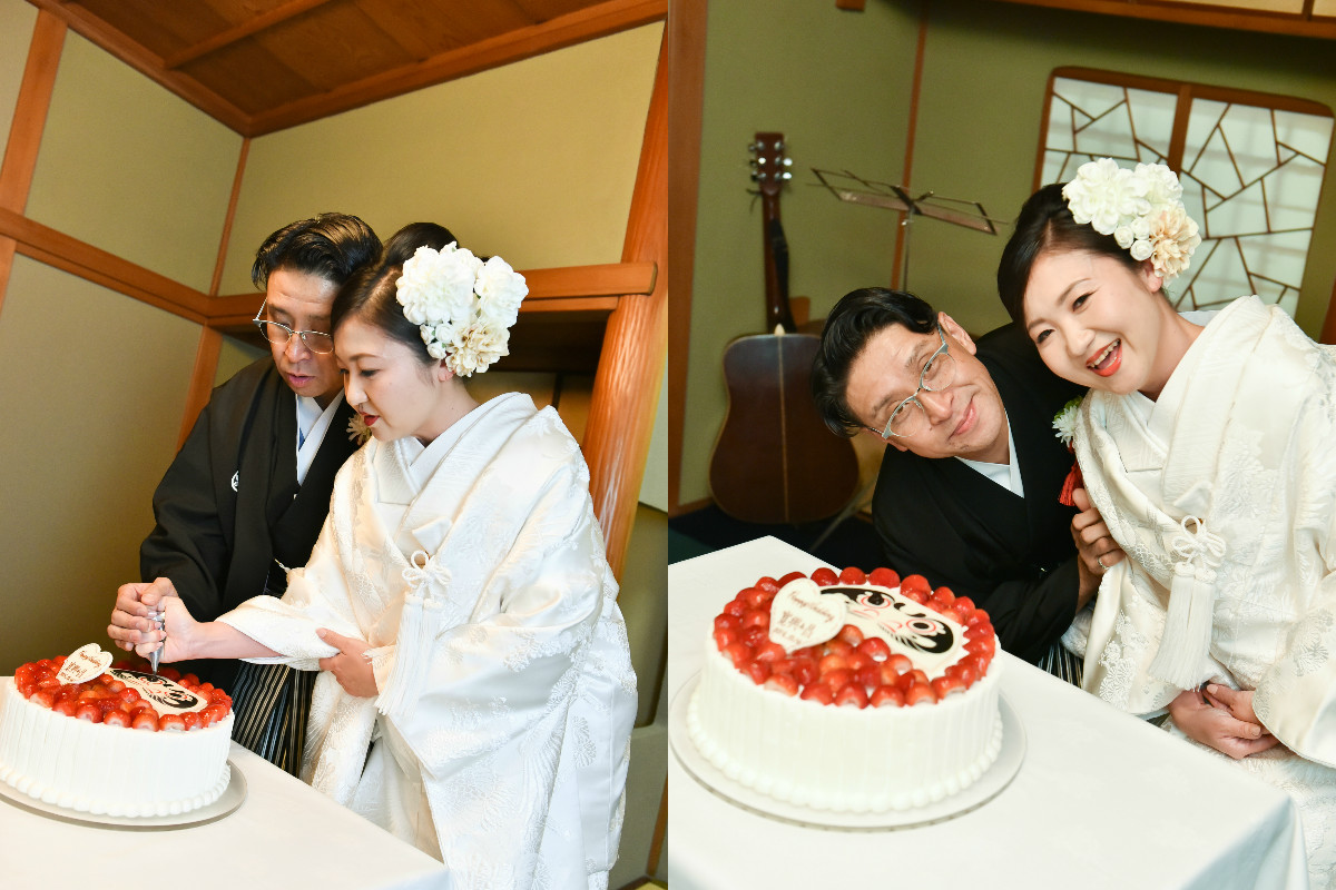 だるまさんのケーキも、最初は和食にケーキはなじむかなと思っていましたが、雰囲気も損なうことなく華やかでしたし、お味もちょうど良い甘さで良いデザートになったのではないかと思います。