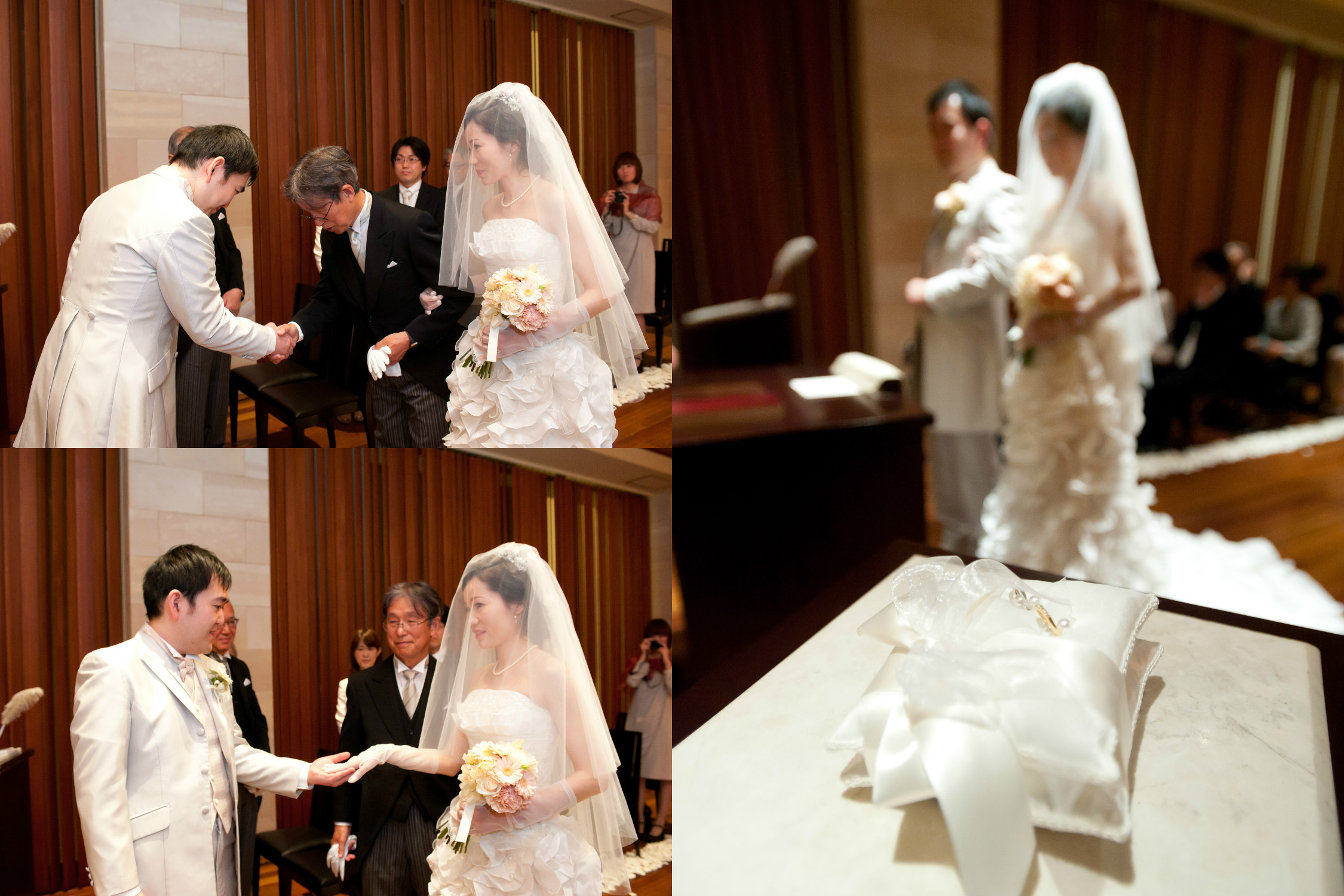 ただ、最後まで二人で迷ったのですが、披露宴(私達は身内での会食でした。)開始30分までの写真撮影はあってよかったと思います。披露宴の時間を使って身内と写真撮影ができましたし、プロの方に撮って頂いたことで、身内の方もゆっくりできたのではと思います。