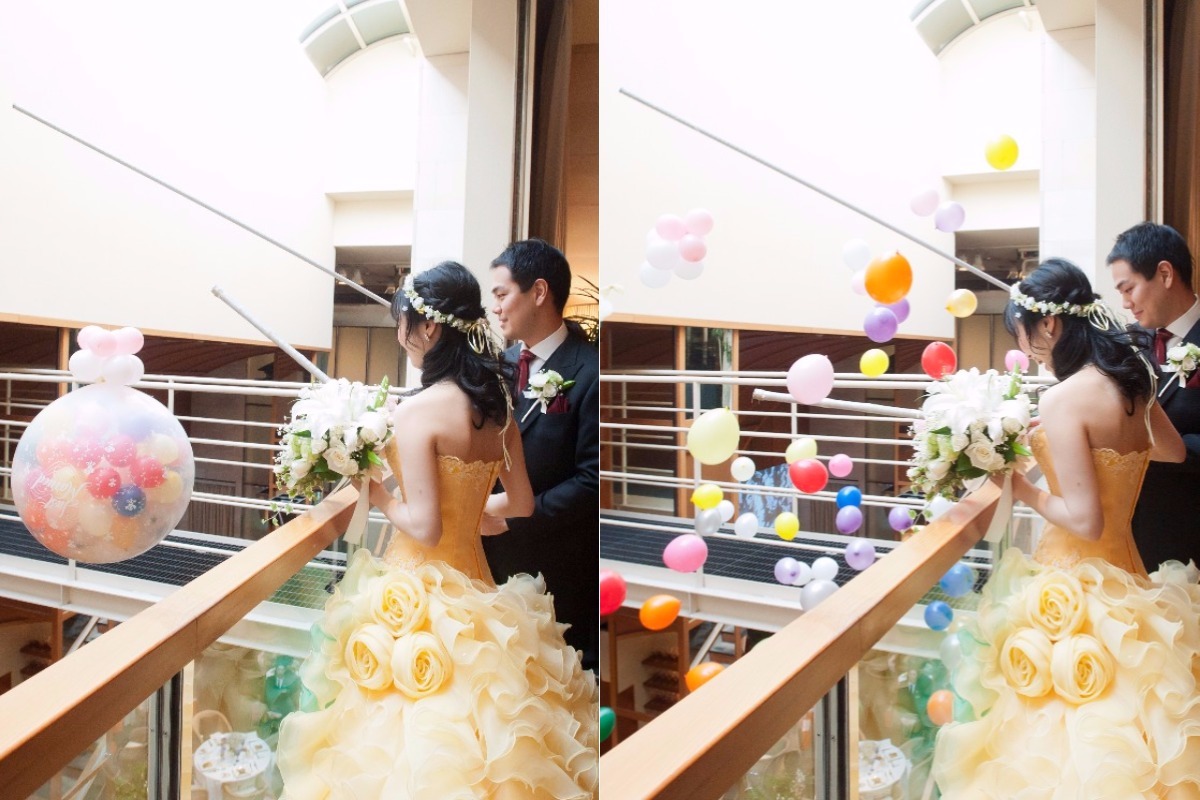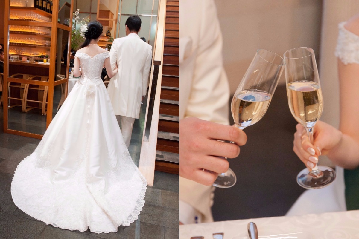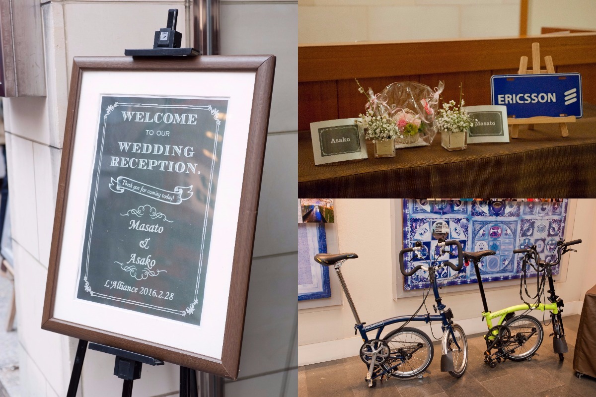ラリアンスの場合は、挙式会場に入るまえのエスカレータから入り口の部分が解放的なため、受付周りにしっかりと自分たちの個性を出せたのが良かったです。趣味のアイテム(自転車・写真など)を置くことで、ゲストに対して共通の趣味をアピールできた点も良かったです。また、ケーキ(生クリーム)が苦手だったため、ケーキ入刀ではなく鯛の塩釜開きが選択できた点も、他との差別化になったので良かったです。気が付いた点・鯛の塩釜が置いてあるプレートが残念だった(ゲストの声)