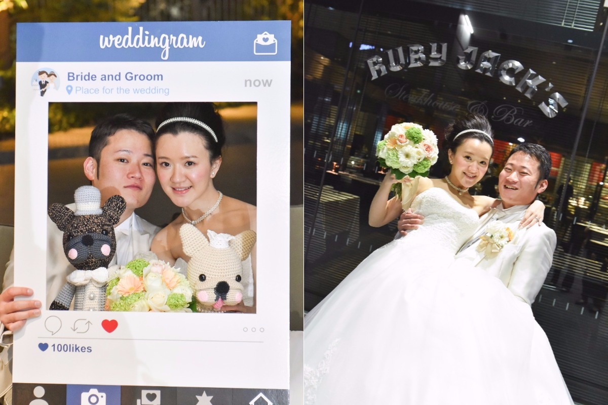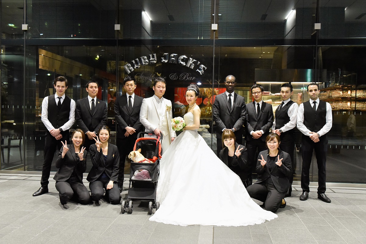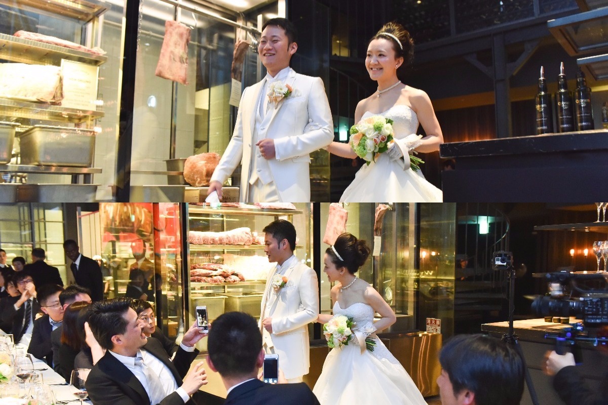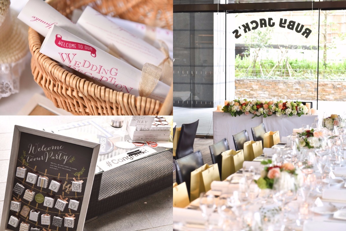 とにかく最初から最後まで全員参加型で楽しい雰囲気にしたい!視覚的に誰でも楽しめる演出にしたい!という気持ちが強かったです。外国から参加するゲスト(日本語がわからない方々)が多かったため、司会は日英Bilingualの方にお願いし適宜通訳を通してゲストみんなに状況が伝わるようにしました。ケーキカットではBGMにMaroon 5の「Sugar」を採用、踊り出すゲストも現れ、とても盛り上がりました(これはやはり鉄板!!)また海外から参加してくれた友人カップルにサプライズでサンクスバイトを仕掛けました。ビアサーバを担いで行なったテーブルラウンド、全員タイミングを合わせて行うスパークバルーンではプレゼントの他にドッキリスピーチを仕掛けるなど、国籍、年齢、性別関係なく全員が楽しめるプログラムを選びました。結果、ゲストのみなさまも終始笑顔だったので大成功でした!