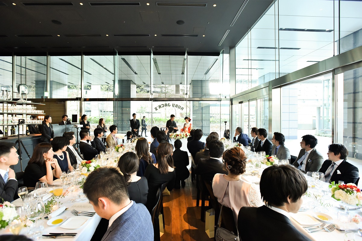 2つ目は会場のキャパシティが招待したかった人数(80名ほど)とちょうどマッチしていたところです。会場の上限が80名ということで、広すぎず狭すぎず、新郎新婦の席からもすべてのゲストが見渡せる状態でアットホームな演出もやりやすいだろうと思いました。最後に六本木一丁目駅直結というアクセスの良さと、六本木にも近く2次会も開催しやすかったからです。