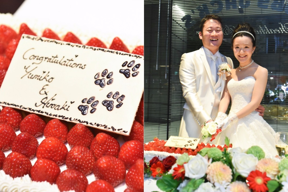 お料理は本当に良い意味で裏切られました。元々会場選定時に頂いた試食もとても良かったのですが、実際のメニューは私たちの出身地の食材(新郎が九州出身だったので豊後牛やあまおう等)を選定したり、ゲストの方々の嗜好に合わせくれました。すべてのメニューにオーナーシェフ(熱意がすごい!!)の独創的なアイディアを盛り込まれ、唯一無二のメニューとなりました。一般的な披露宴料理とは同じ価格帯でも、味とクオリティは全く異なる素敵なお料理の数々をゲストに楽しんでいただくことができました。