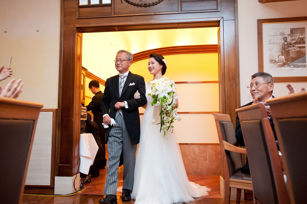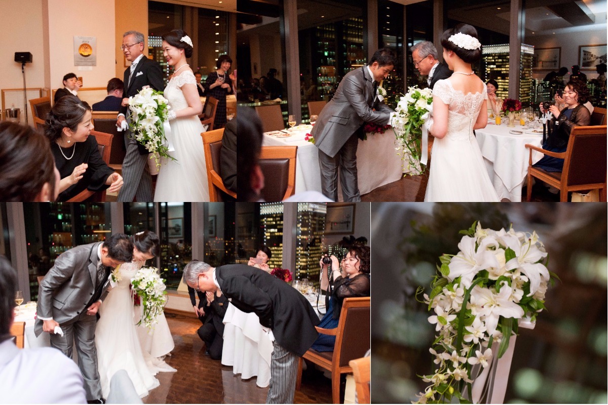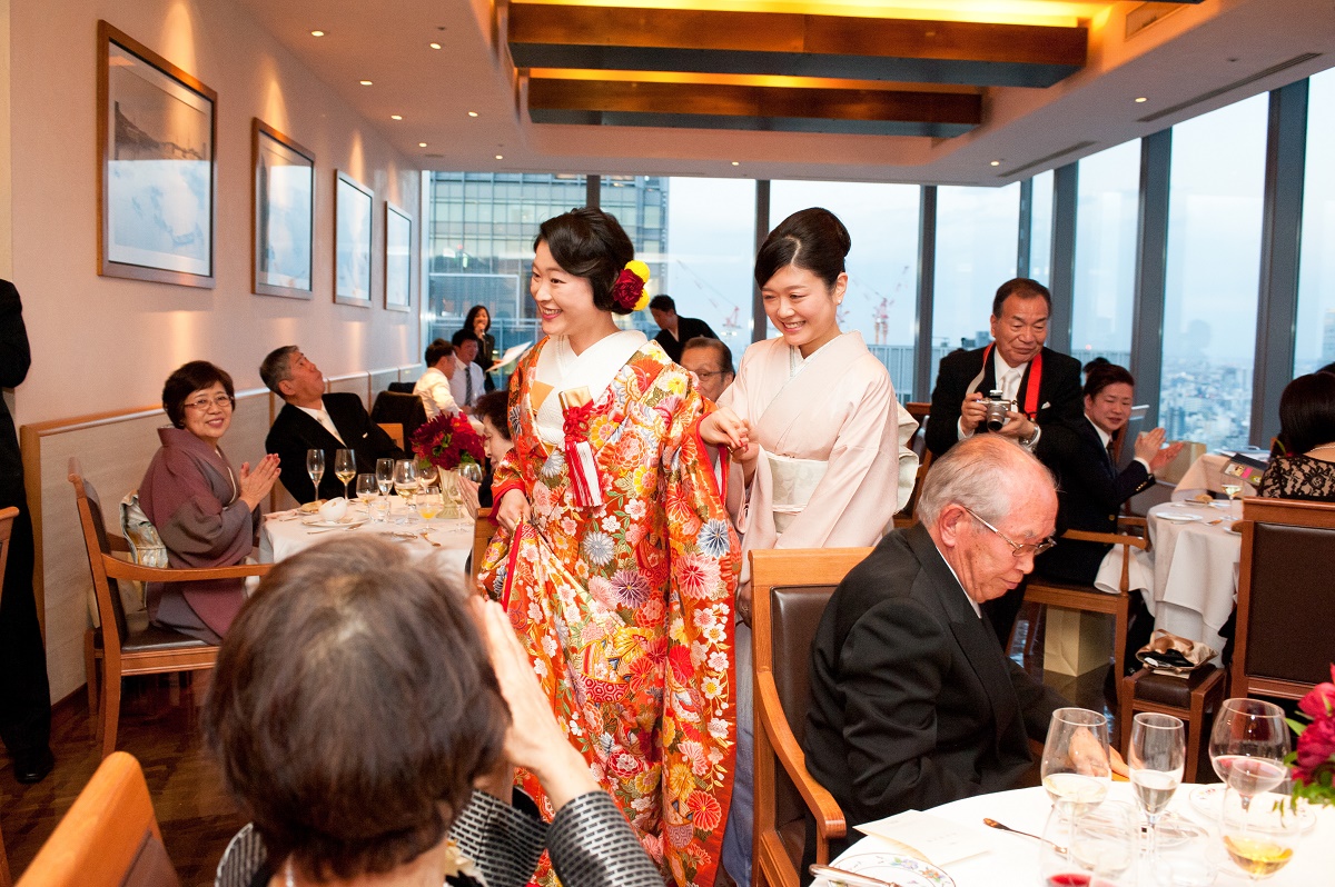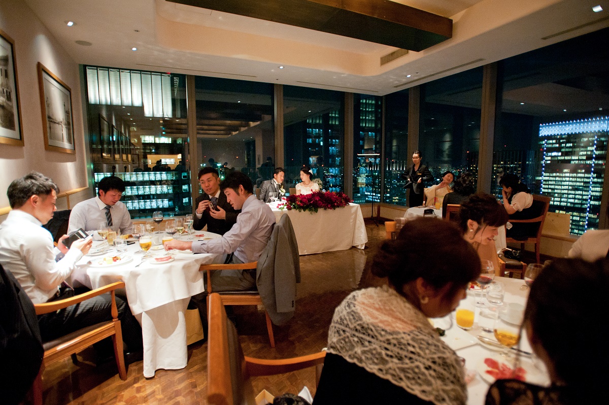 もともとイタリア文化が好きだったため、内装や装飾品などがミラノから持ってきていると聞き、ワインの種類や料理のクオリティーの高さは間違いない!と確信できたのもポイントでした。両家の親族が遠方からくることもあり、交通の便が良い丸の内でできるため、ゲストの方の負担も軽減できると感じました。また東京が一望できるロケーションのため、なかなか東京にはこない親族の方に東京の素敵な夜景をお見せすることができるよい機会だ思いました。