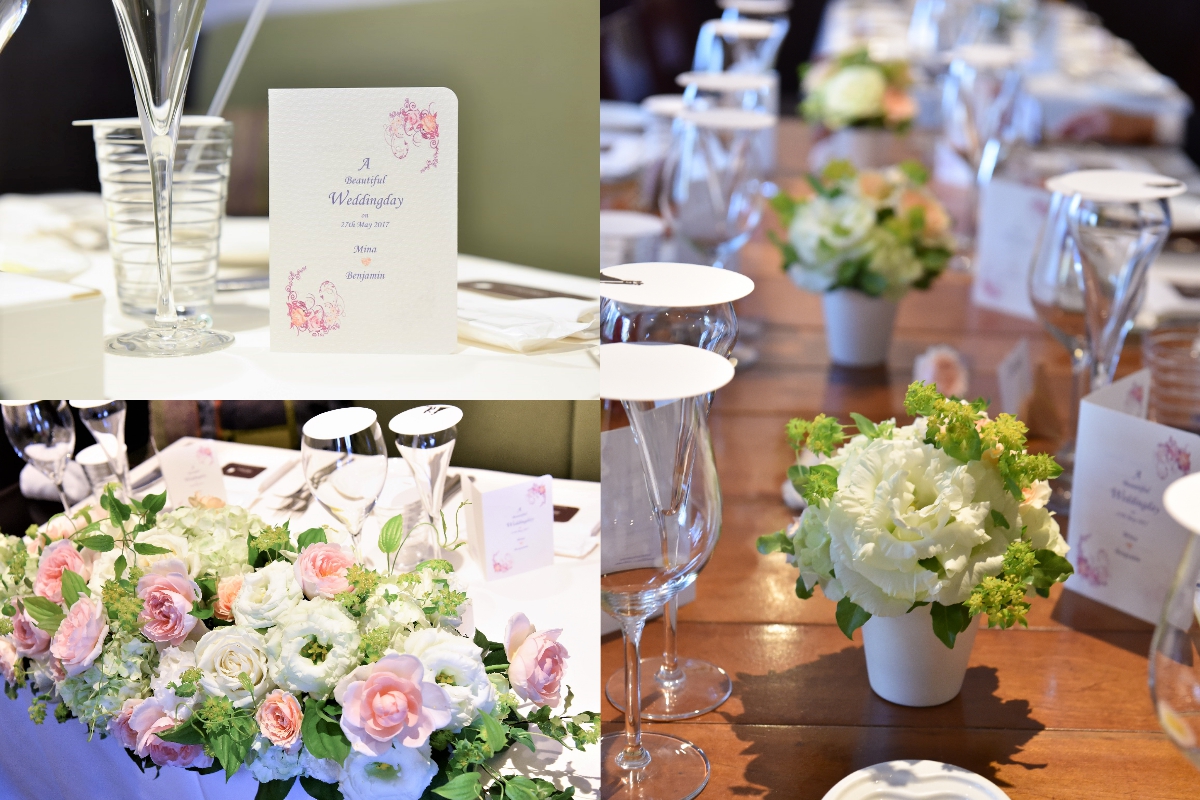 国際結婚であったため、両家の家族が全員集合する初めての機会となりました。両家のファミリーがそれぞれお互いを知り合う良い機会になればと思い、敢えて小さな会にしたいなと思っていました。また、数人の友人にも参加してもらったのですが、それぞれが私たちのSTORYの登場人物であるという事、その一人一人の登場人物に心から感謝しているという事を知ってもらえる会になればと思いました。席の配置も、知り合い同士のグループではなく、私と彼の友人・家族がミックスして座ってもらい、会が終わるまでに新しい知り合いを作って帰って行ってもらいたいなという希望があり、配席にもこだわりました。