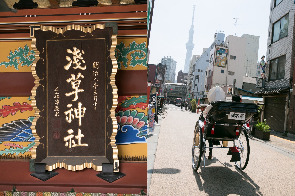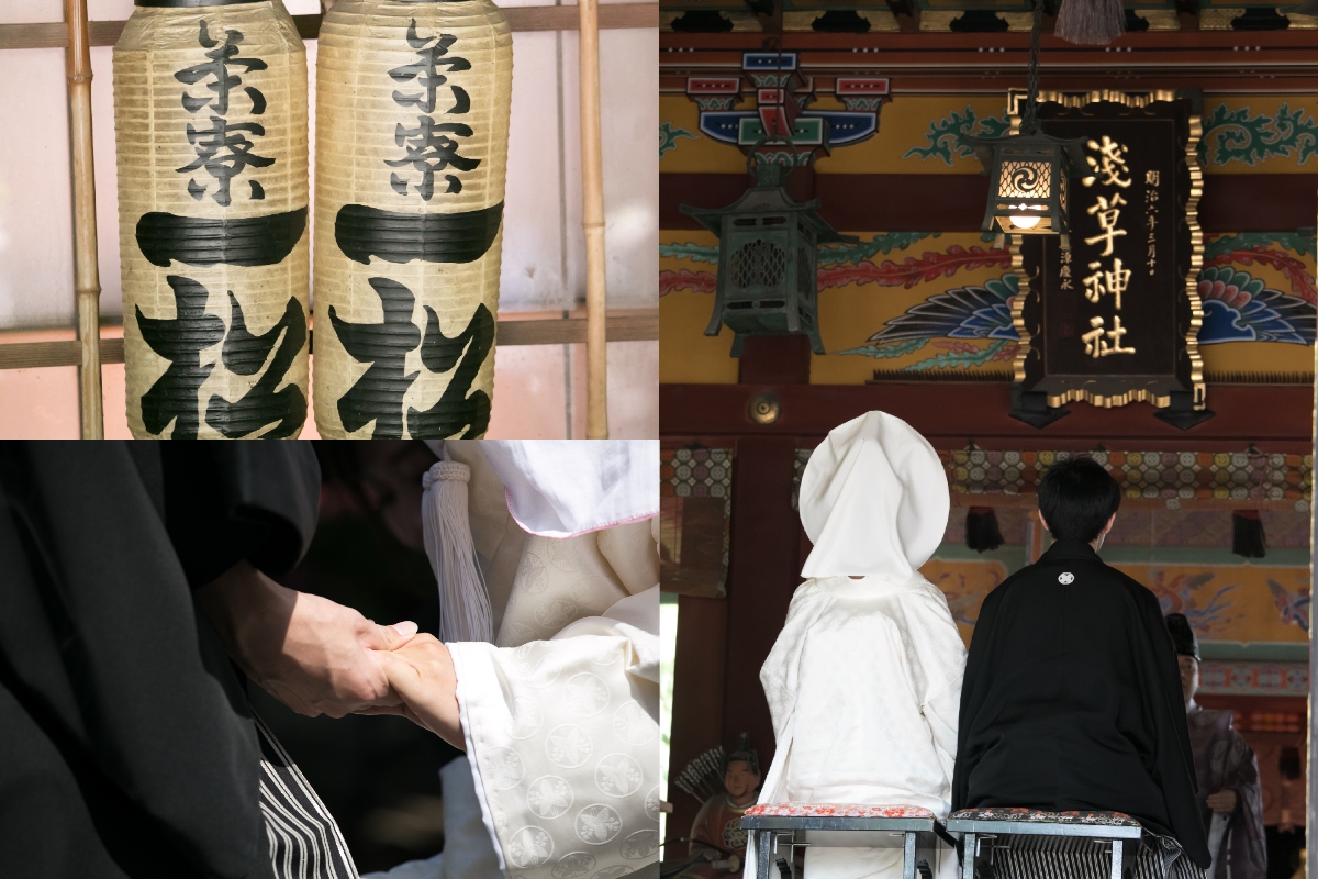 芸者さんをお呼びしてお酌してもらうこと。ケーキ入刀ではなく、鏡開きをおこなったこと。恥ずかしかったですが、浅草神社に向かう途中、人力車に乗らせてもらったこと。よい思い出になりました。