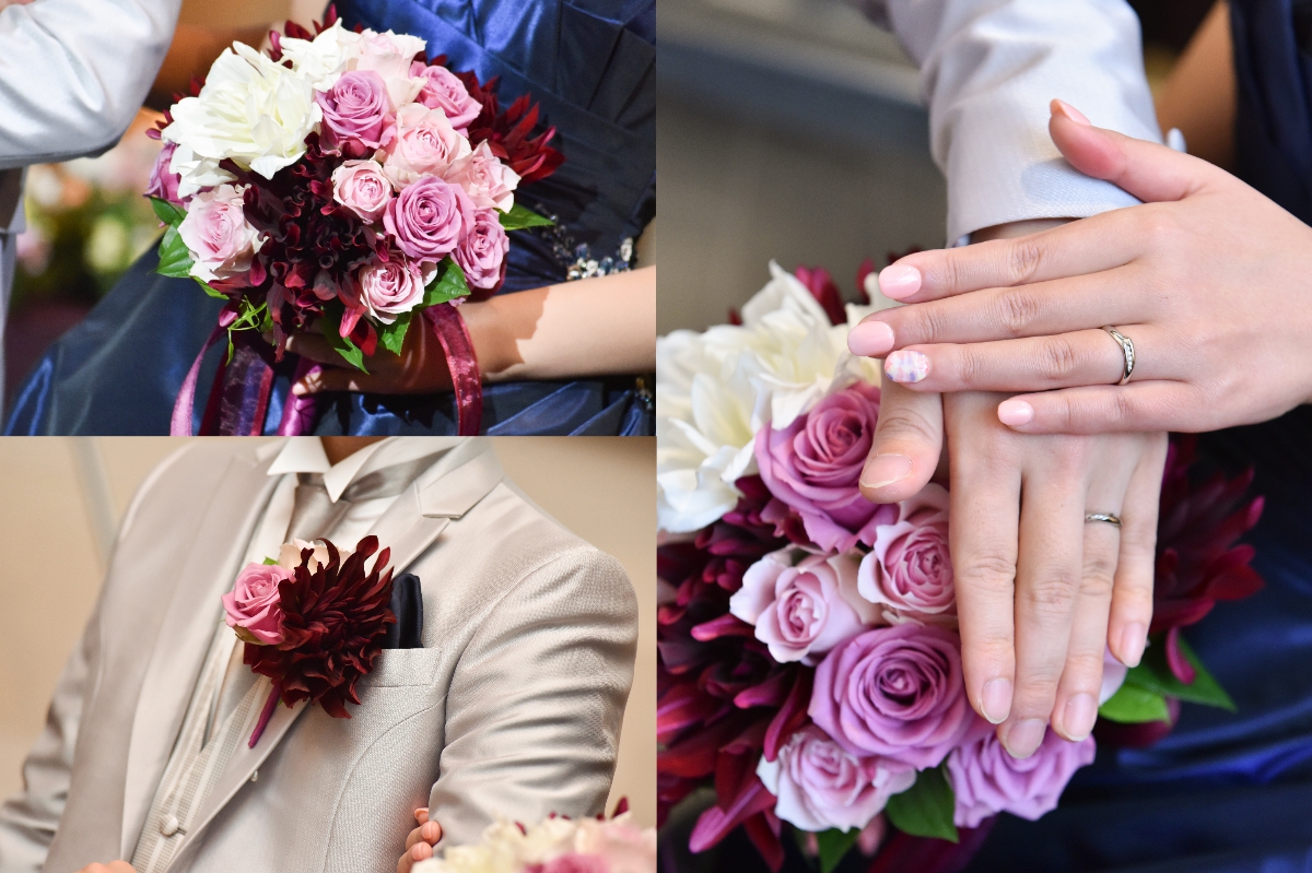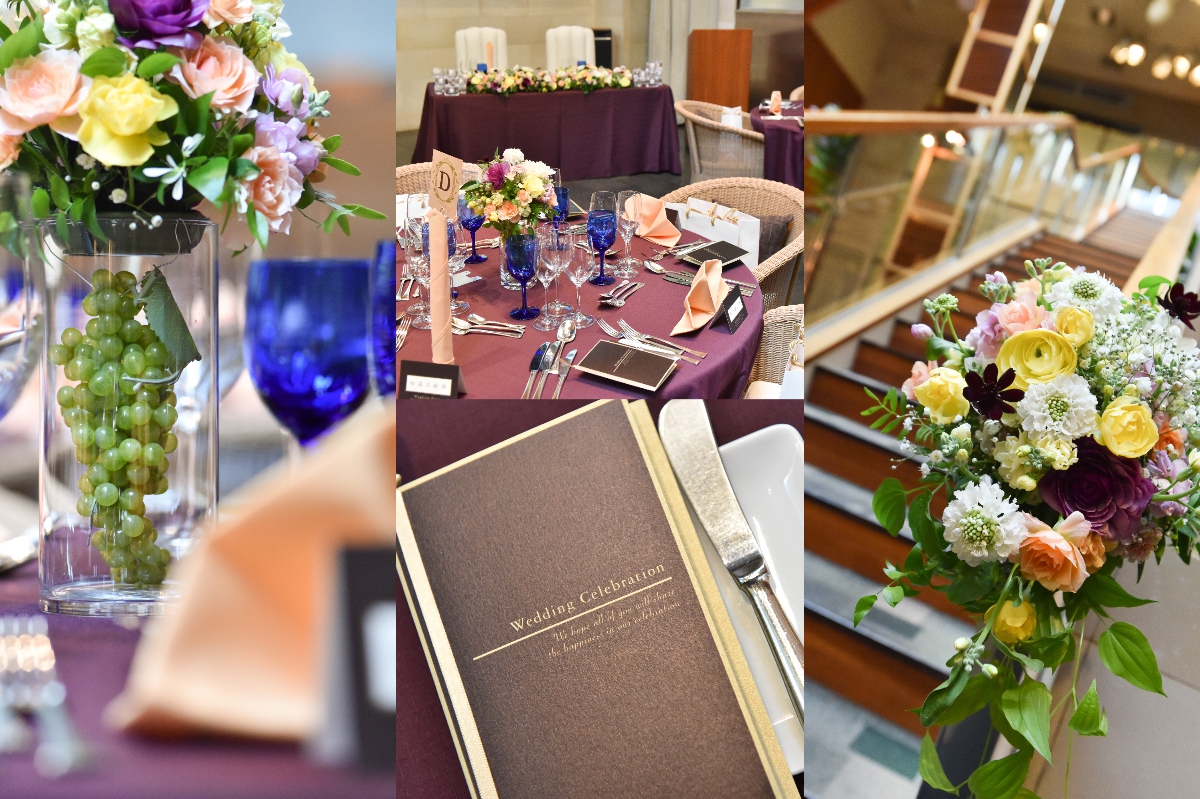 一方、お互いの意見が分かれる部分は無理には統一させず、新郎側と新婦側でナプキンの折り方や卓上花等は別にしました。