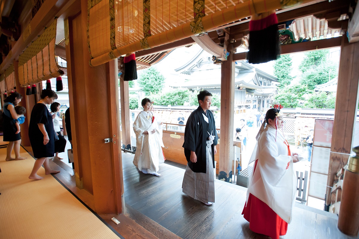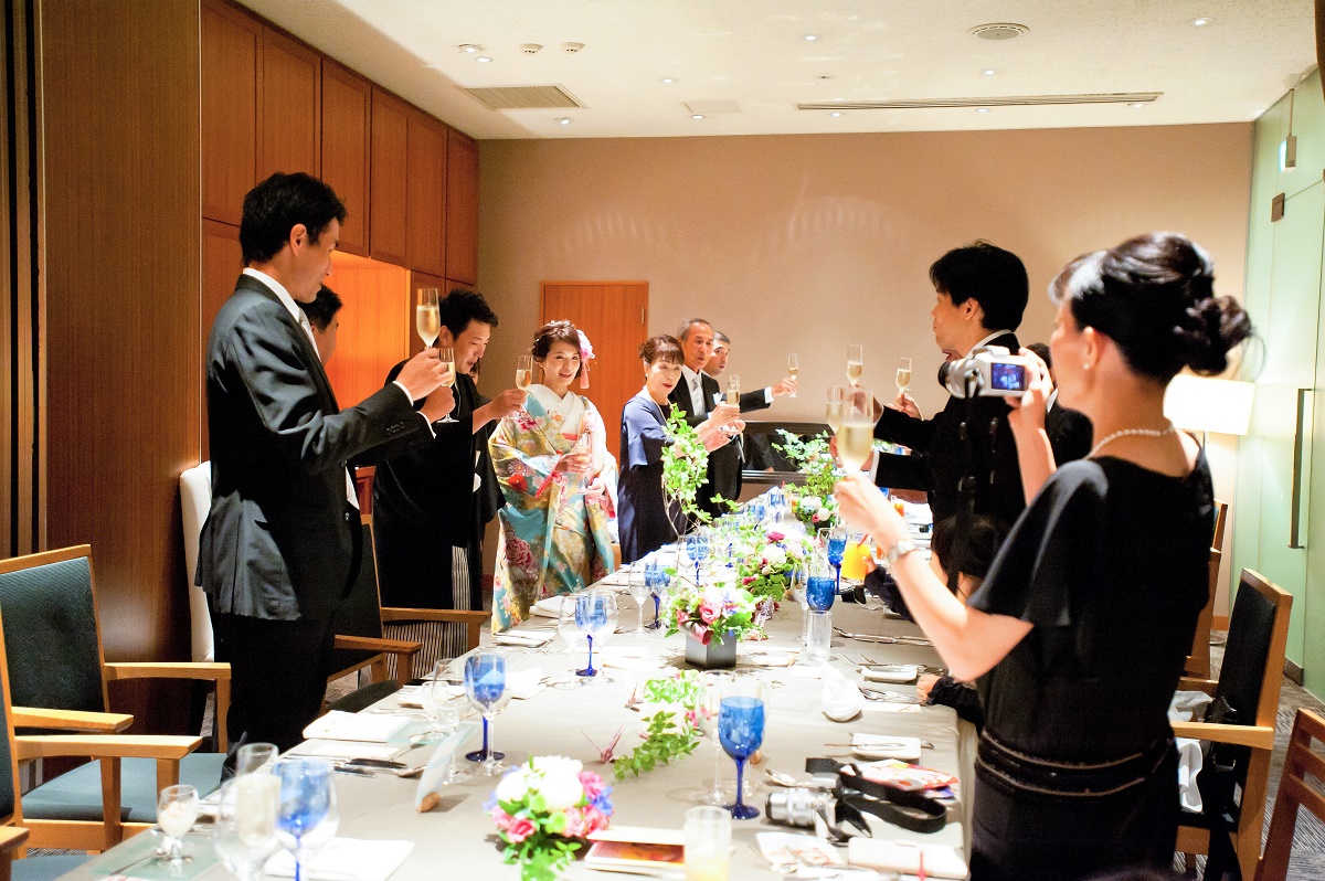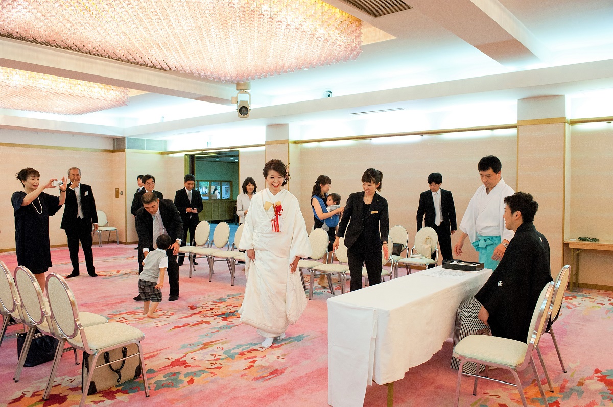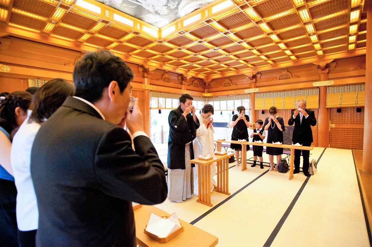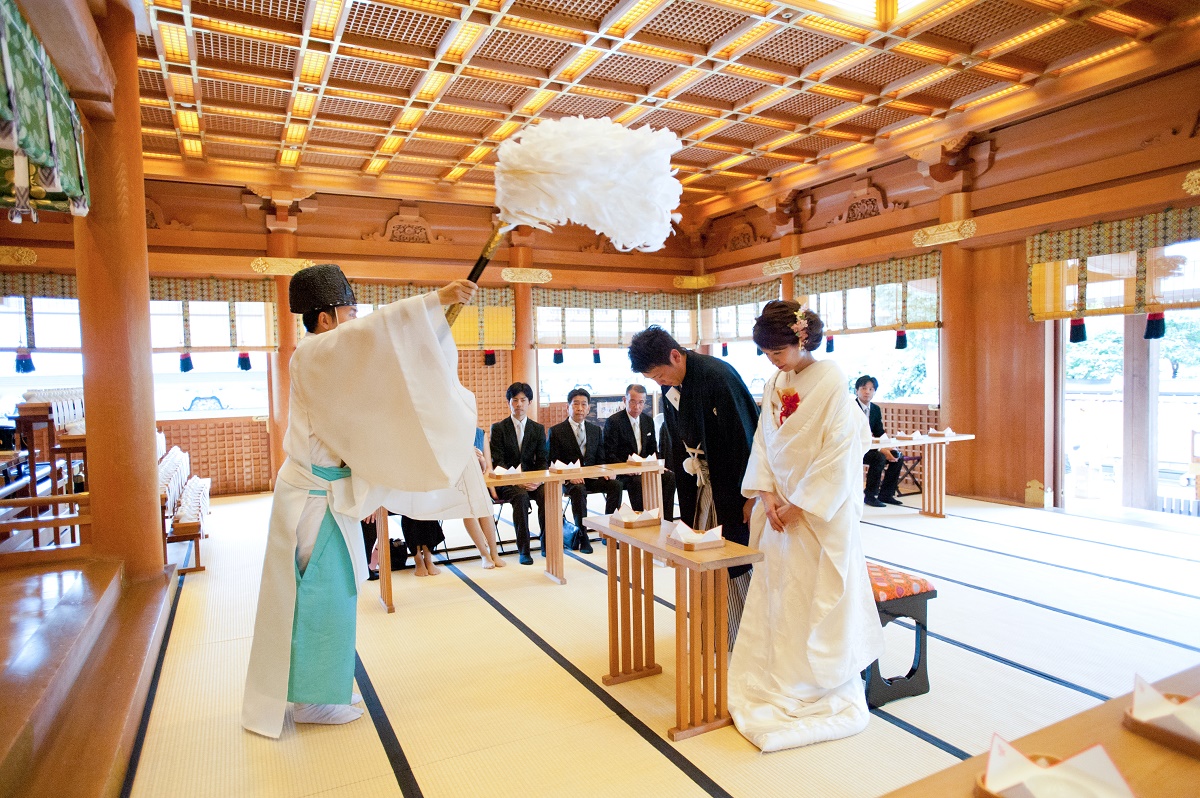 すでに入籍しており、もともと大々的な結婚式、披露宴は行わず、身内だけで食事会をしたいと思っていました。いろいろ調べていくうちに少人数でも結婚式をして、せっかくなら両親と花嫁衣装を着て、写真を残したいと思うようになりました。以前から、和装がとても好きだったこともあり、神社挙式なら和装が映え、なおかつ両親の世代には伝統ある結婚式が喜んでもらえるかと思い、さまざまな神社と提携し、少人数でも食事会ができるラリアンスのブライダルフェアに参加しました。