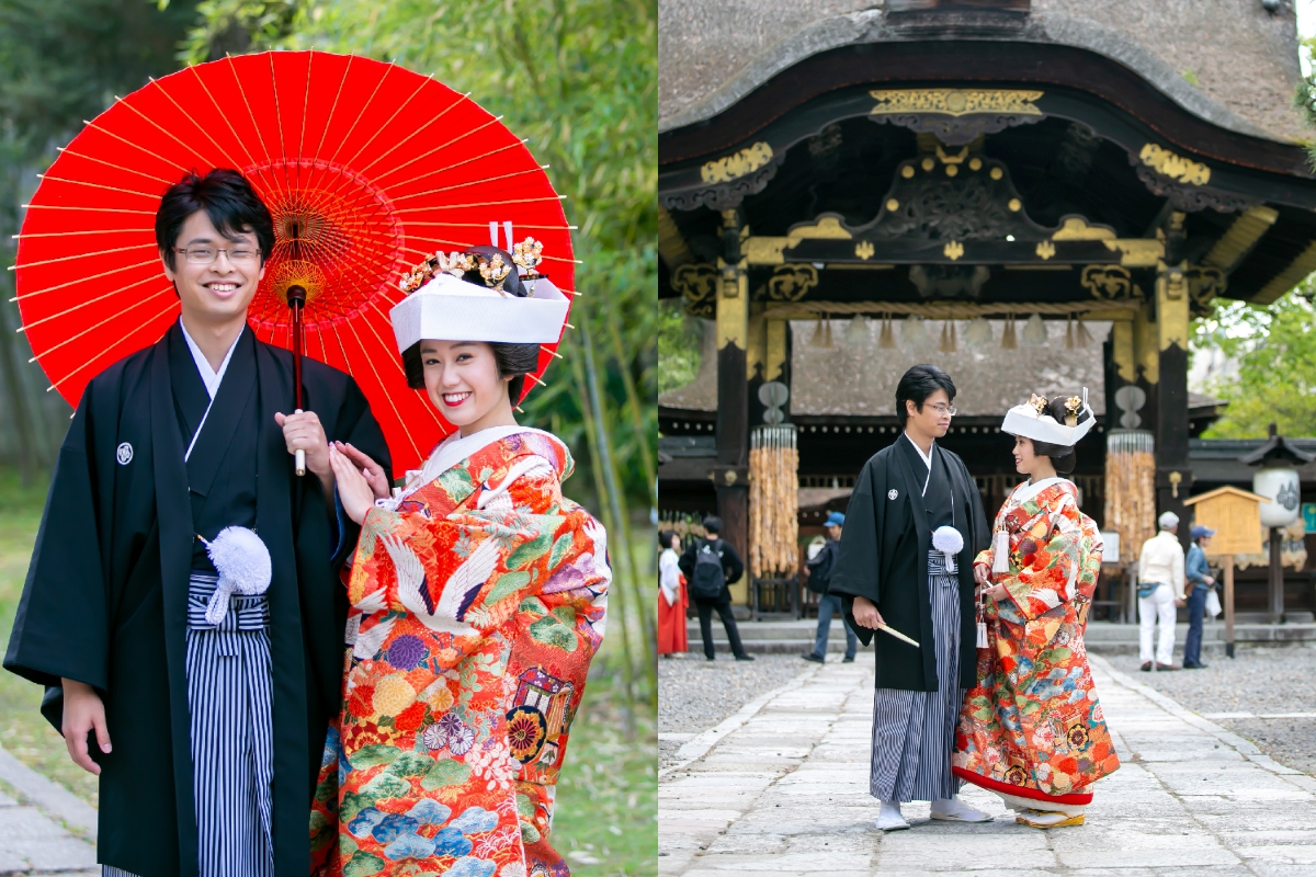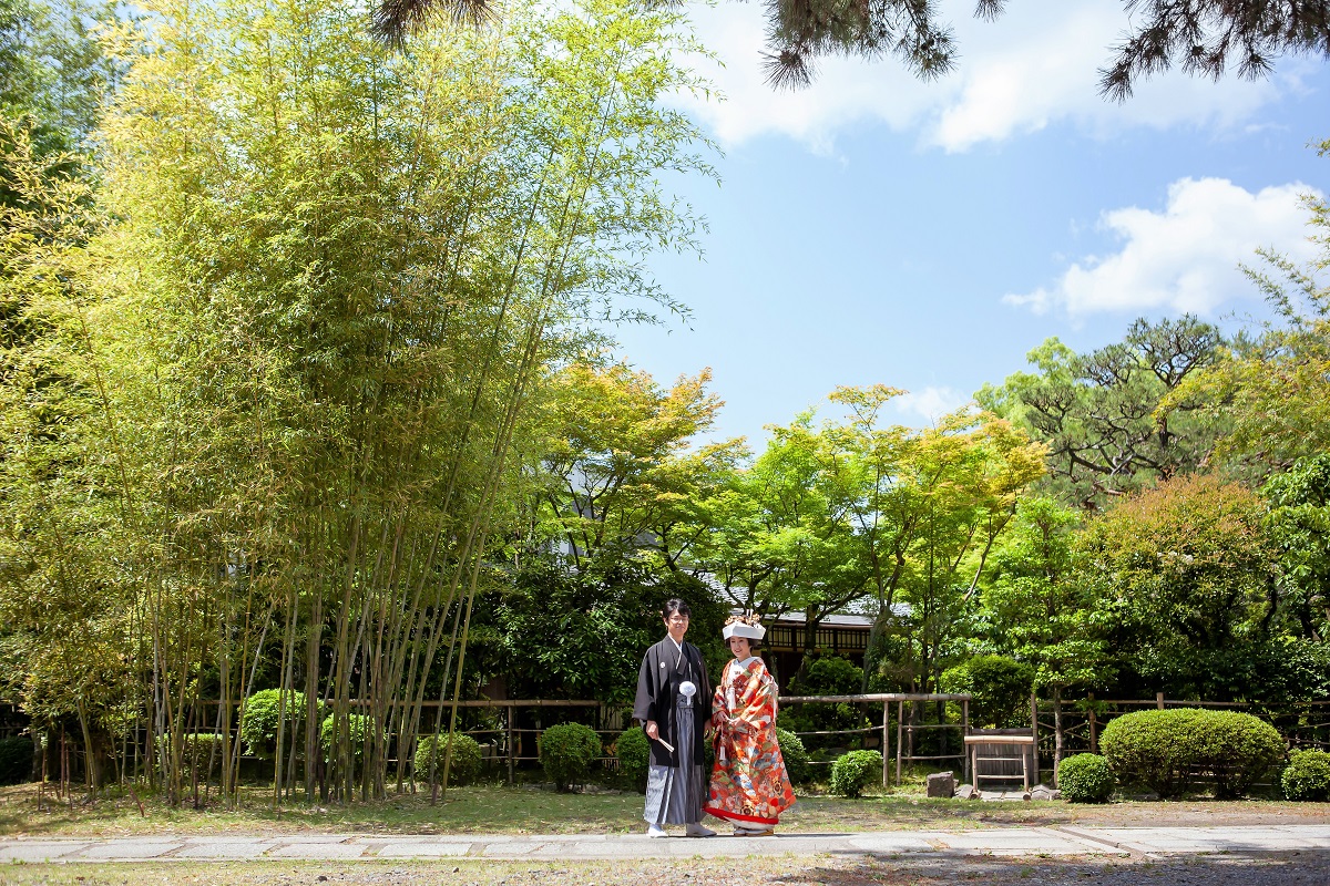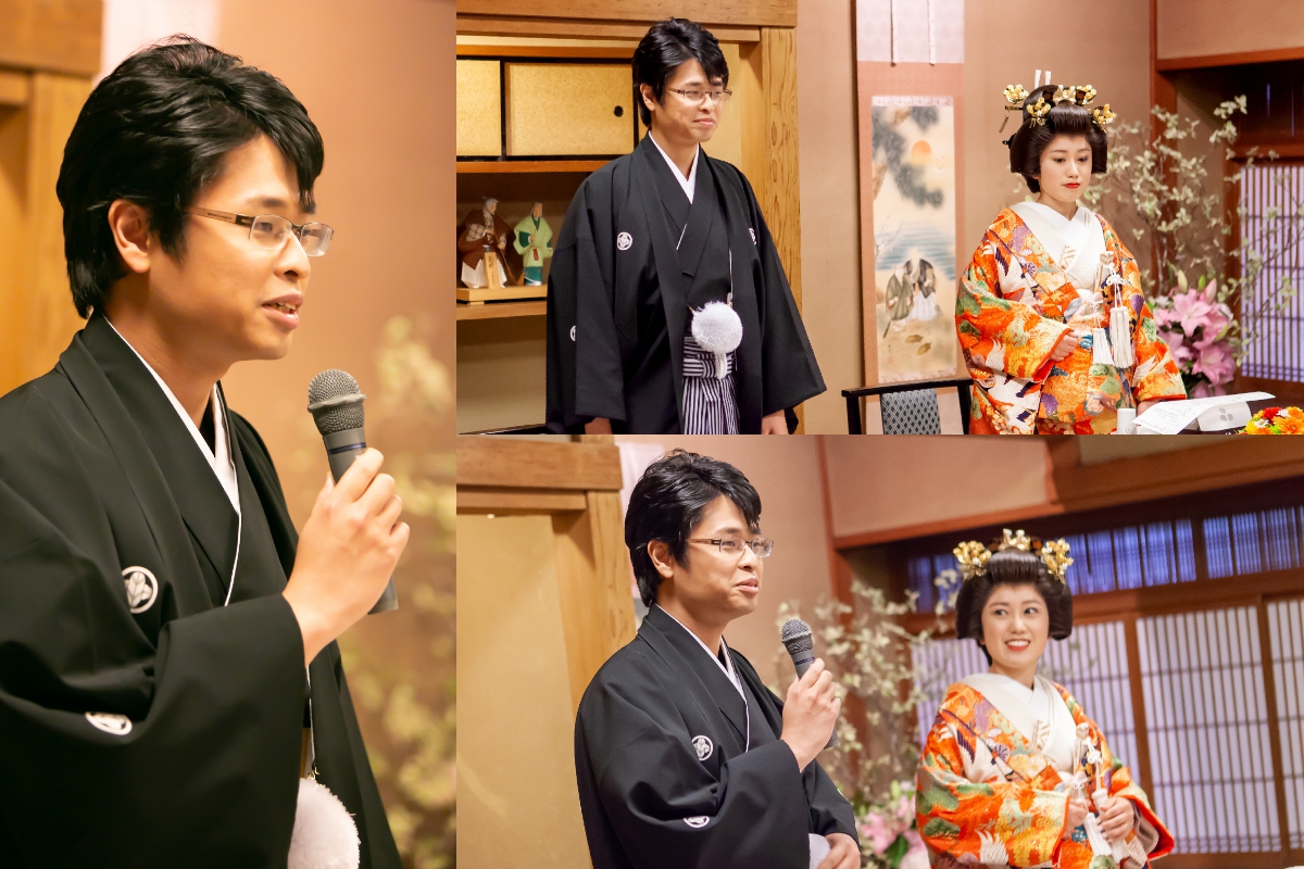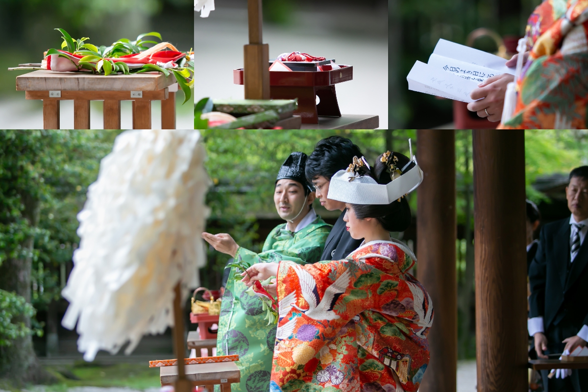神前式を行った豊国神社は、豊臣秀吉を祀っており、「出世」の神様という事で2人と親族の立身出世を祈念して選びました。また、親族に高齢の者がいたので立地も重視しており、京都駅から近く、交通の便が良いところも決めてになりました。