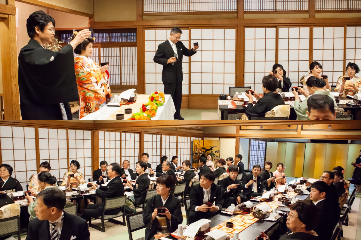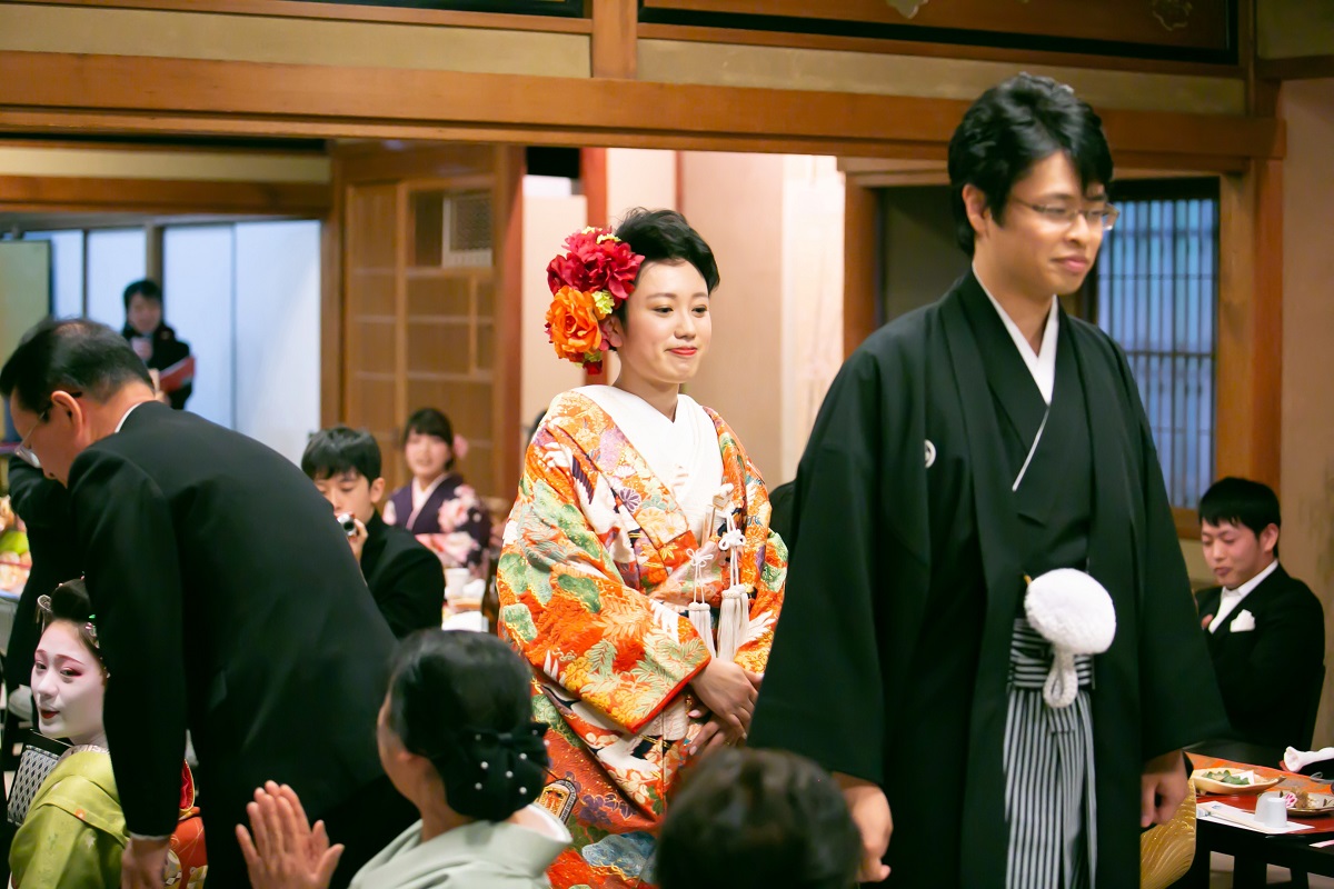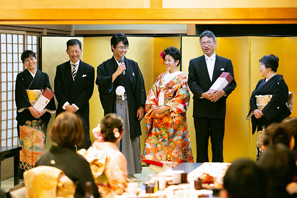 さらに、折角の和婚だったので、親族にも着物を着てもらうよう勧めたところ、列席者の女性が全員和装になりました。新婦の中座の際、新婦の姉妹3人で並んだのですが、3人とも着物で華やかな印象になったと思います。