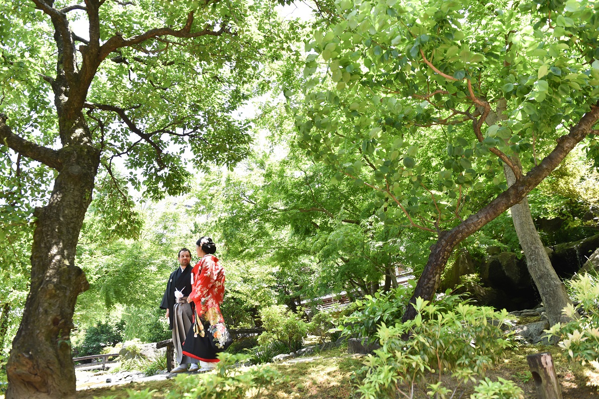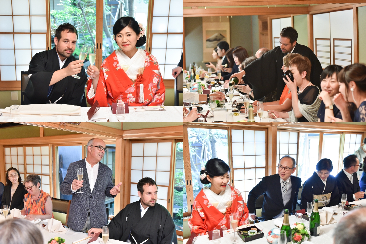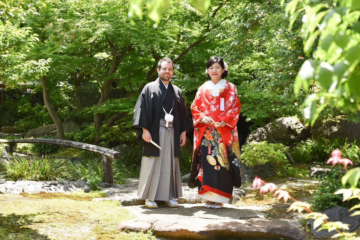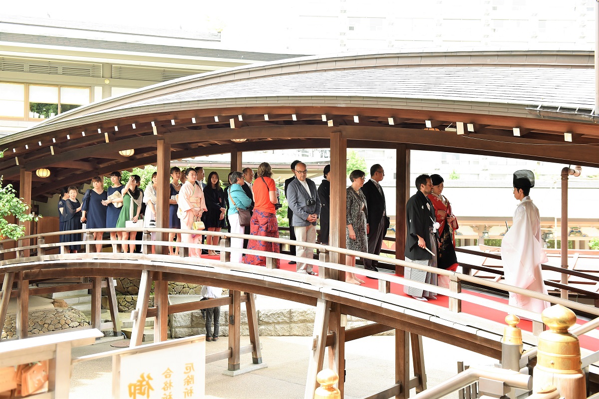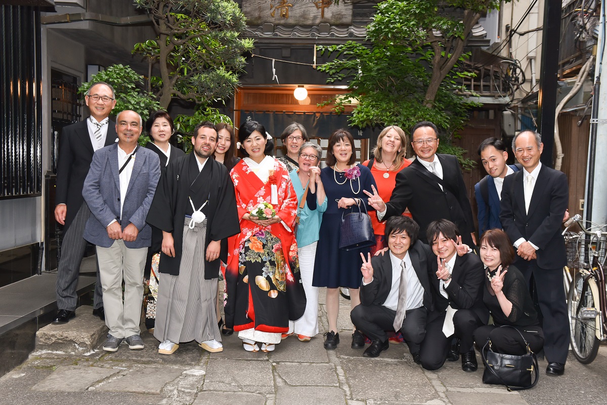 結婚式をしようと決めてから、フランス人の主人と彼の家族に、日本での結婚式はどんなものがしてみたいかを聞いてみたところ、日本の伝統的な形式で挙げたいとのことでした。私自身も和婚ウェディングに参加した事がなく、結婚前に少しだけ京都で暮らしていたので、着物や神前式のお式に憧れが強くなっており、和婚ウェディングにする事にすんなり決まりました。湯島天満宮には、