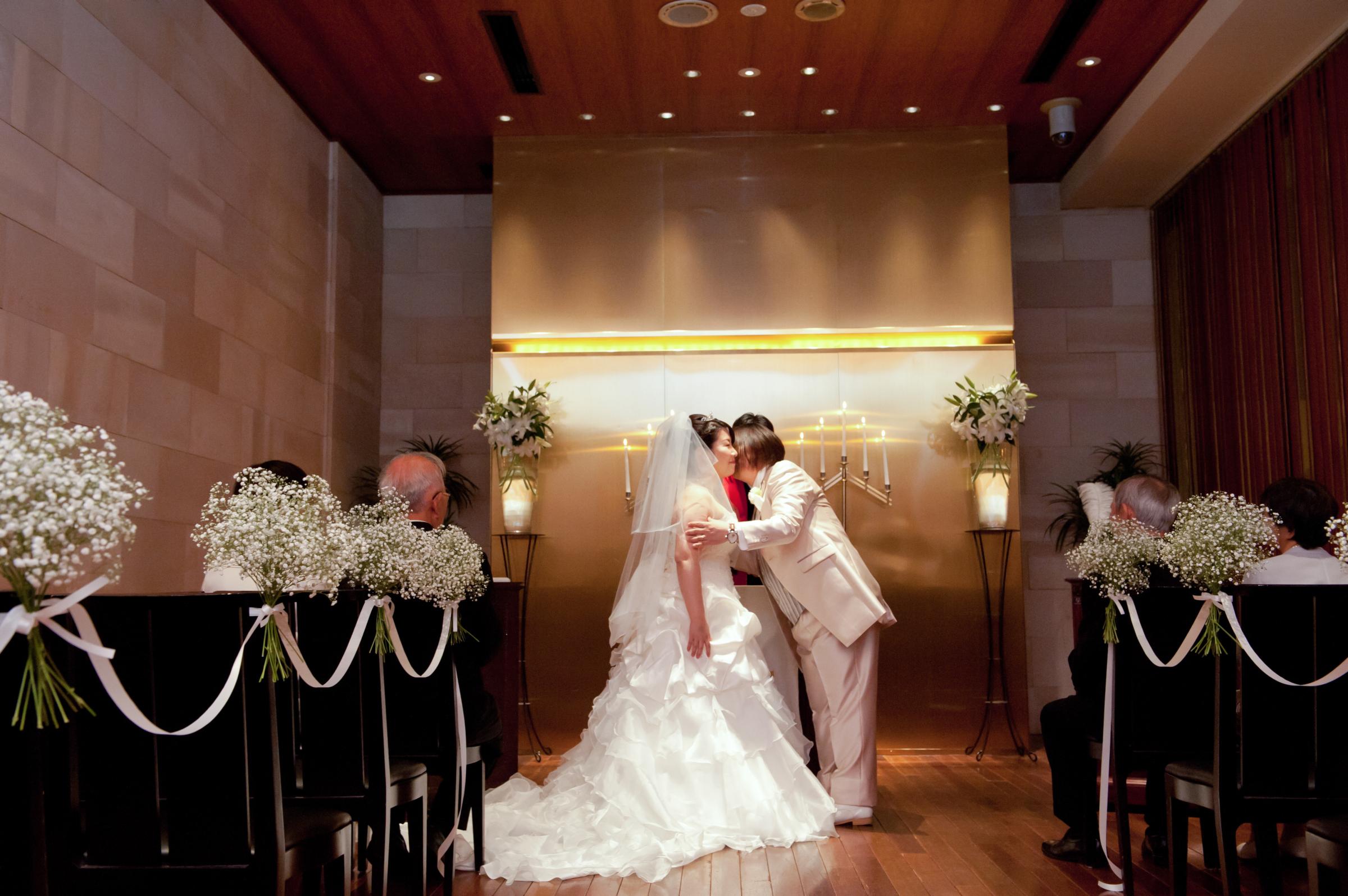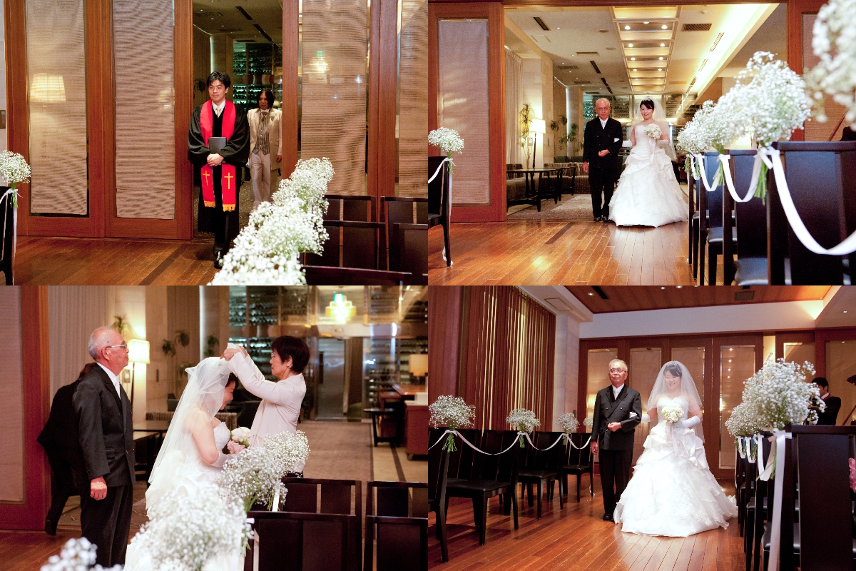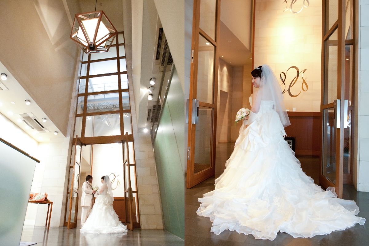 条件としては、1)その時点で両親の顔合わせもまだだったので、おちついて会食ができるところ。両親が遠方からわざわざ出向いてくるので、せっかくなら料理がおいしいところが第一条件でした。2)教会式でやりたかったので、チャペルがあり、本物の牧師先生により挙式ができること、3)両親の移動が大変なので、東京駅からできるだけ近い式場。