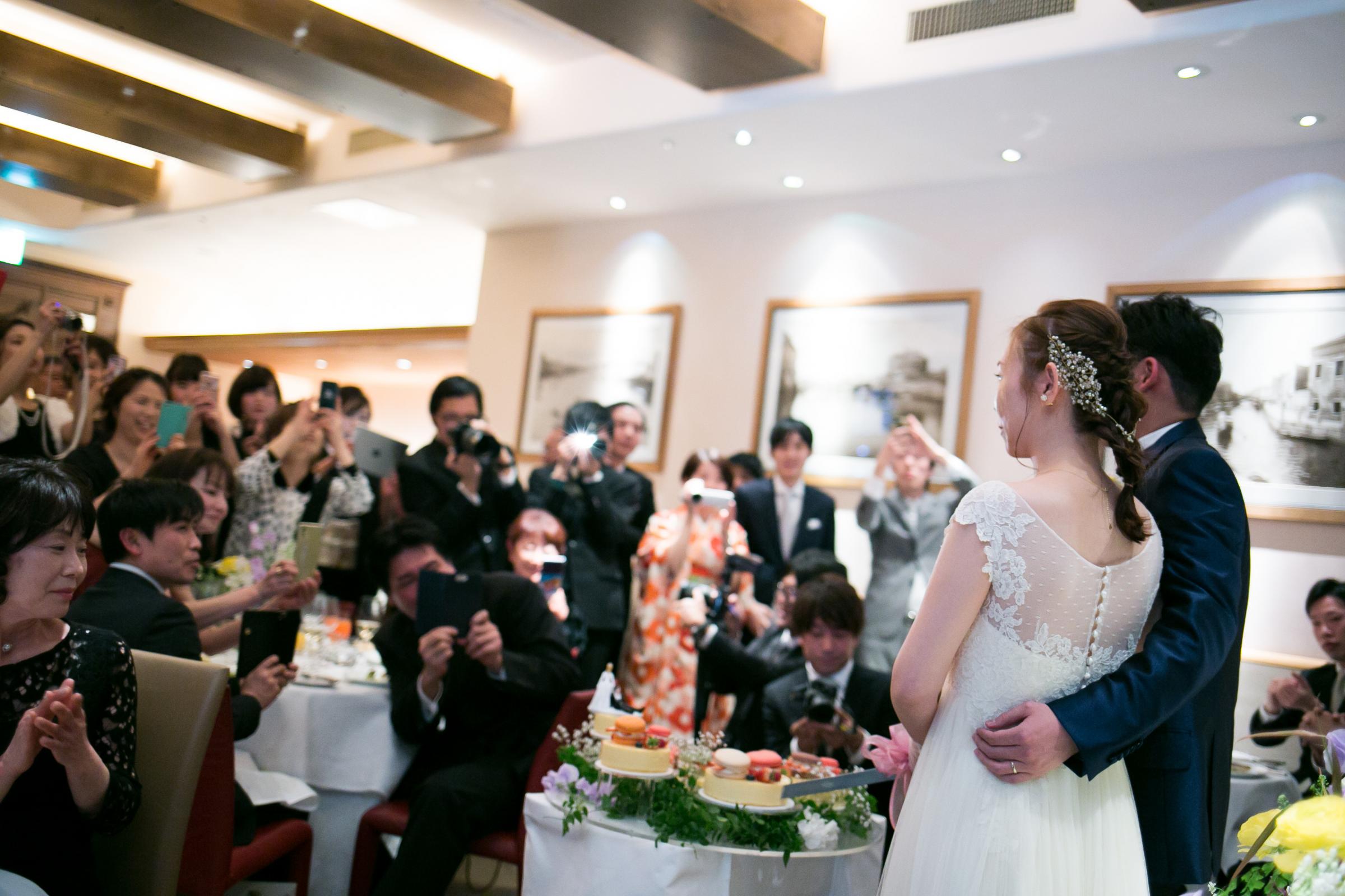 ウエディングケーキは、マカロンのカラフルなケーキで、ファーストバイトもマカロンの食べさせ合いをしましたが、これも珍しくゲストから好評でした。あとから写真で見返しても、可愛くてとても思い出に残っています。