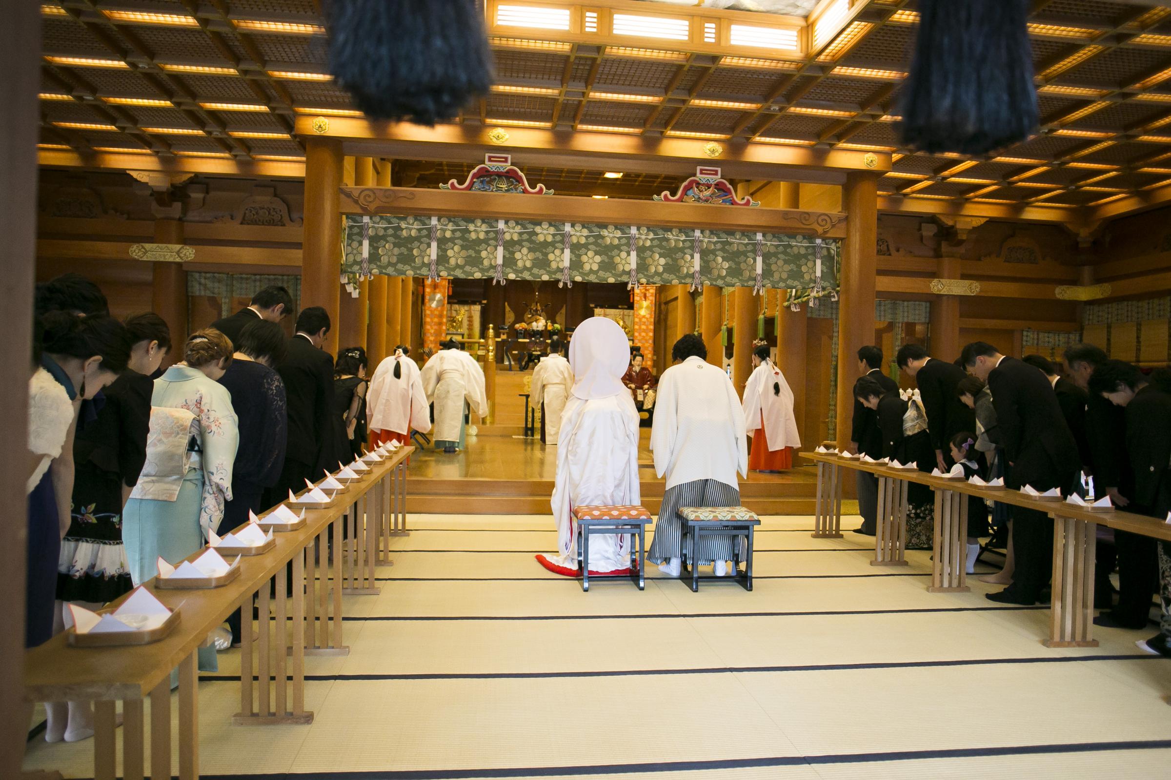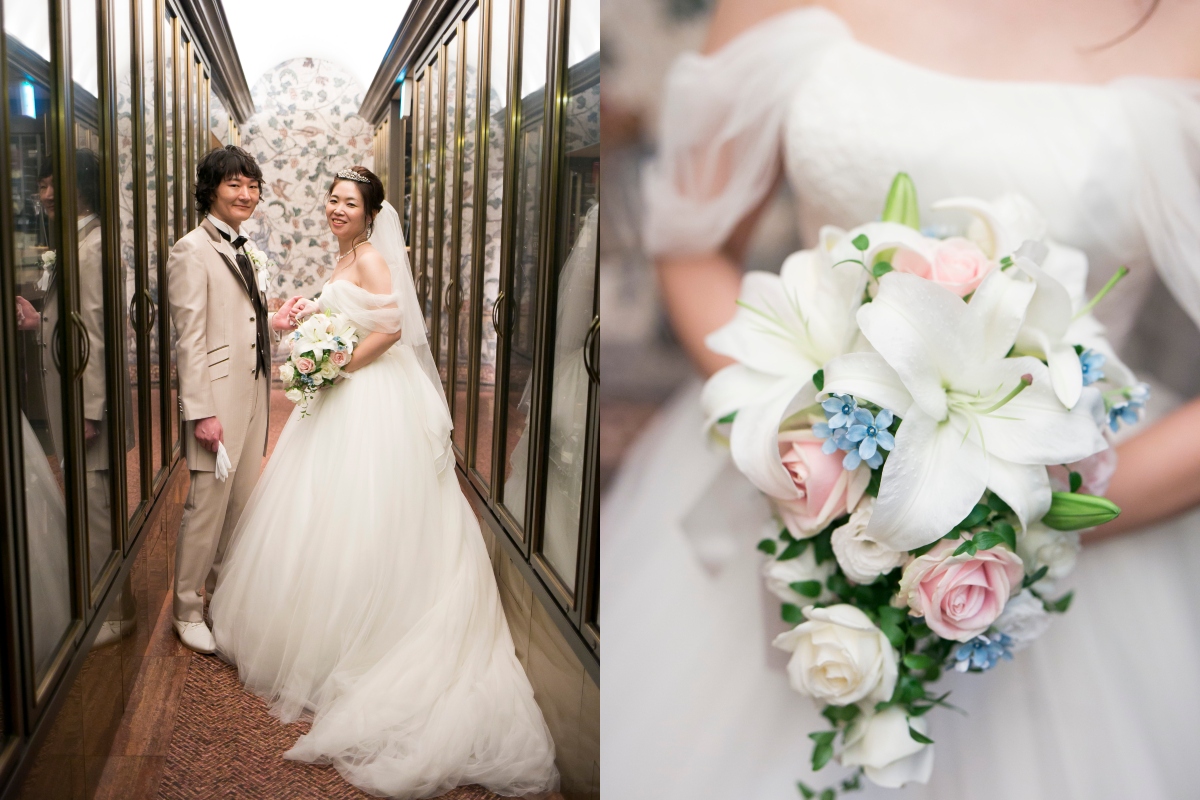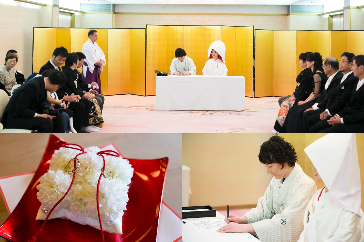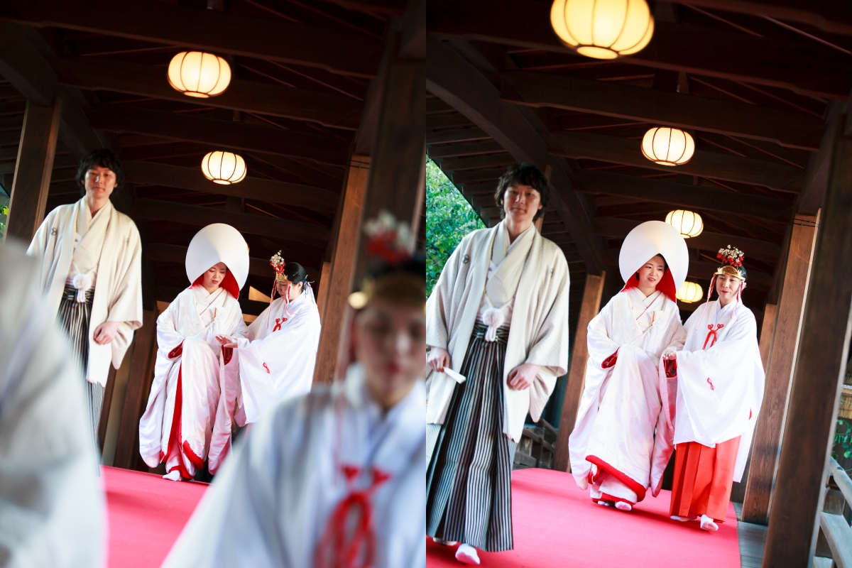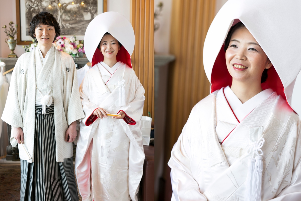 結婚式は白無垢を着たいとずっと思っていたので、神社で挙げたいと思っていました。そして、披露宴会場はなんと言ってもお料理の美味しいところで!と決めていました。いくつかのブライダルフェアを回って、昔から学業でお世話になっていた湯島天神での挙式を決めました。お太鼓橋の雰囲気がとてもよく、