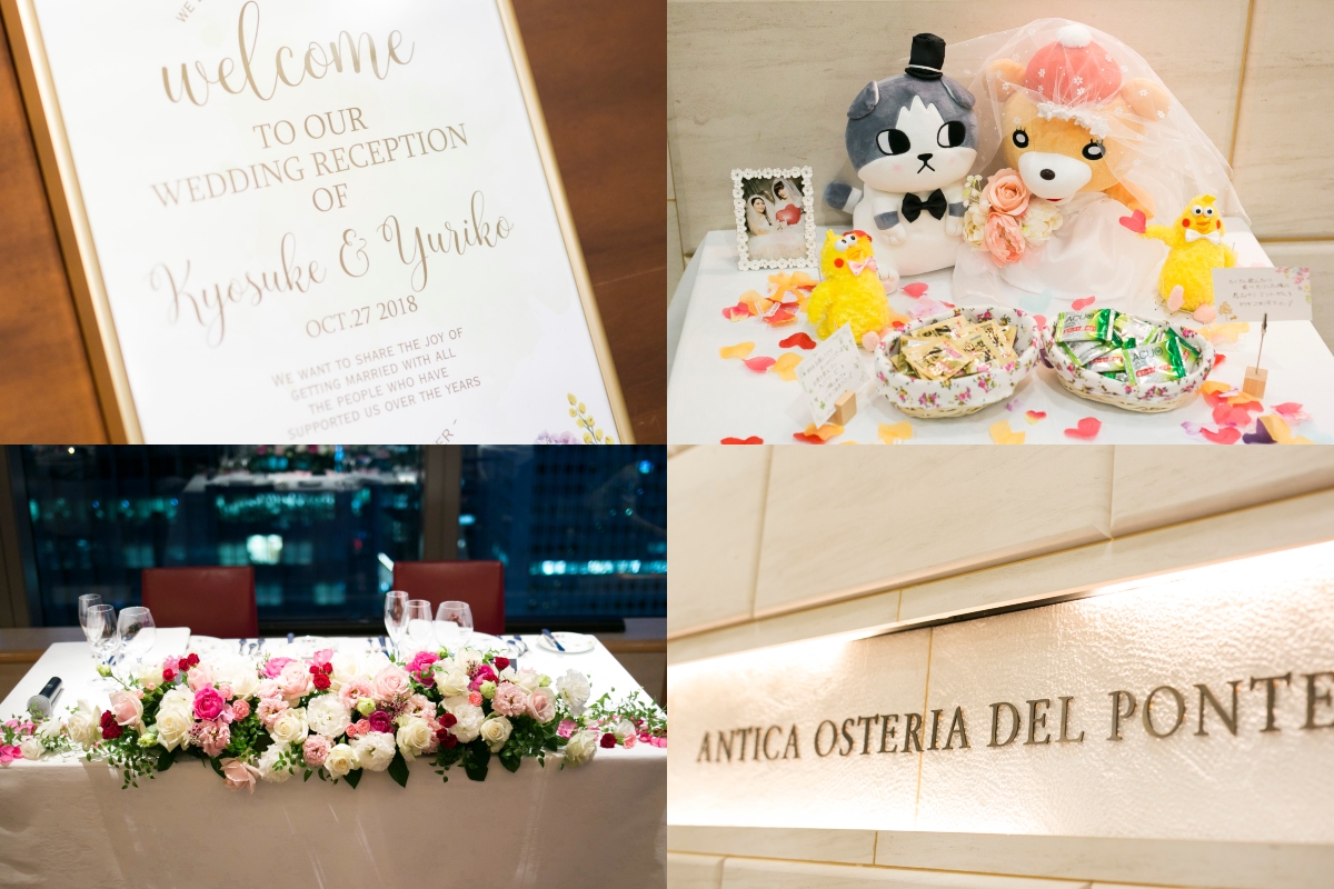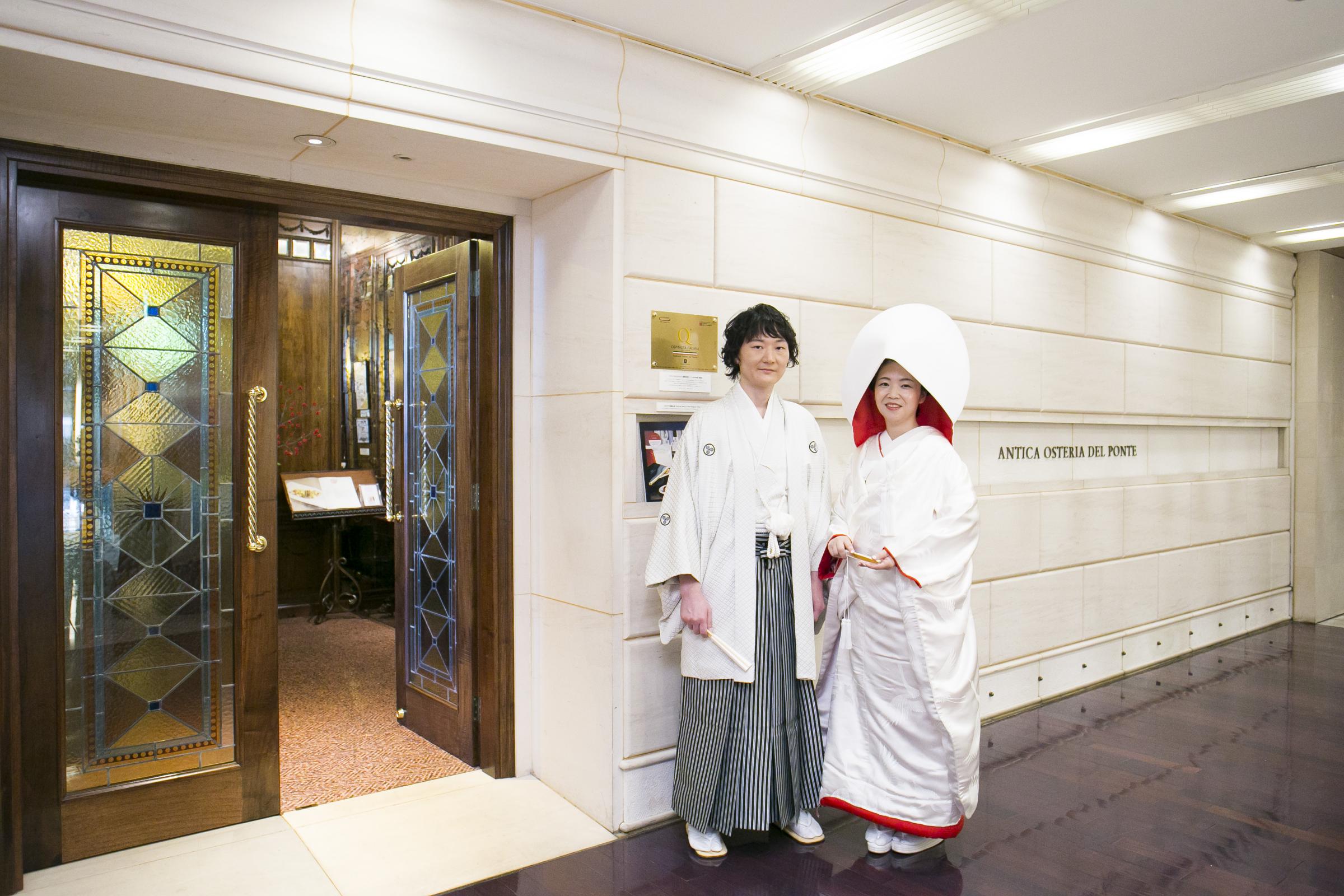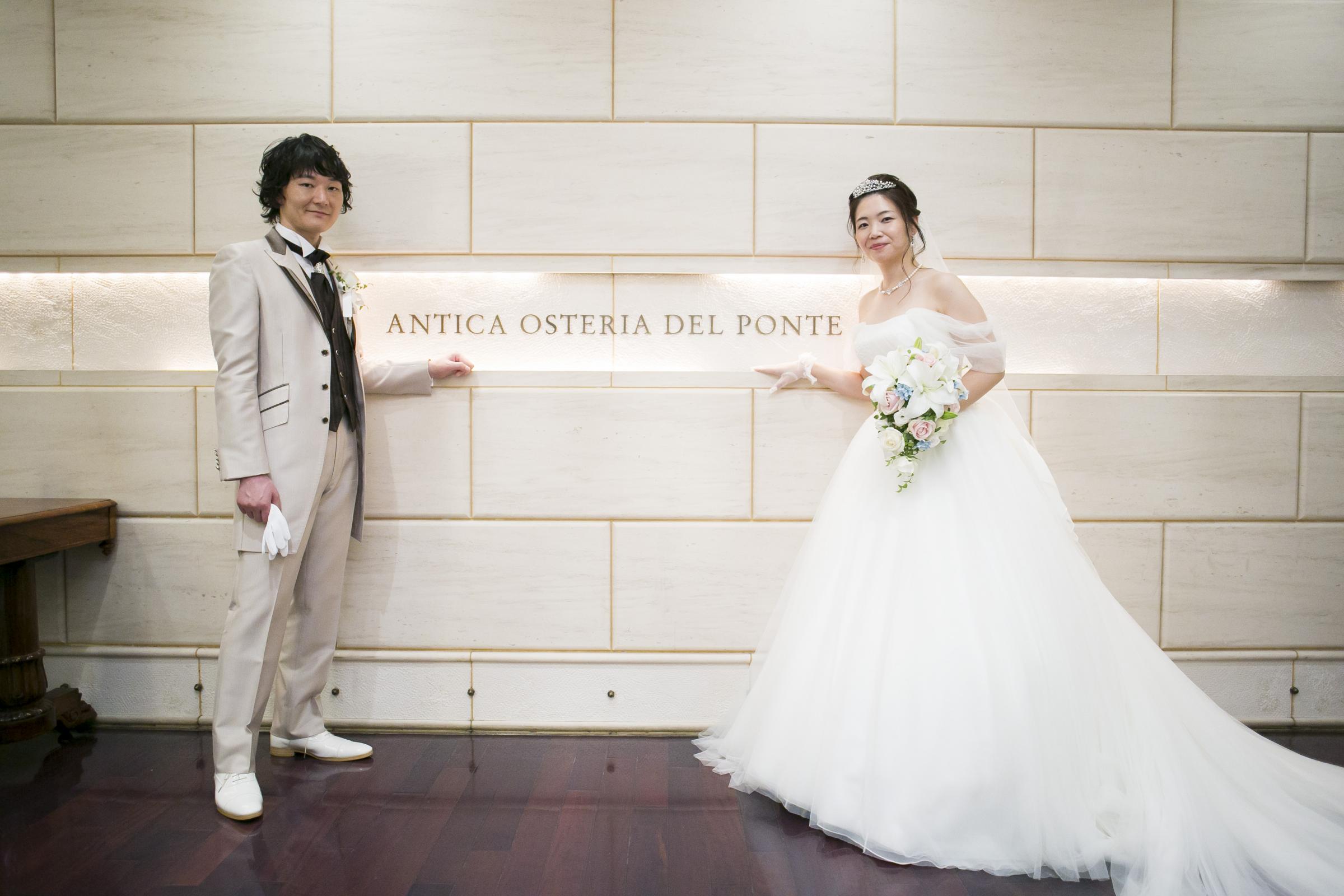 この上を白無垢で歩きたいと強く思ったのを覚えています。披露宴会場は、遠方からのゲストのアクセスが良く、お料理、眺望、雰囲気、サービス等々、すべてが満点だった、アンティカ・オステリア・デル・ポンテさんに決定しました。お店の食器が、大好きなビレロイ&ボッホだったことも大きな決め手でした。