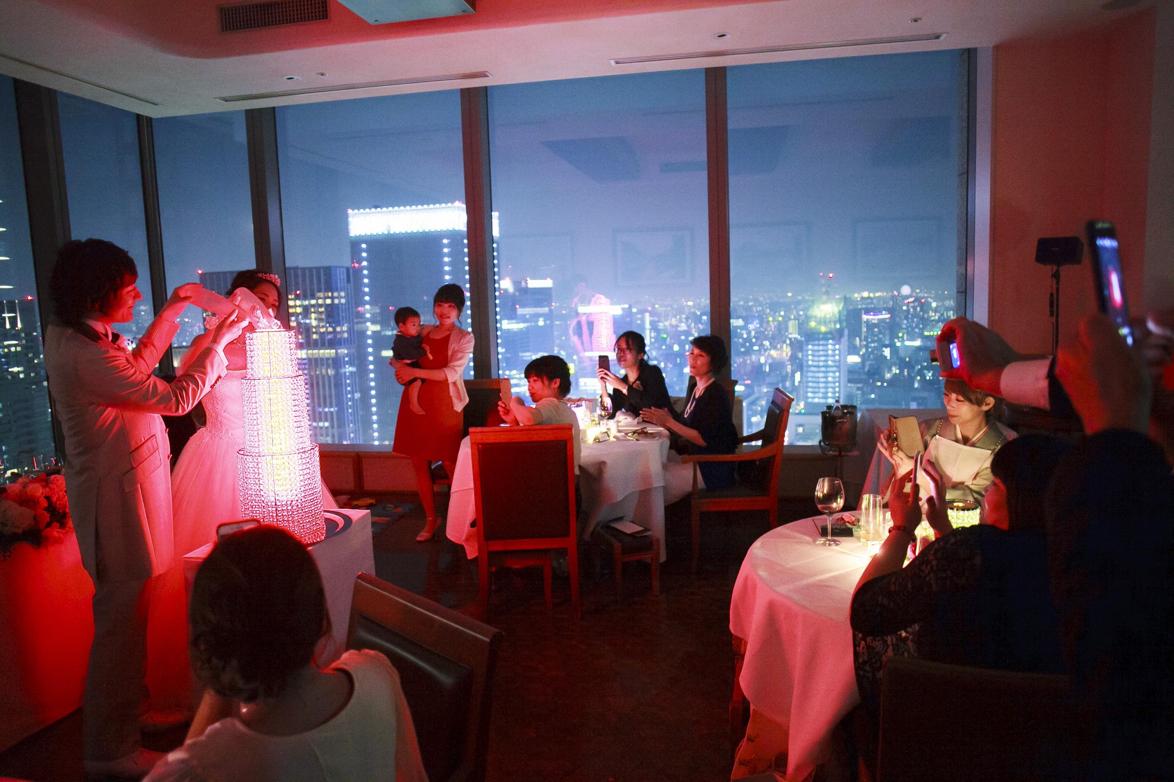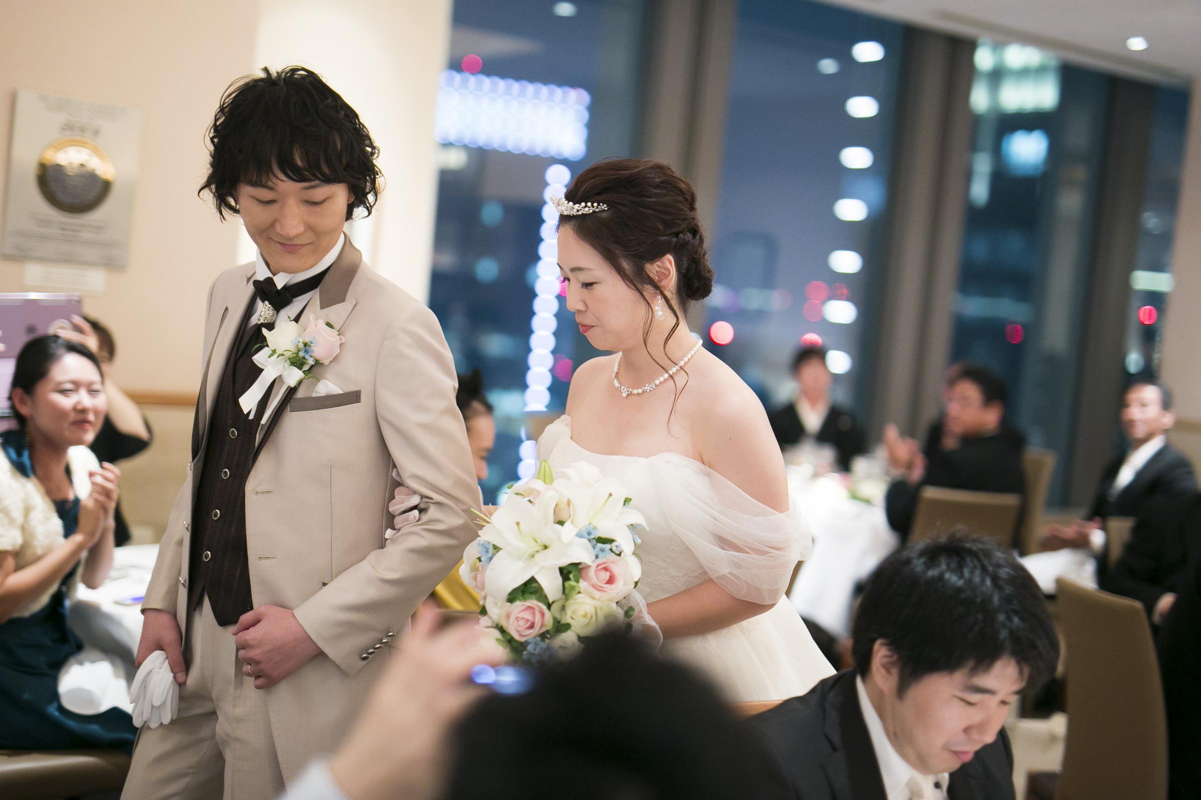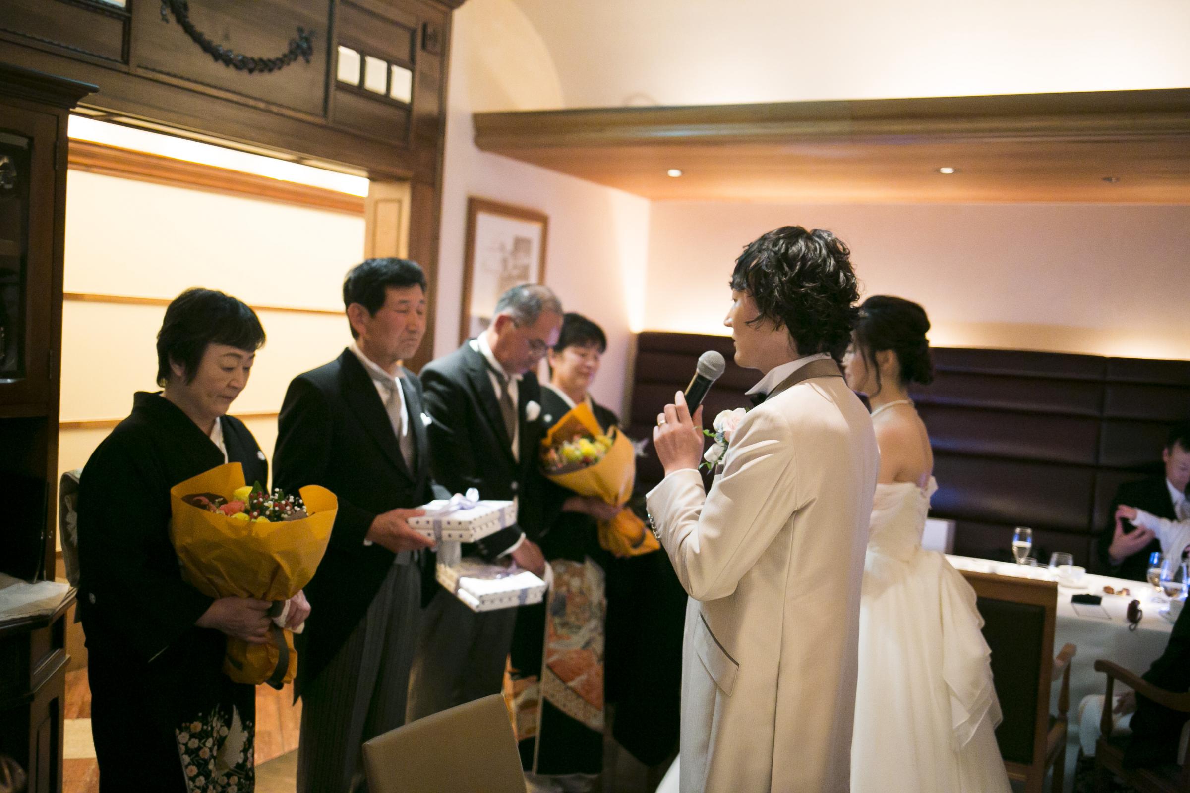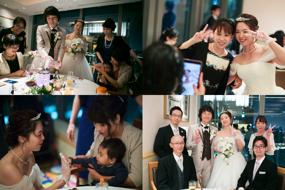 自分が美味しいと思ったものをゲストに贈りたかったので、引菓子と縁起物にはこだわりました。三越伊勢丹で取り扱っている商品は引き出物にできるということだったので、好きなお店のバームクーヘンと鯛茶漬けを選ぶことができました。また、2次会は行わない予定だったので、ゲストへプレゼントを渡せるような余興がしたいと考えていました。プランナーの近藤さんから、クイズのご提案頂き、新郎新婦にまつわるクイズをだそうと即決しました。中座前にクイズを行ったことで、話題提供ができ各テーブルで盛り上がったようでした。プレゼントはお気に入りのお店の焼き菓子と学生時代にアルバイトをしていた老舗和菓子店の小型羊羹をギフトラッピングして、テーブルラウンドのときに一人一人にありがとうの気持ちを伝えながら渡しました。プレゼントの持ち込み料がかからなかったので、とても助かりました。