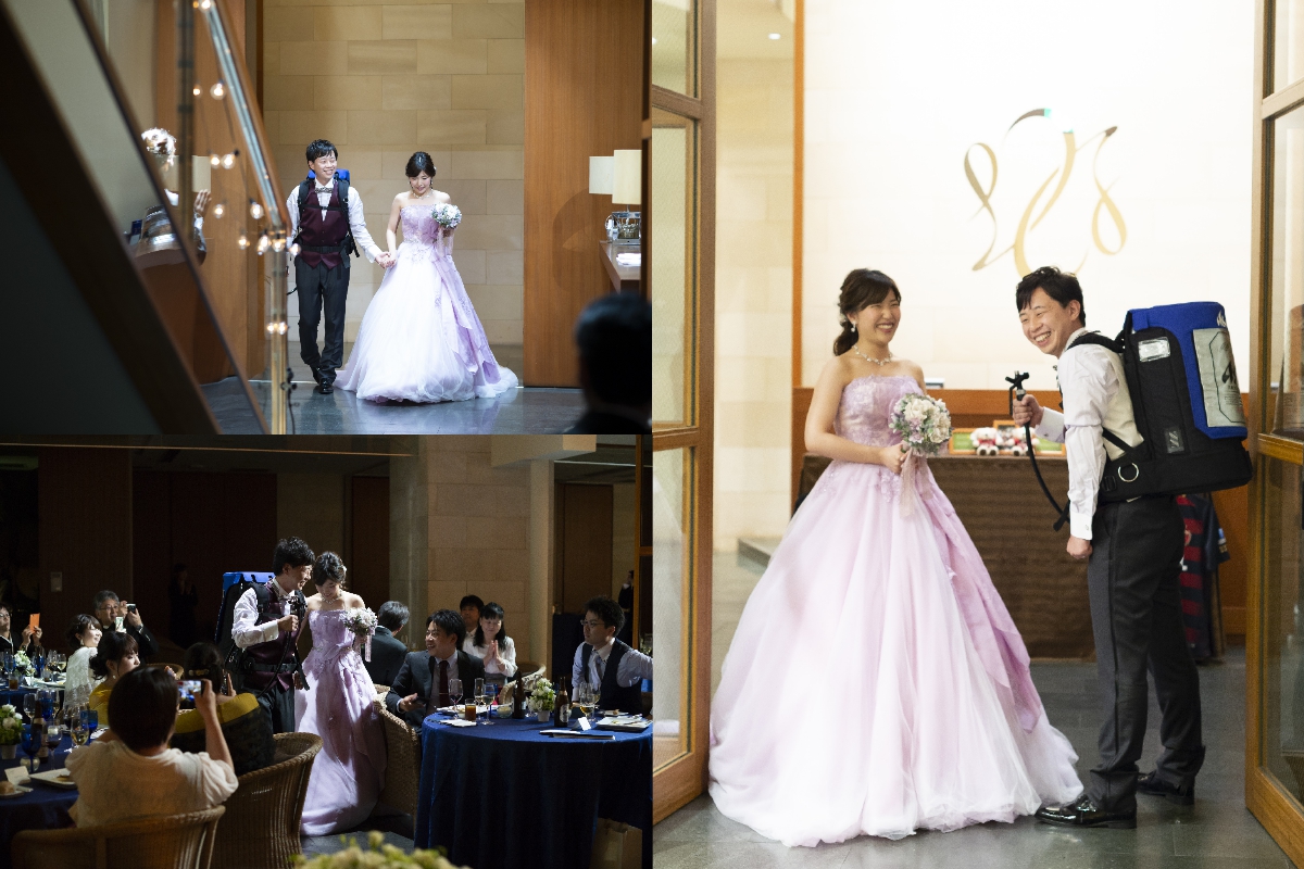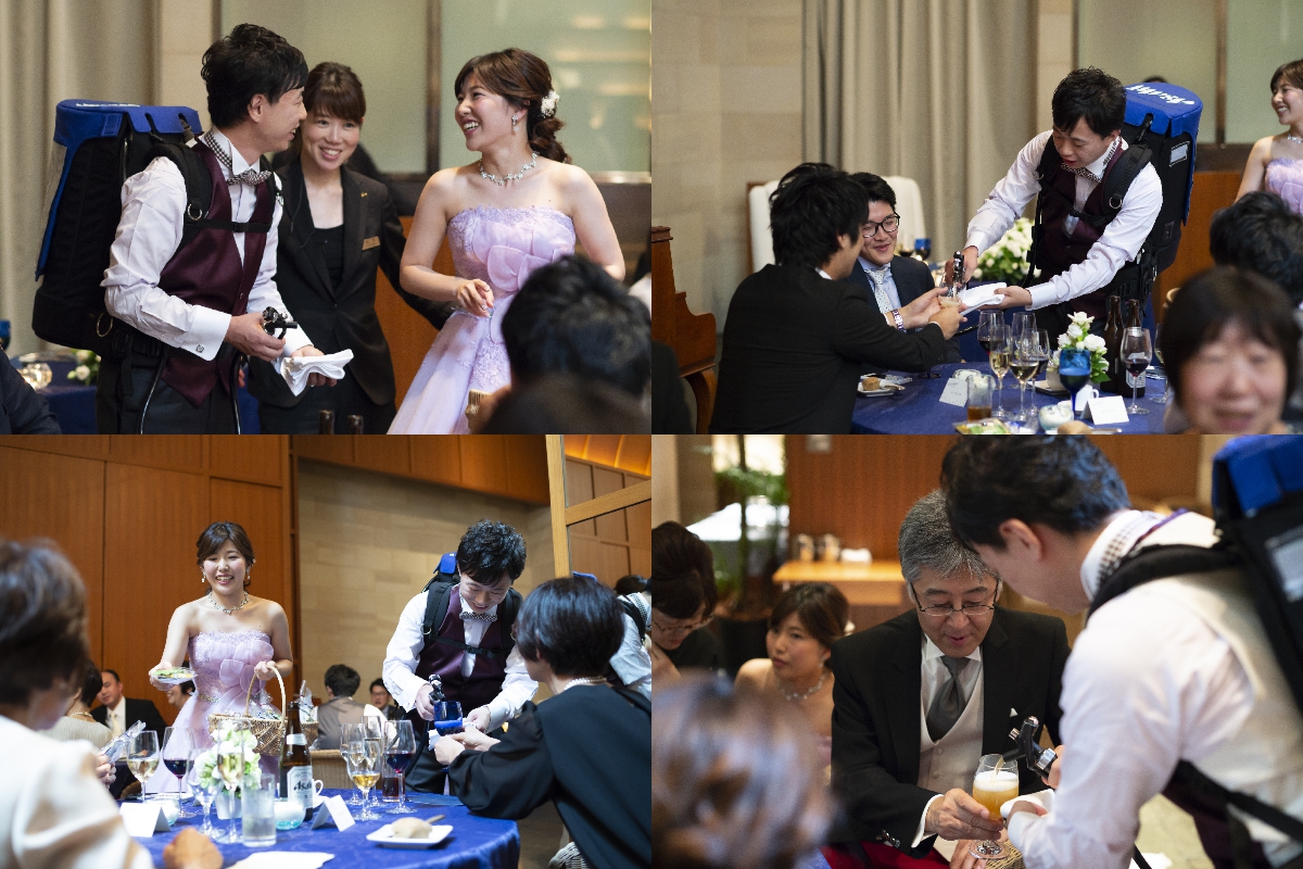ゲストとの距離感が近く、来ていただいた方一人ひとりとお話できるようにといったことを一番に考えました。過剰な演出を行わず歓談の時間を長くとりたいと担当の方にお伝えしました。また、お酒が好きなゲストが多かったので、ビアサーバーを背負ってのテーブルラウンドをご提案いただきました。当日はビアサーバーでゲストにビールを注ぎながらテーブルラウンドを行ったのでゲスト一人ひとりとゆっくり話ができ、とてもよかったです。
