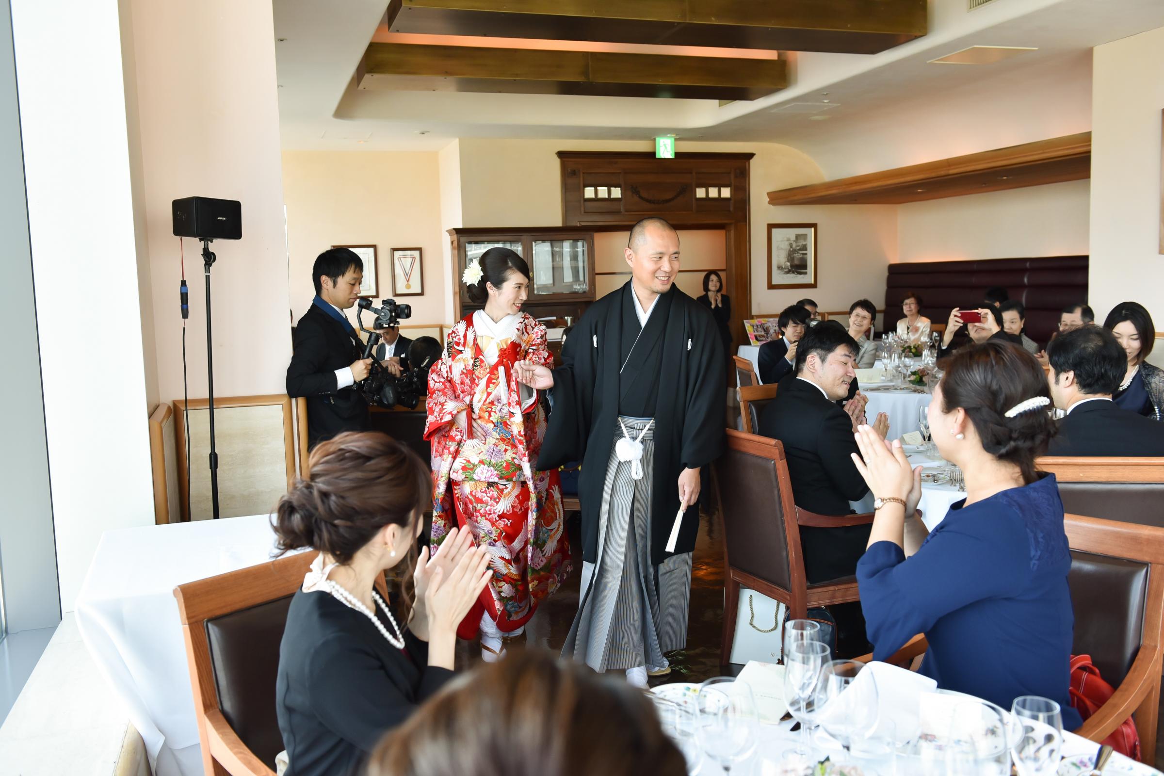 チャペルでの結婚式がなんとなく気恥ずかしく感じていたため神前式を検討していた中で、ハートツリーウェディンングを知りました。挙式を行う神社は天候に左右されにくく写真映えがするという湯島天満宮を紹介していただき、気に入ったのでそちらに決めましたが披露宴会場をどこにするか3軒見学させていただき、最後に伺ったこのデルポンテの36階からの眺めと景色に完全にやられてしまい(笑)お金をかけるなら