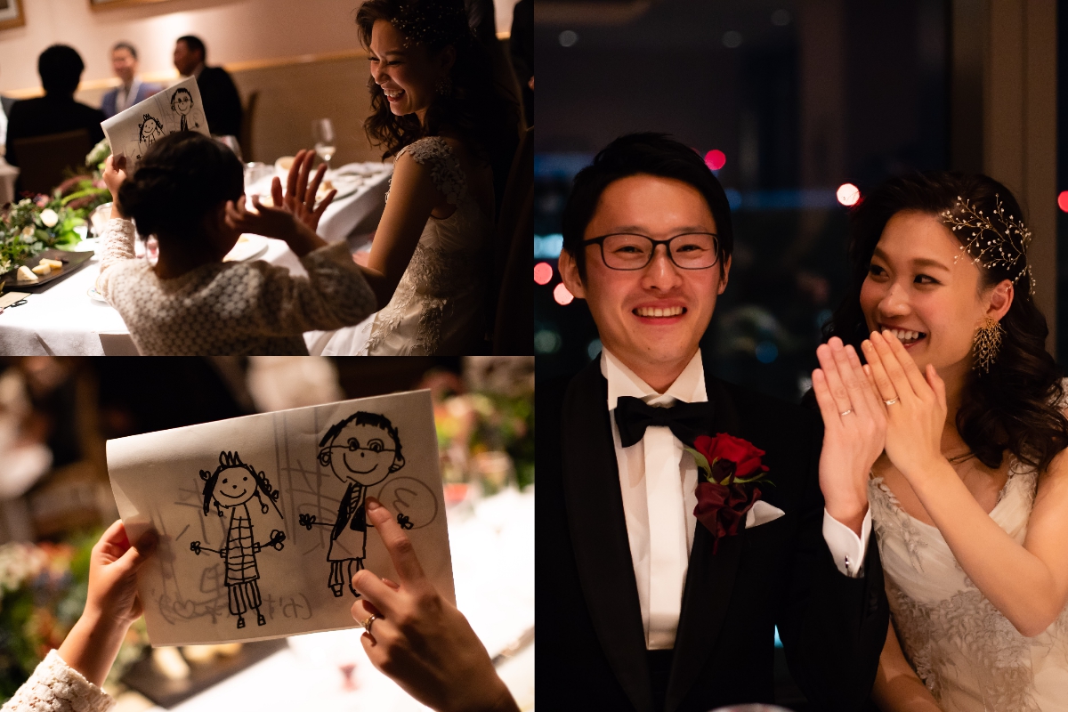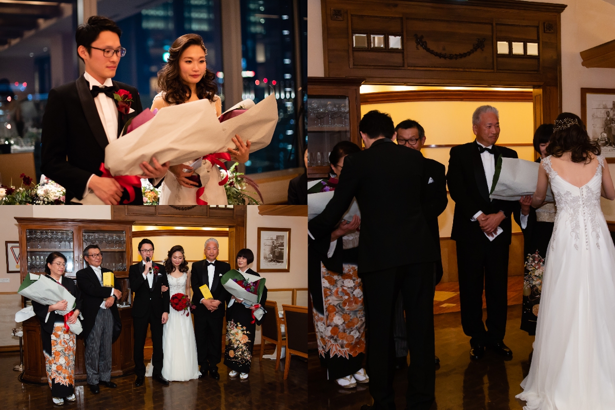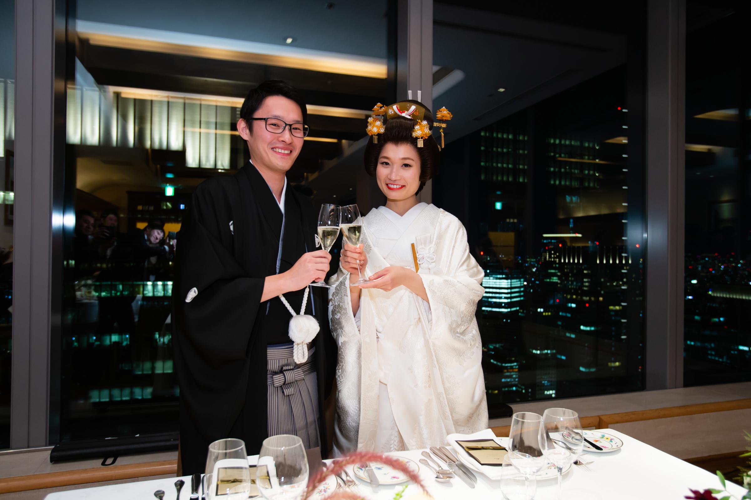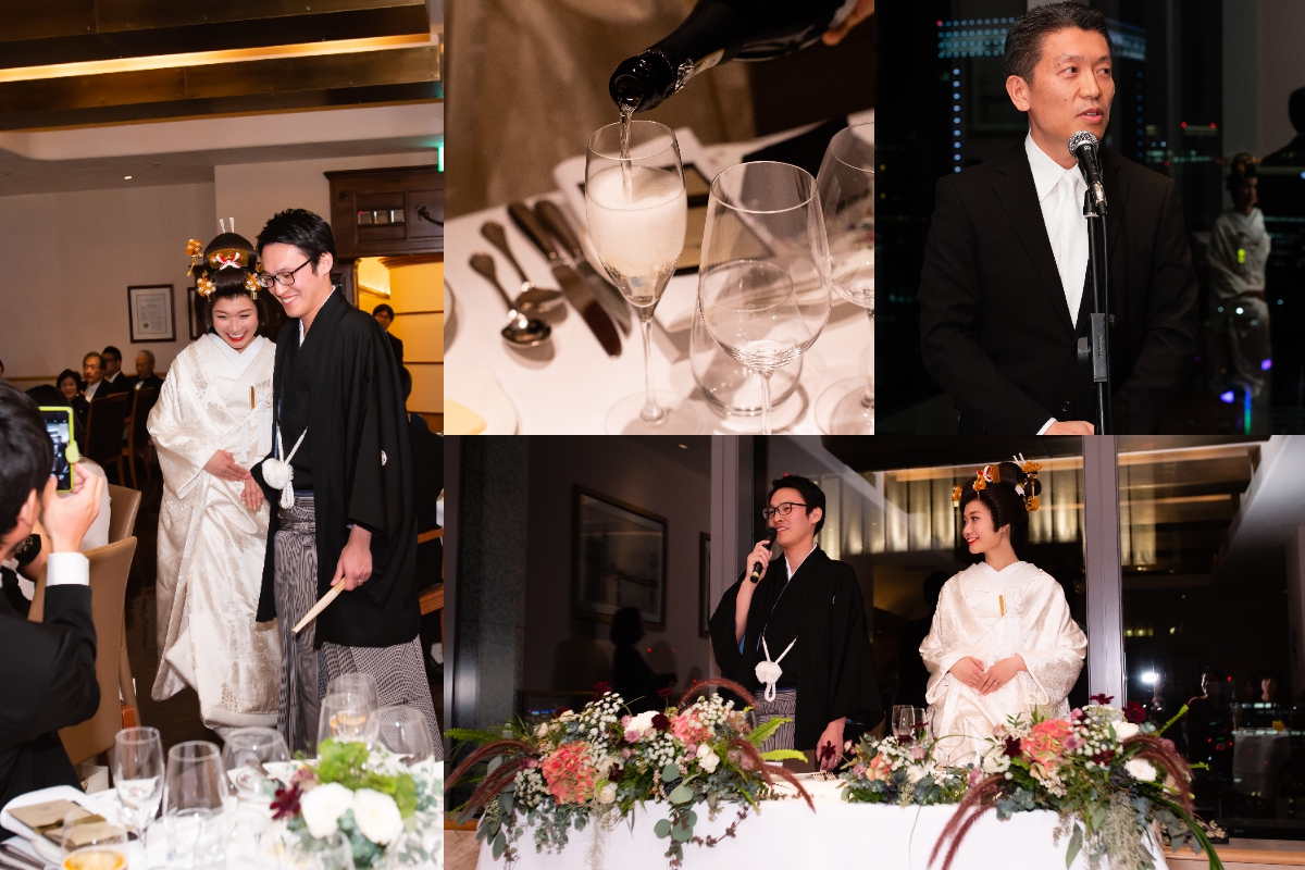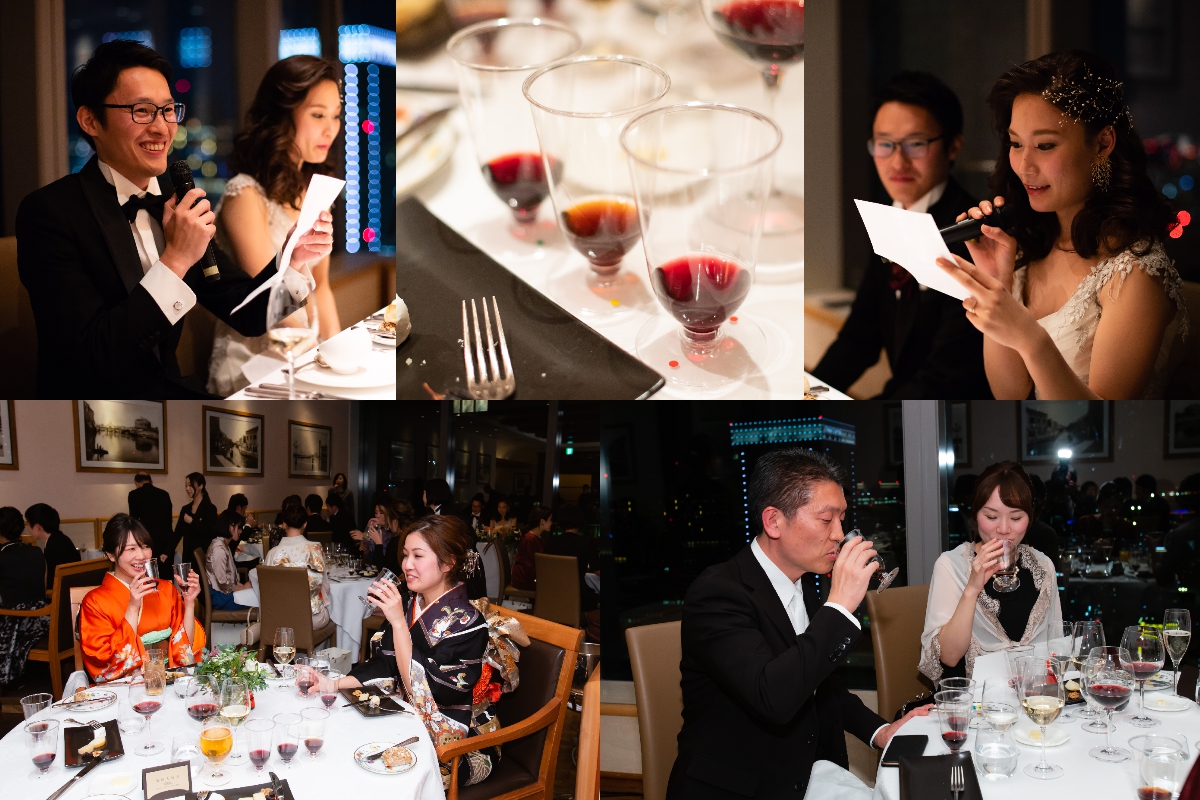 また、ご列席いただいた方々には美味しい食事とお酒を召し上がっていただき、アクセスについても負担がないようにしたいと思っていたところ、まさにぴったりな会場と出会うことができました。また、当初予定はしておりませんでしたが、東京駅を見下ろす夜景も素晴らしかったことも決め手となったポイントの一つです。