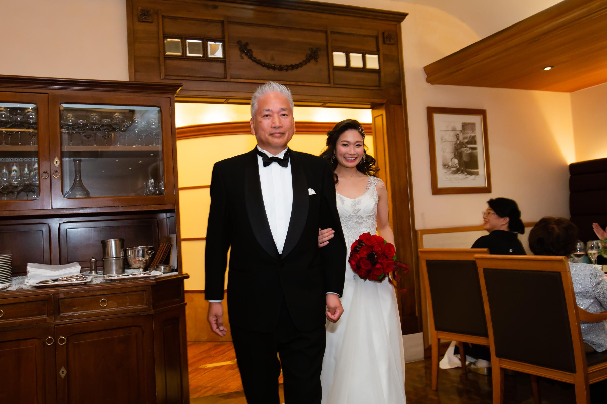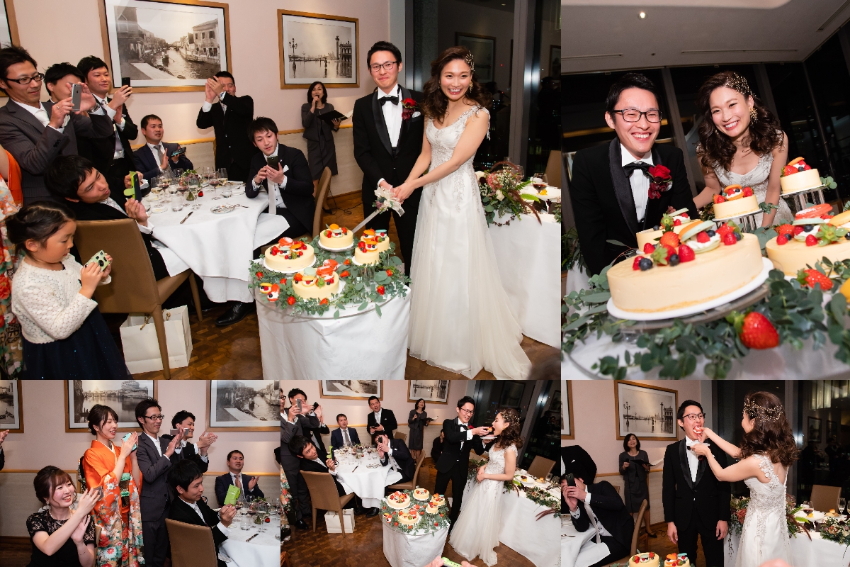 親族中心の式だったため、あまり凝った演出はせず、皆さんに食事とお酒と会話を楽しんでもらうことを心掛けました。ただ、プランナー様のご提案もありワインの有名なお店でもあることから、余興としてワインテイスティングゲームを行ったところ、大変盛り上がり好評をいただきました。ソムリエの方にはお願いした予算内で貴重なヴィンテージワインも含めたワインの選定をしていただき、新郎新婦自身も大変貴重な体験をすることができました。