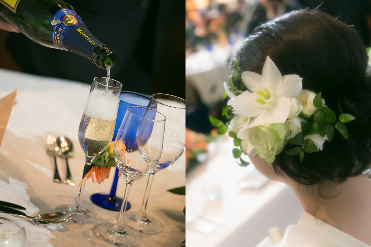 お酒については、乾杯からシャンパンを飲める格別さ、料理に合わせたラインナップを用意してくださる