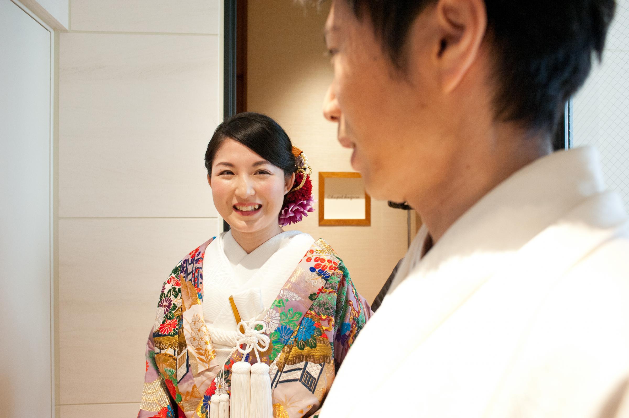 少人数でも行えるプランであること、和装に合うチャペルであることを条件としてプランナーさんと相談してた折、こちらを紹介されました。実際に下見に行ったときに、内装が新しくて大きい窓から光が入り明るく、綺麗で和装にも映えそうな場所だったので、下見の段階でこのチャペルに決めました。