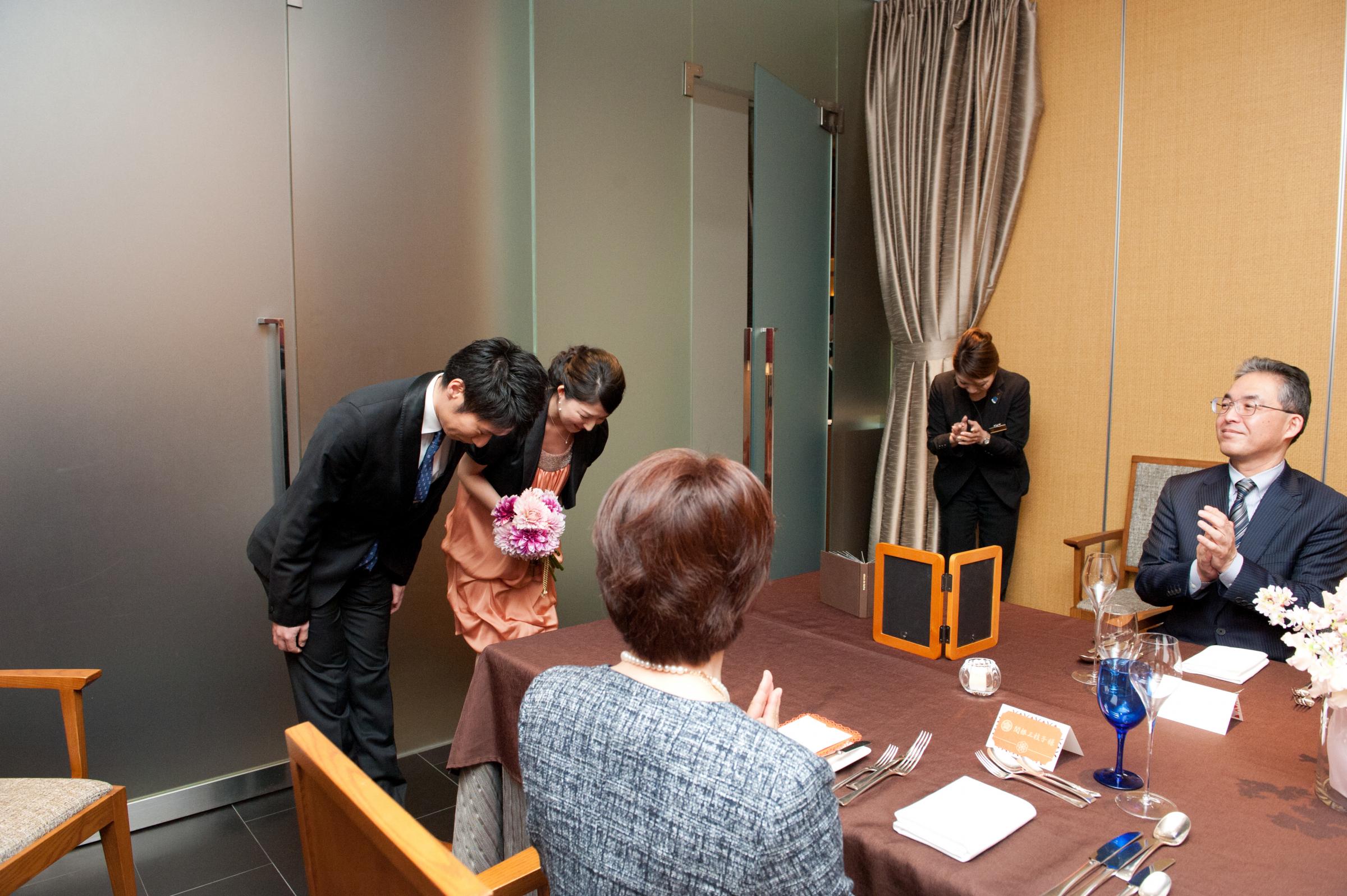 飯田橋駅から近いので交通の便が良く、高齢の両親たちを招待しやすかったことと、料理がおいしいと知人から聞いていたラリアンスが直結なのも理由でした。