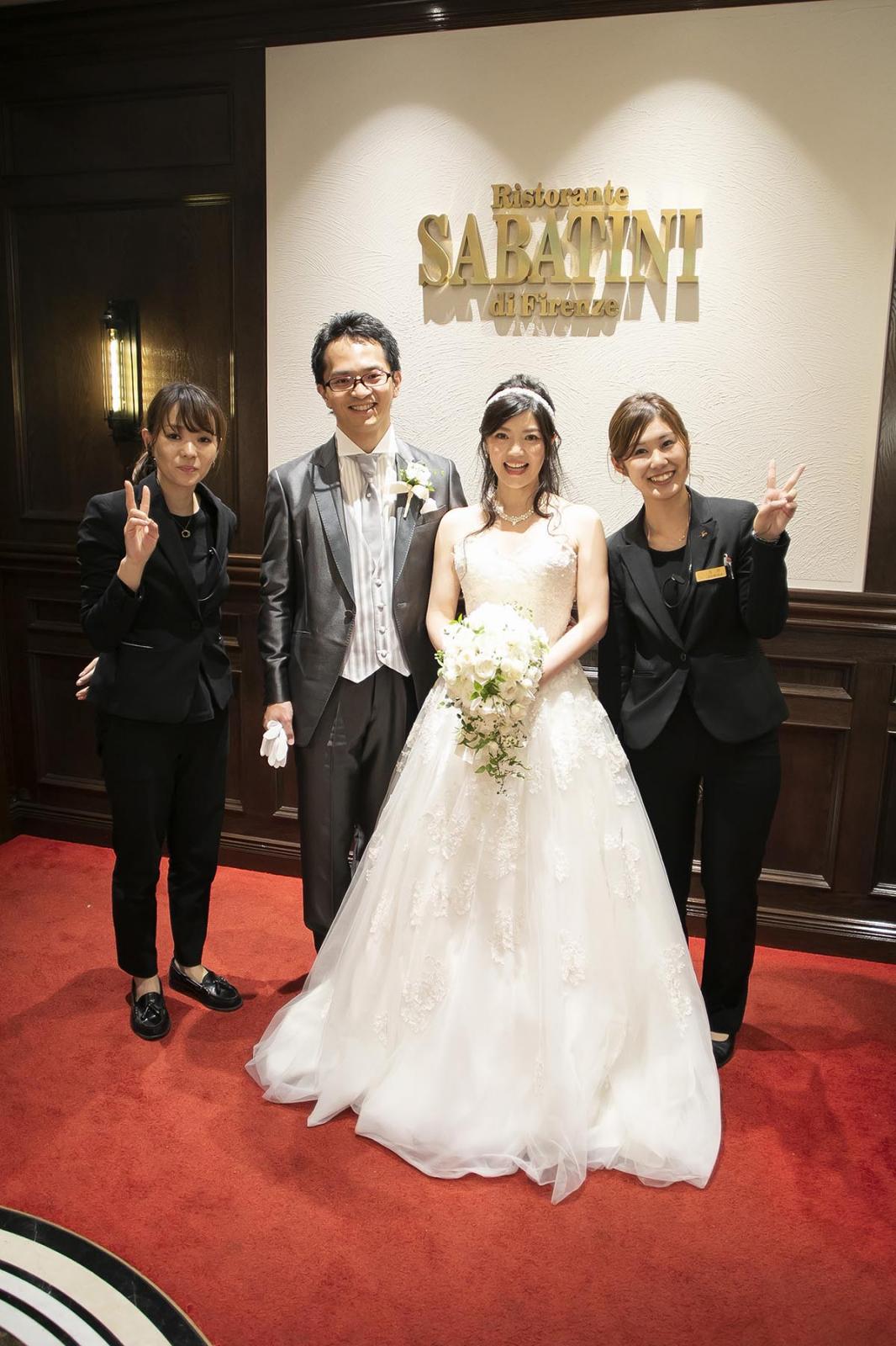 たくさん神社巡りをして決めましたが、それぞれの神社にそれぞれの雰囲気があるので、フィーリングもあると思います。披露宴会場は、サバティーニ・ディ・フィレンツェ東京で行いました。決め手は、①会場の雰囲気②ゲストの人数に対する広さ③スタッフの対応④料理で決めました。特にスタッフのサービスは、対応の早さやさりげない気配りが素晴らしいです。食事は、日本人向けの味付けです。おいしいさはもちろんですが、食べやすさやボリュームもしっかりしています。