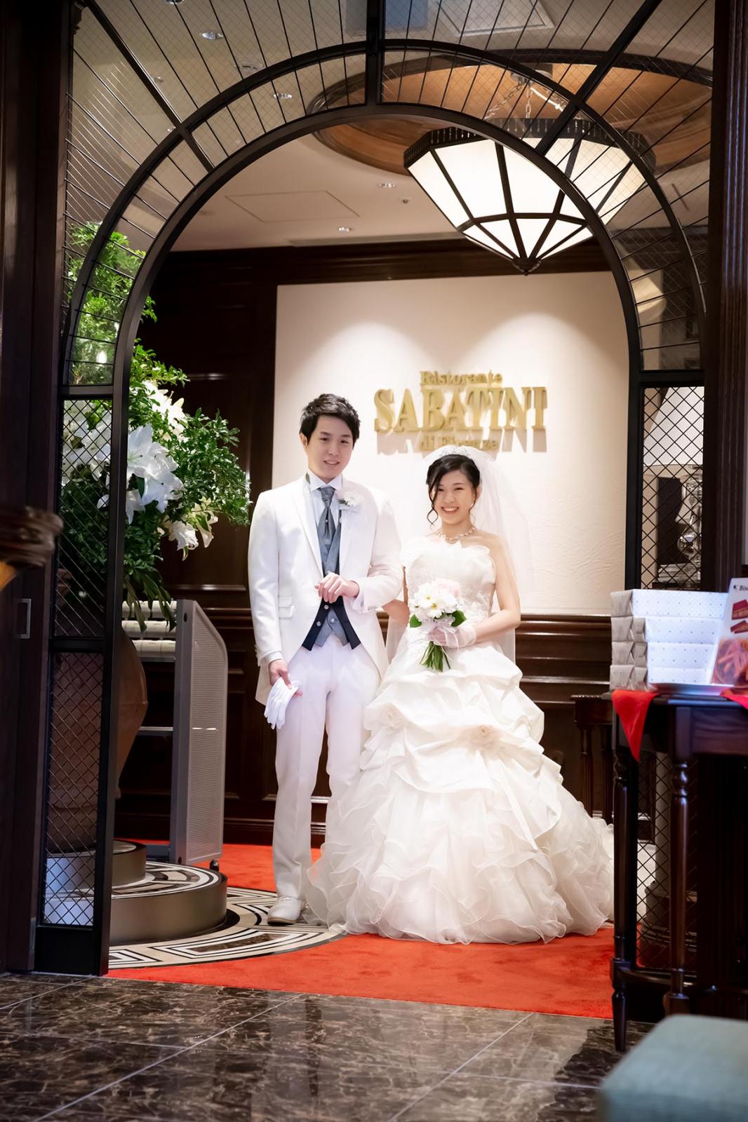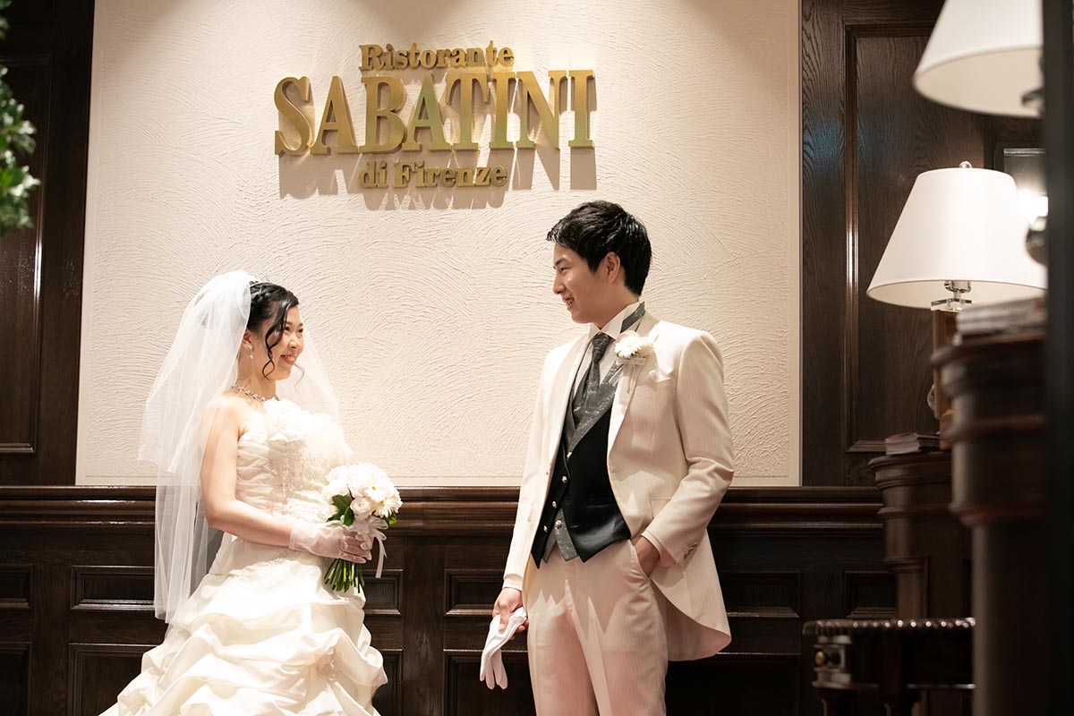 当日は想像以上に素晴らしい式になり、祖父母も喜んでくれて満足です!! 今回は私自身が妊娠中で、祖父母も長時間の挙式は難しいことから、レストランでの婚姻式という形をとろうと考えていました。たまたまサバティーニさんのホームページを見ていたところ、婚姻の儀と食事をメインに考えてあり、さらにドレスも着れるというプランを見つけこちらに決めました。会場のアクセス自体も有楽町駅から徒歩5分程のところにあり、駅近で分かりやすいのもポイントでした。有楽町駅は電車の線がいくつか通っており、私たちは乗り換えせず一本で行くことができ、交通の便も良かったです。