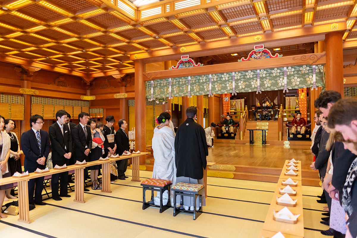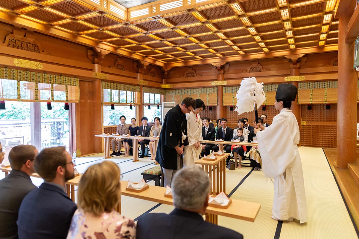 もともと初来日する主人の家族のためにも神前式を行いたいと考えており、メールのみのやりとりに当初不安もあったのですが、担当の方が以前にも国際結婚のカップルがいらしたということや、細かい説明を丁寧にしてくれたのでこちらでお願いして間違いないと思い、会場を決めました。