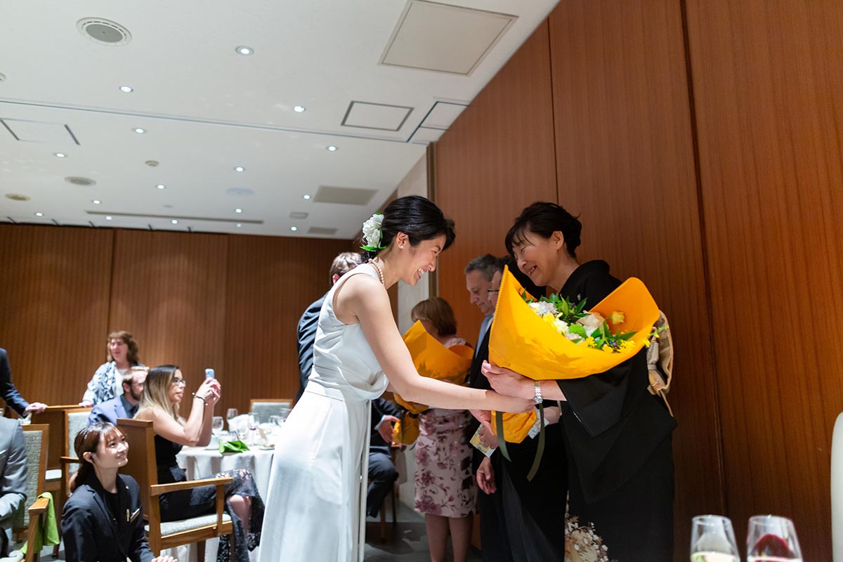 日本に住む私の家族とアメリカに住む主人の家族が会うのは約10年ぶりでした。普段から双方の家族が会う機会をなかなか設けられないため、結婚式は互いの家族がカジュアルに楽しい時間を過ごせるようなシンプルな式にしたいと考えていました。また私も今回日本に帰ってくるのが3年ぶりということもあり、久しぶりに会う友人たちと近い距離で式・会食が行えるように、なるべく余興やイベントは少なくシンプルにまとめることを重視しました。