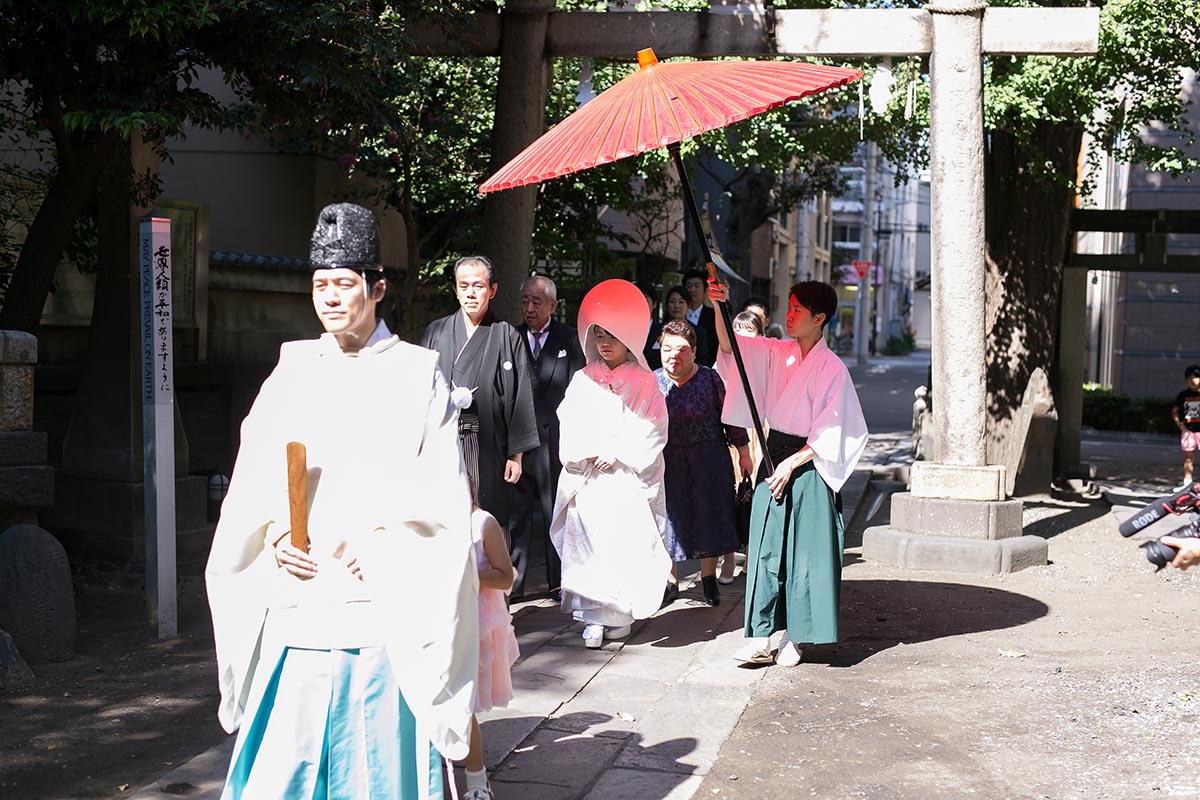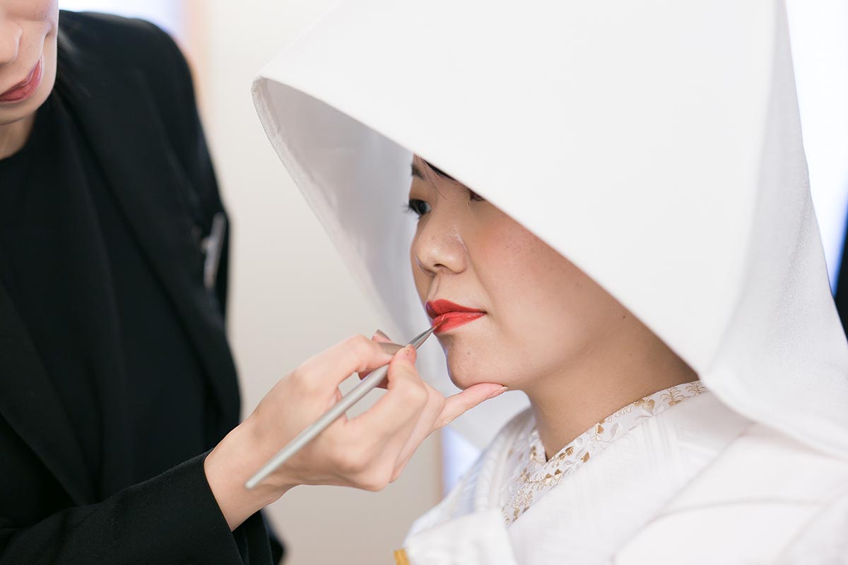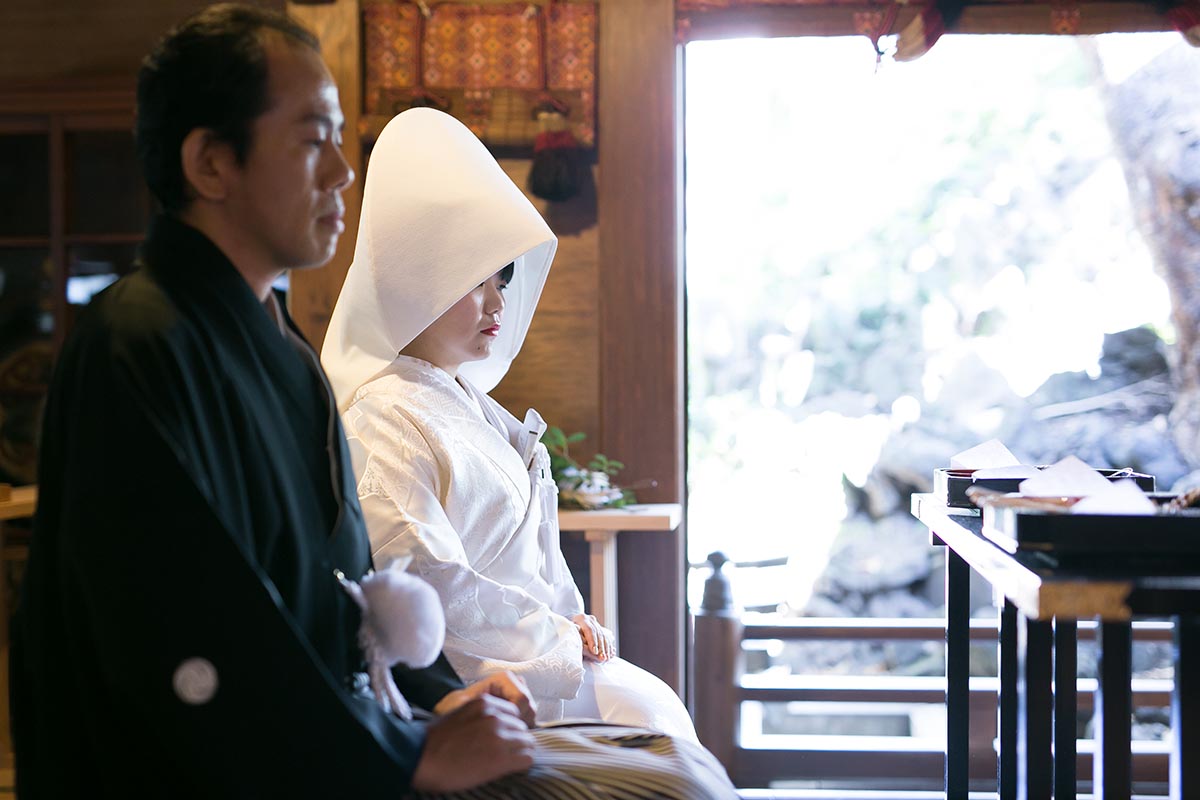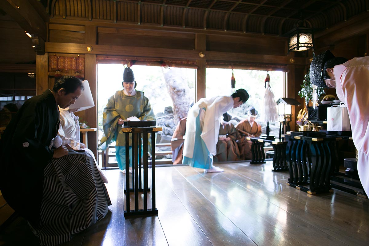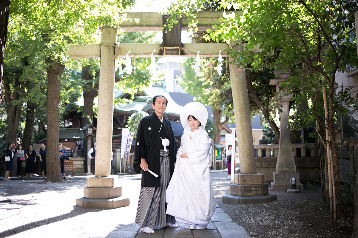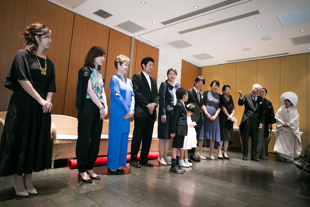 「ゲストの方々と話す時間をたくさん作りたい」というのが一番のこだわりでした。自分が結婚式にゲストとして参列したときに、久々に会えてもあまり話せなかったなと思うことがあったので、できれば一人一人と話す時間を取りたいと考えていました。そのため披露宴の開始前にご挨拶する時間を設けてもらったり、テーブルラウンドの時間を長めにとってもらいました。午前中に神社でお式、午後から披露宴というスケジュールだったのですが、披露宴から参加される方々にも神社での挙式の様子をお伝えしたいということで、当日編集の映像をお色直しの時間に流してもらいました。これが好評で、「晴れ姿きれいだね」と喜んでいただけました。イベントは最小限にしましたが、フラウリーはゲストの方にも参加して楽しんでいただけるかな、ということで取り入れました。会場が暗転し、花びらを入れて光り出した瞬間、わぁと歓声があがり、楽しんでいただけました。