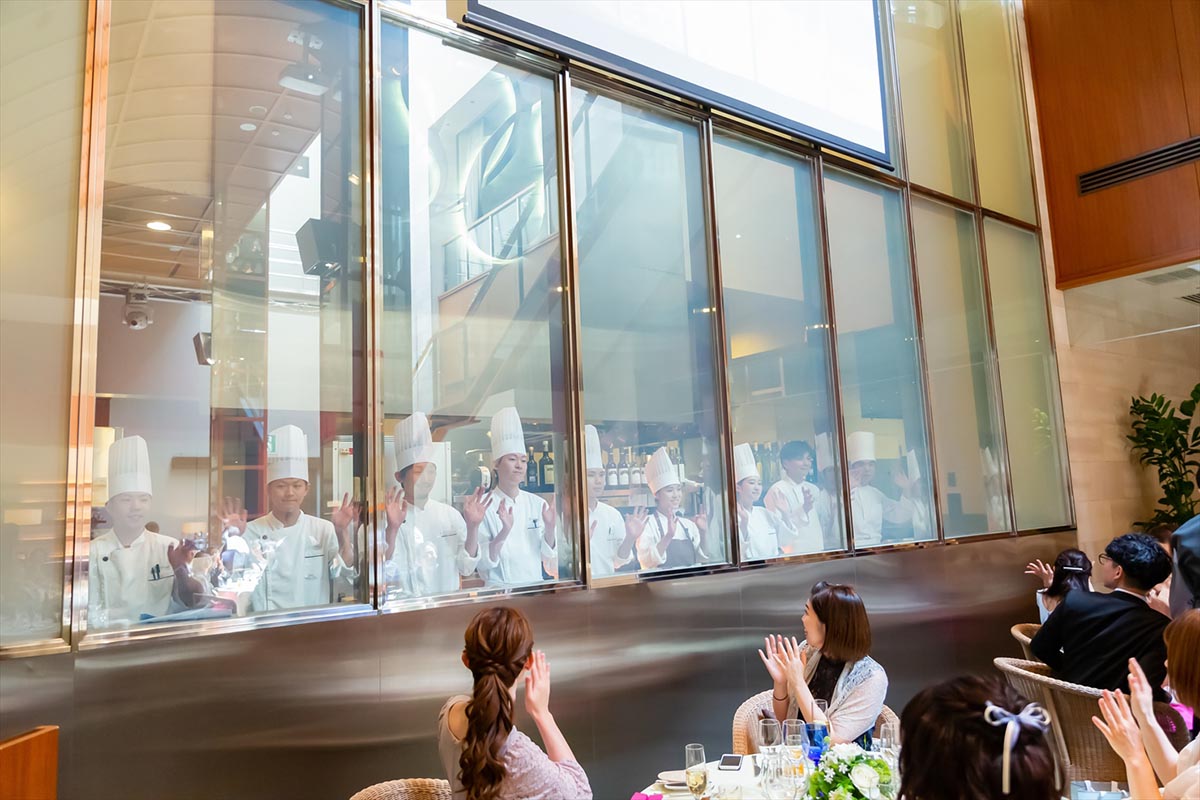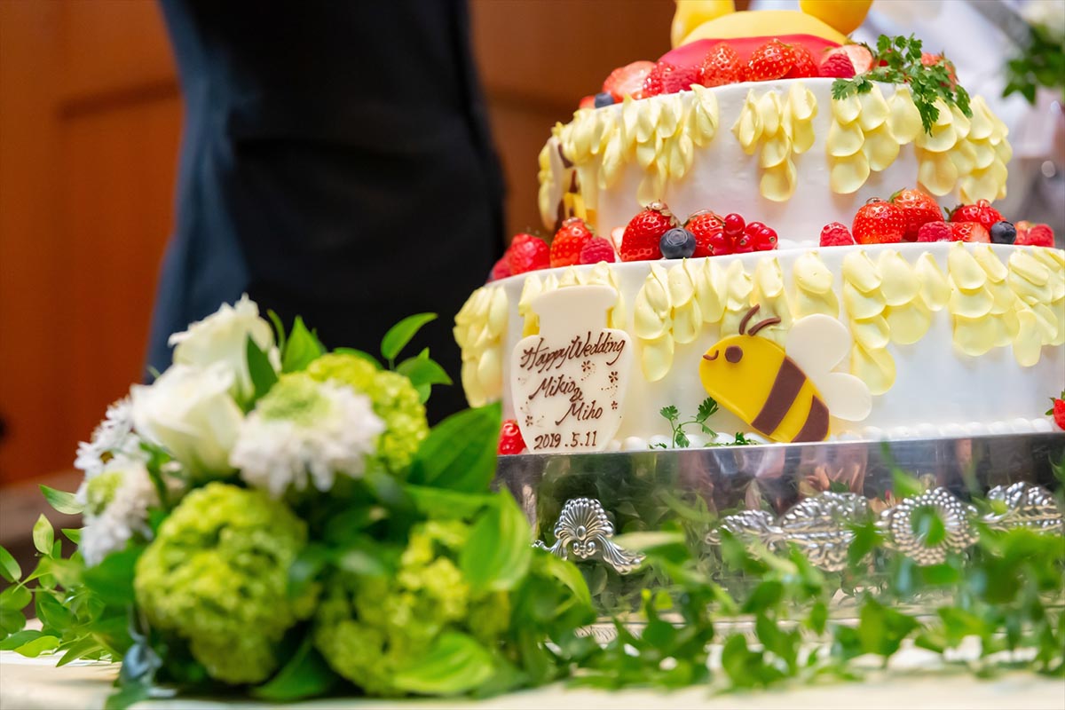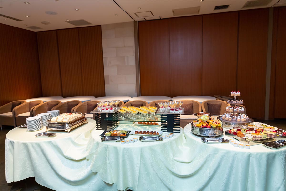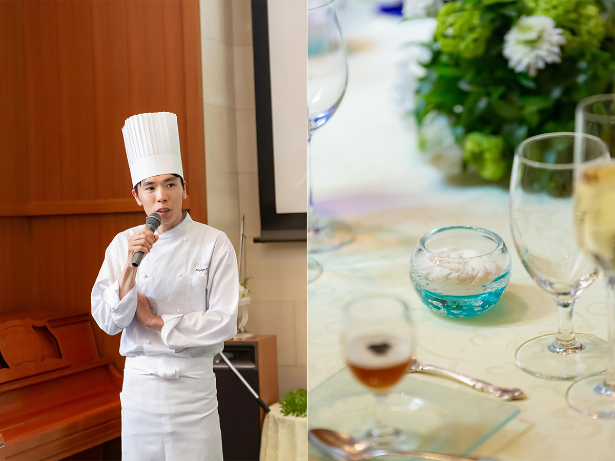 王道フレンチ、日本風フレンチのいずれかを、ゲストに選んでもらう形式にしました。これは、招待状に各フレンチのメニューカードを同封して、ゲストに選んでもらうというものです。多くのゲストから、「招待状にメニューカードが入っているのは初めて」という驚きと喜びの声を頂きました。また、デザートビュッフェでは、デザートの内容を具体的にリクエストし(フロマティックで出しているチーズケーキなど)、リクエストしたものは全て当日のビュッフェに反映されていたので、とても感謝しています。たくさんのゲストから、「料理が本当に美味しい!」と喜んでいただきました。