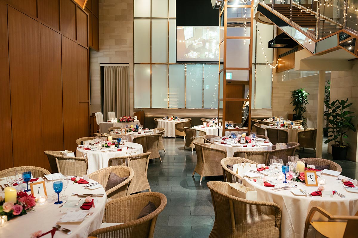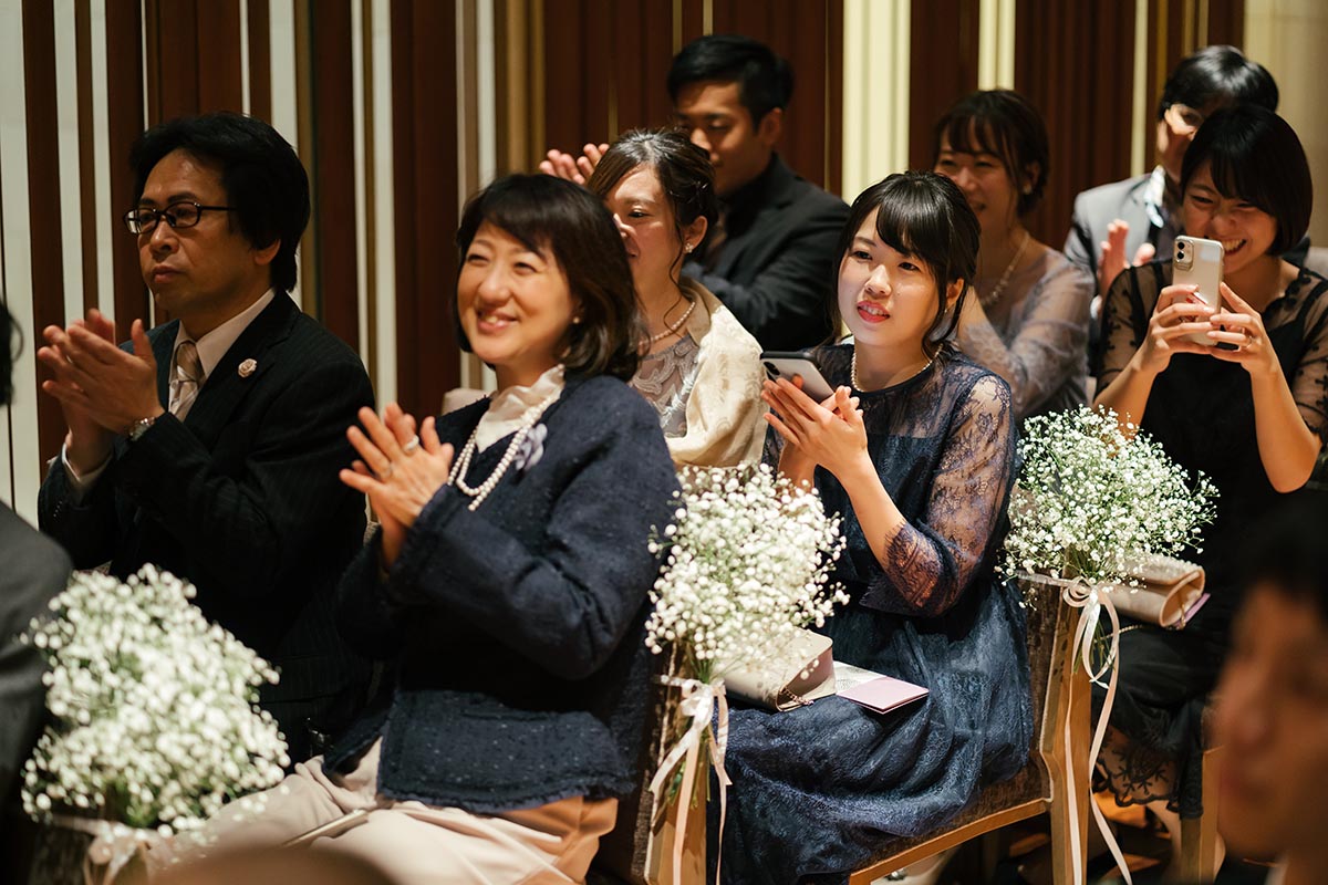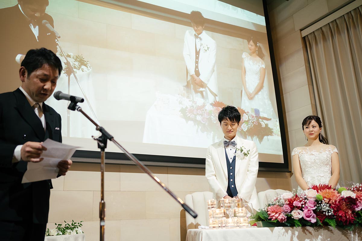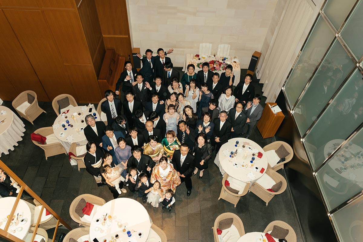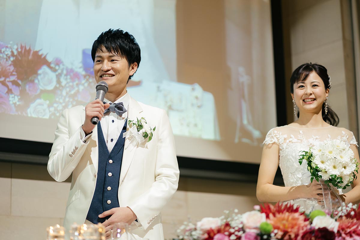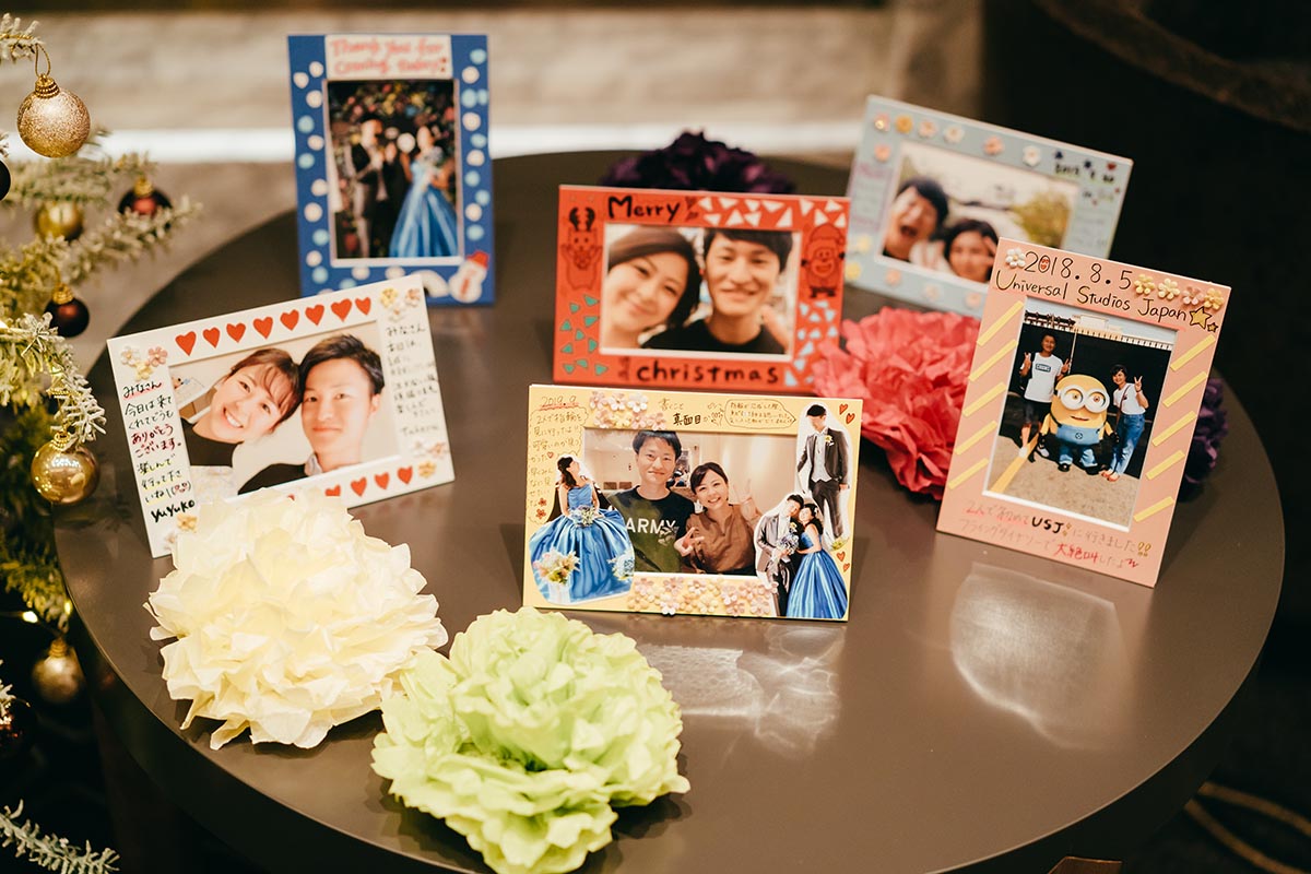 特にこだわったのは、”二人らしさ”です。固い雰囲気はどうも苦手な私たちでしたので、テーマである「感謝を伝える」という点は忘れず、可能な限り楽しく、明るい雰囲気になるような会場の花や、ケーキではなく、ローストビーフをお願い致しました。また、クリスマスが近かったこともあり、色合いもクリスマスを意識した配色にしました。そして、ラリアンス様にはプロのアドバイスを頂きつつも、わがままを受け入れてもらいました!余興はなかったのですが、スモークガラスの演出・階段からの演出・ビュッフェなどを組み合わせることで、盛りだくさんな式にすることができました。