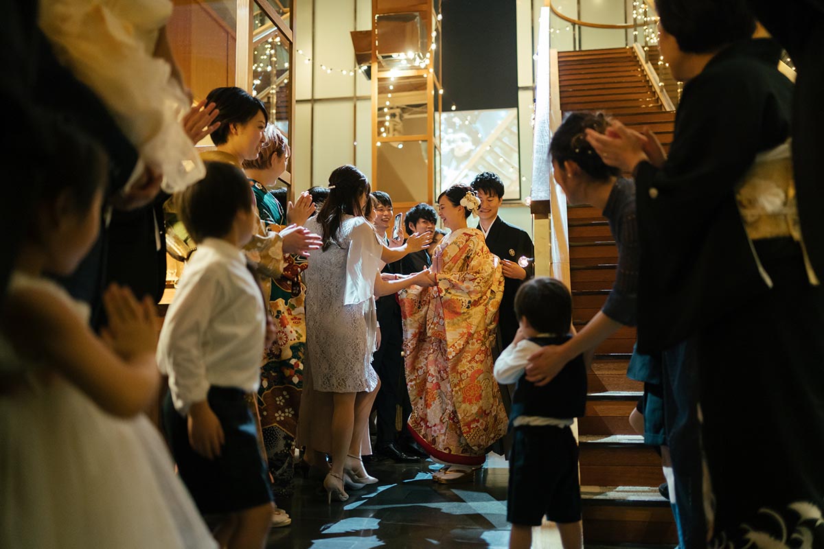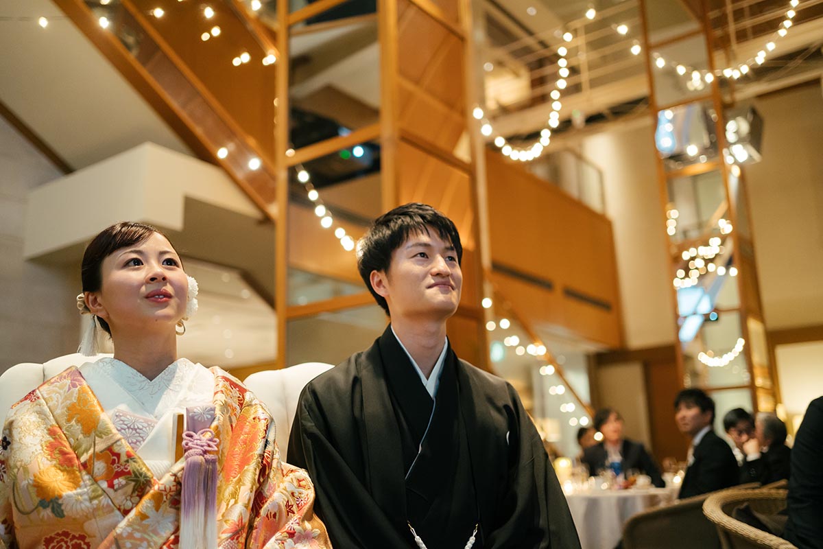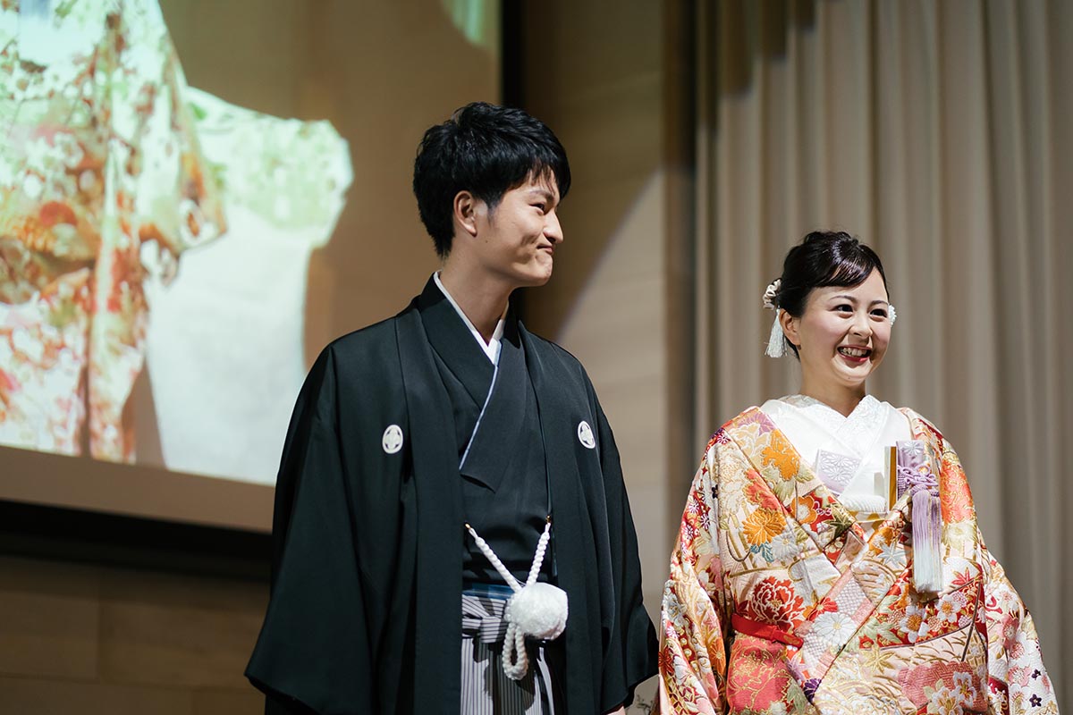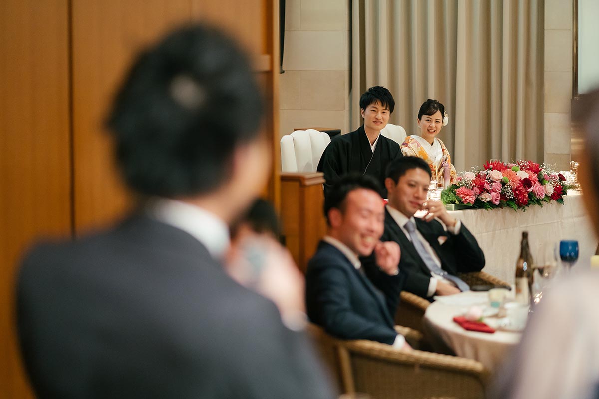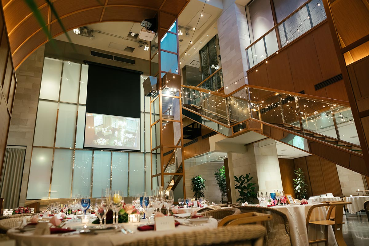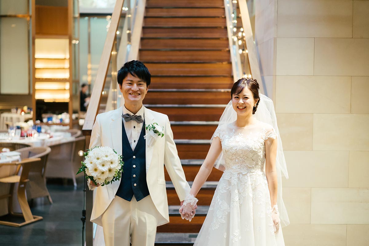 特にこだわったのは、”二人らしさ”です。固い雰囲気はどうも苦手な私たちでしたので、テーマである「感謝を伝える」という点は忘れず、可能な限り楽しく、明るい雰囲気になるような会場の花や、ケーキではなく、ローストビーフをお願い致しました。また、クリスマスが近かったこともあり、色合いもクリスマスを意識した配色にしました。そして、ラリアンス様にはプロのアドバイスを頂きつつも、わがままを受け入れてもらいました!余興はなかったのですが、スモークガラスの演出・階段からの演出・ビュッフェなどを組み合わせることで、盛りだくさんな式にすることができました。