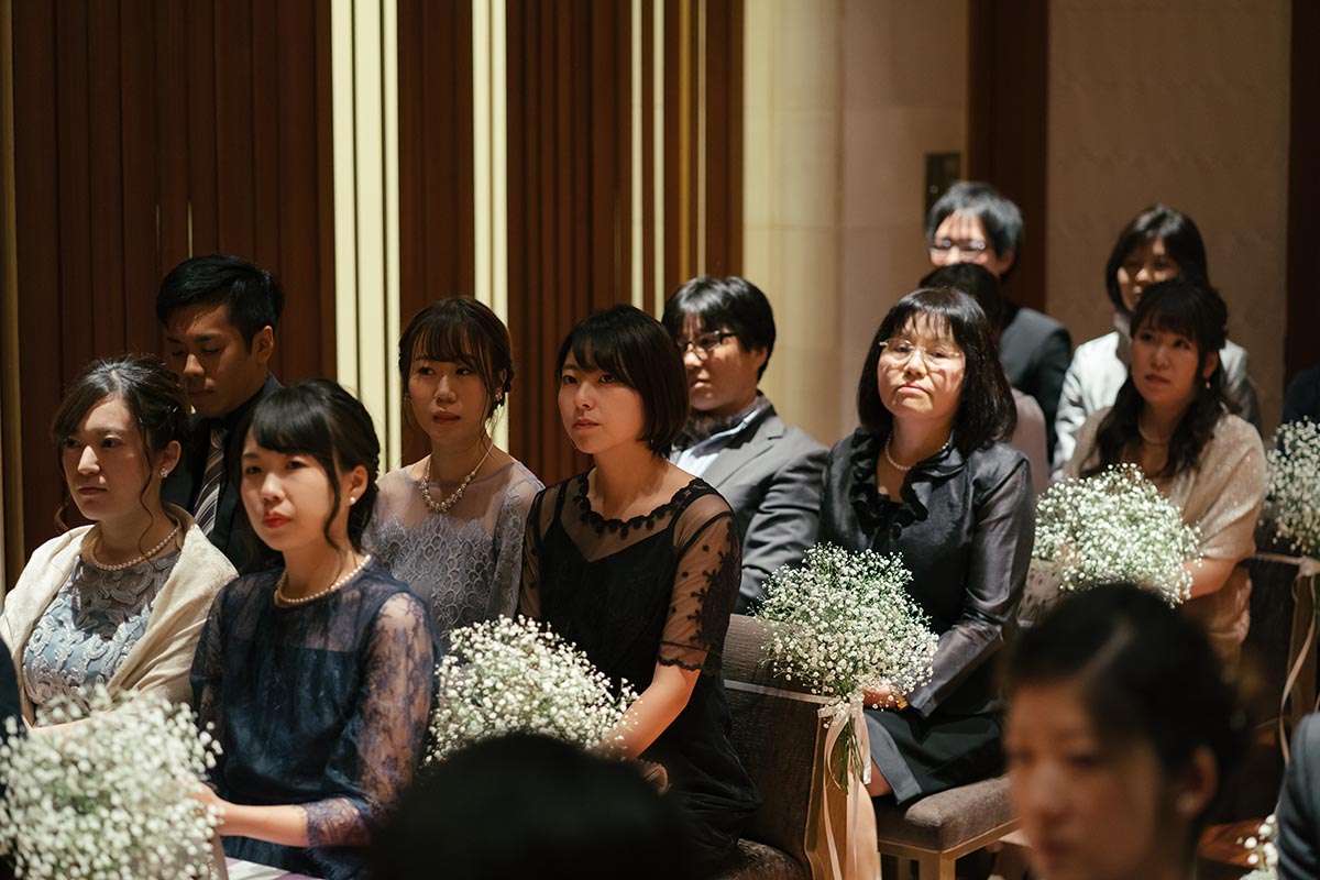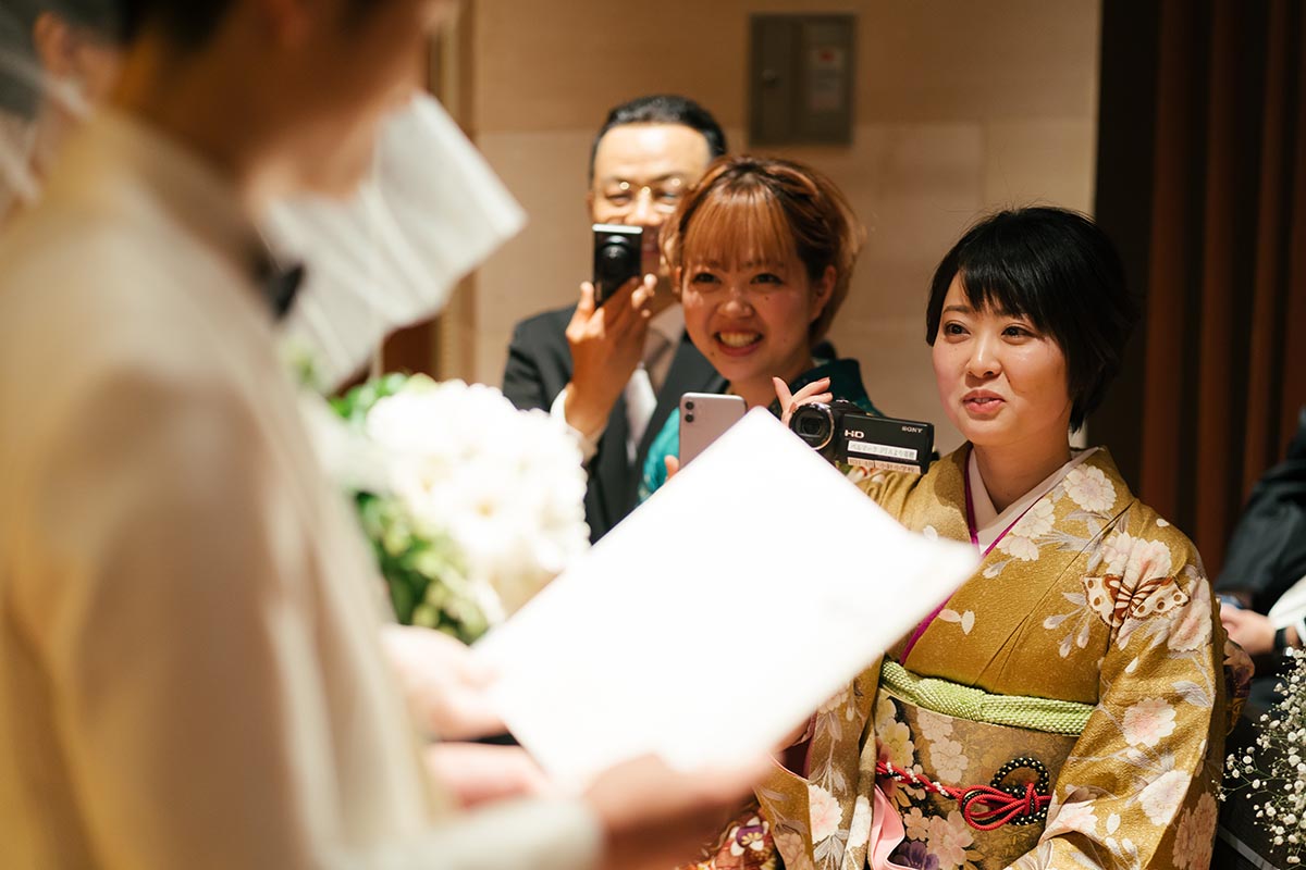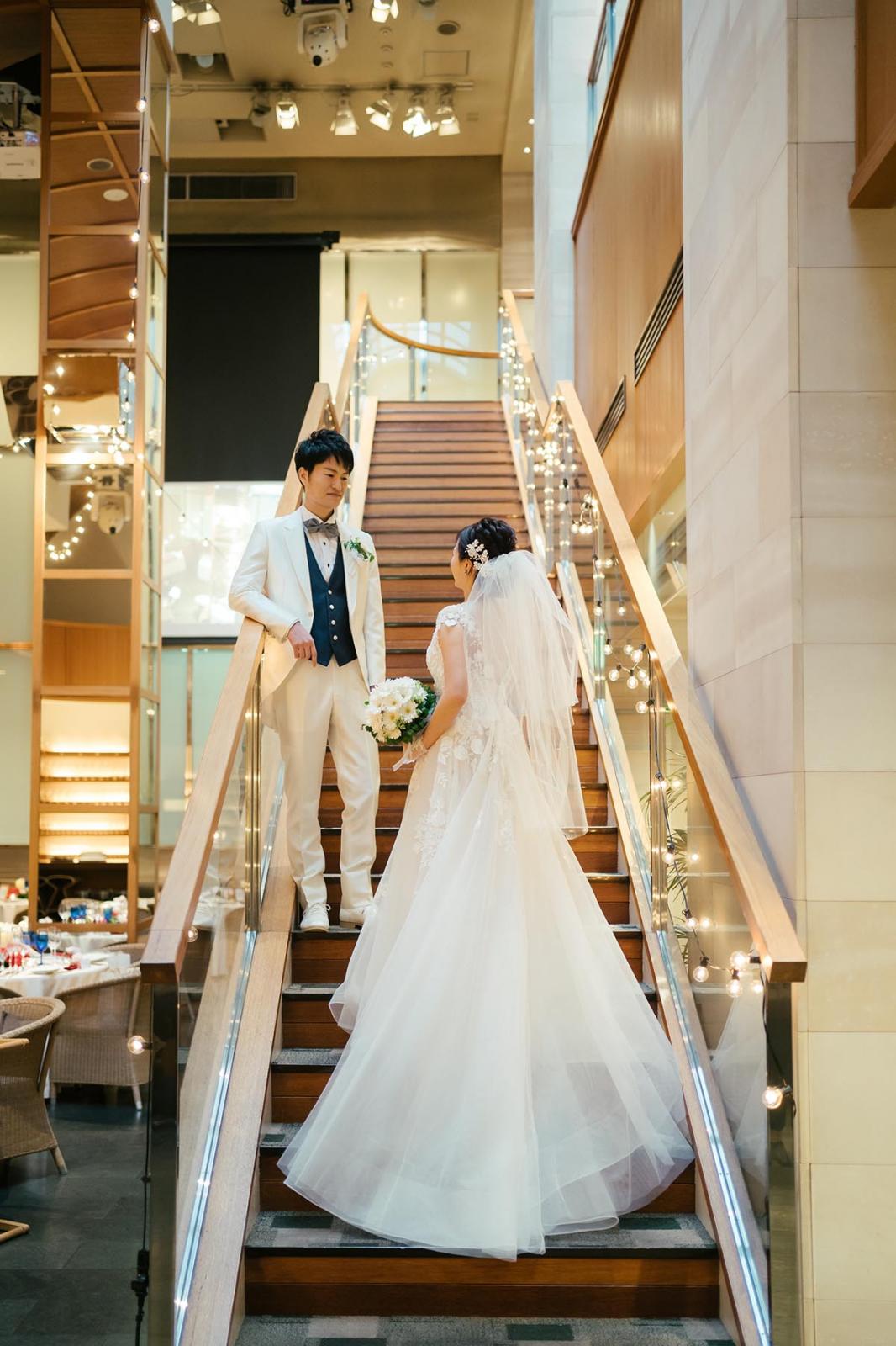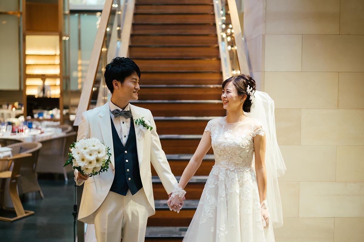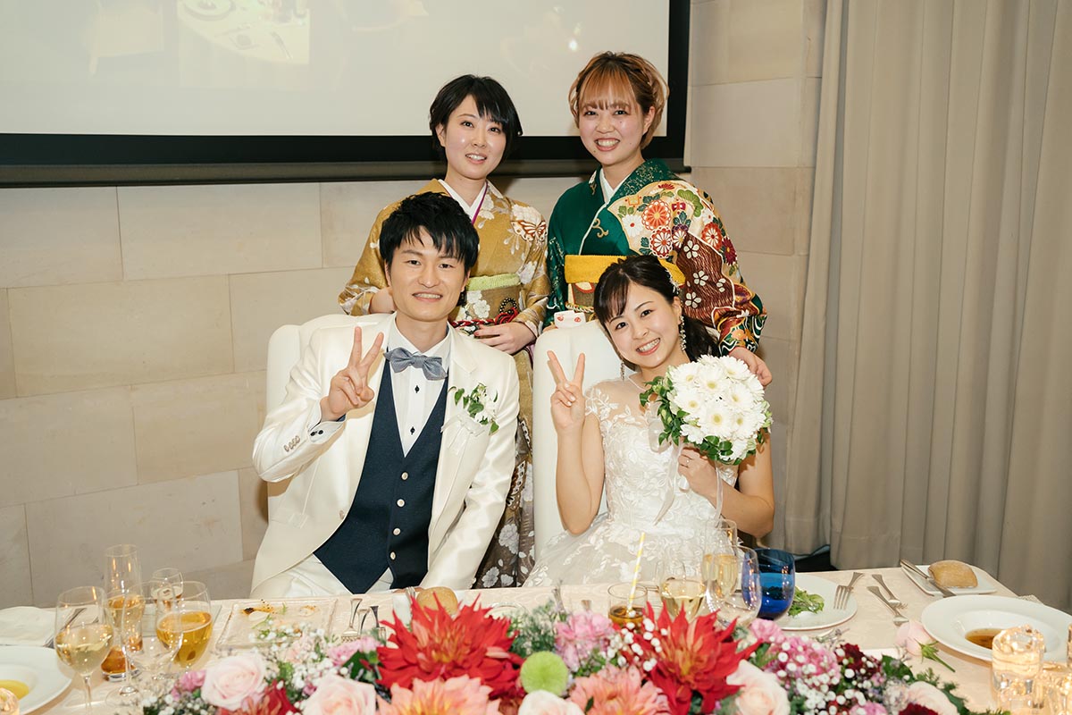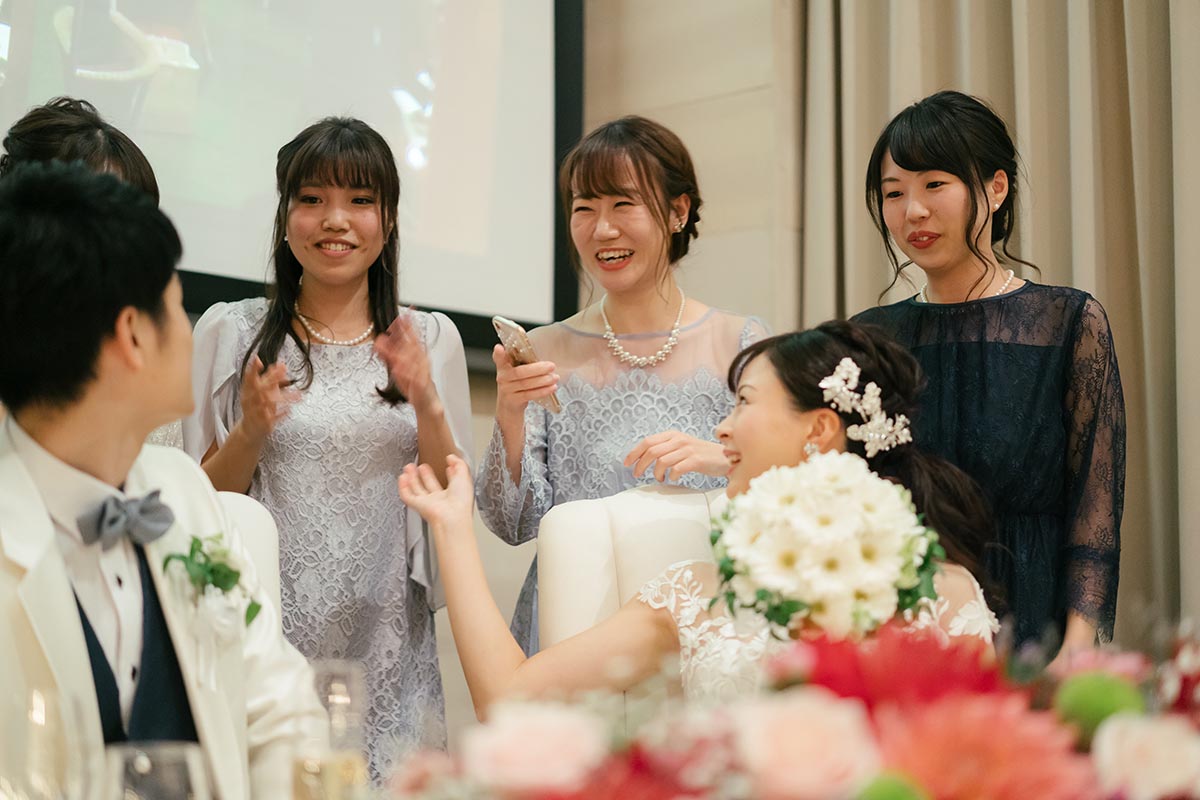 特にこだわったのは、”二人らしさ”です。固い雰囲気はどうも苦手な私たちでしたので、テーマである「感謝を伝える」という点は忘れず、可能な限り楽しく、明るい雰囲気になるような会場の花や、ケーキではなく、ローストビーフをお願い致しました。また、クリスマスが近かったこともあり、色合いもクリスマスを意識した配色にしました。そして、ラリアンス様にはプロのアドバイスを頂きつつも、わがままを受け入れてもらいました!余興はなかったのですが、スモークガラスの演出・階段からの演出・ビュッフェなどを組み合わせることで、盛りだくさんな式にすることができました。