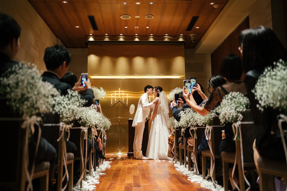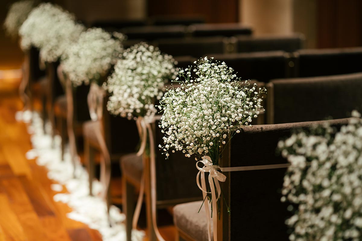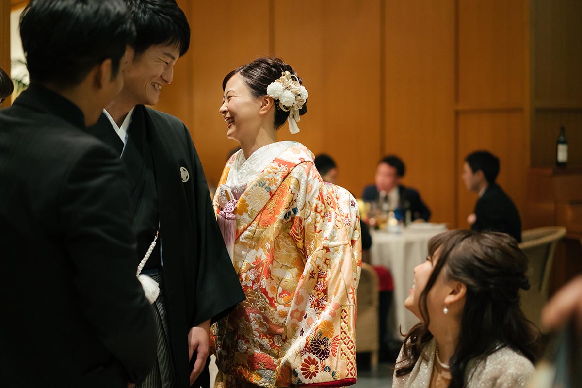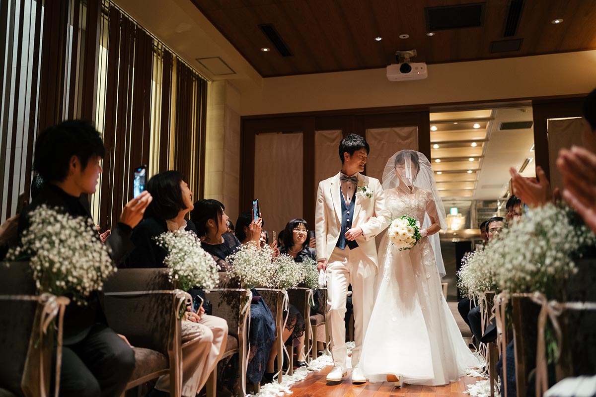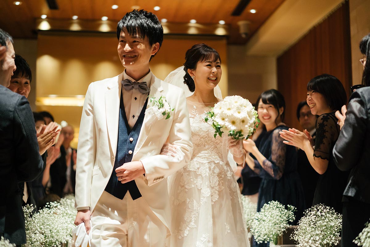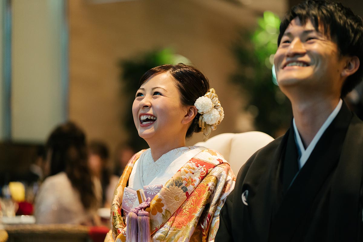 特にこだわったのは、”二人らしさ”です。固い雰囲気はどうも苦手な私たちでしたので、テーマである「感謝を伝える」という点は忘れず、可能な限り楽しく、明るい雰囲気になるような会場の花や、ケーキではなく、ローストビーフをお願い致しました。また、クリスマスが近かったこともあり、色合いもクリスマスを意識した配色にしました。そして、ラリアンス様にはプロのアドバイスを頂きつつも、わがままを受け入れてもらいました!余興はなかったのですが、スモークガラスの演出・階段からの演出・ビュッフェなどを組み合わせることで、盛りだくさんな式にすることができました。