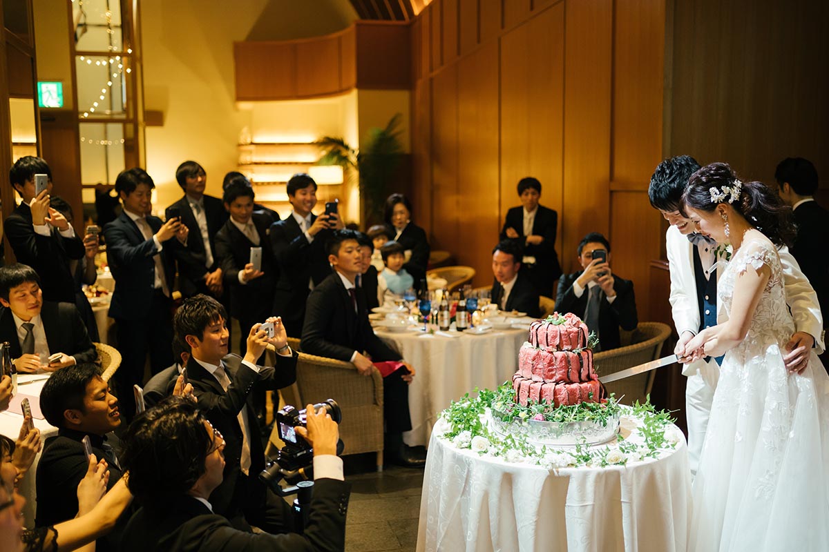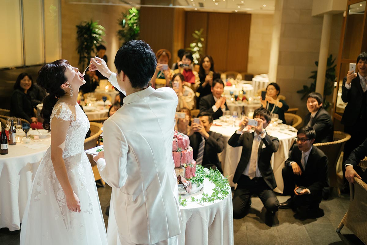 ブライダルフェアに参加させて頂き、料理を堪能させて頂きました。食べさせて頂いて、本当においしかったので、ゲストの皆様にも食べてもらいたいと思いました。また、その際に当日のイメージをお伝えしたところ、プランナーさんが丁寧に色々教えてくださり、当日のイメージが湧き、その時にここでお願いしようと決めました。ウェディングケーキのアレンジや演出は自由度が高いので、自分たちらしい結婚式があげられるところが、他にはない大きな魅力です。