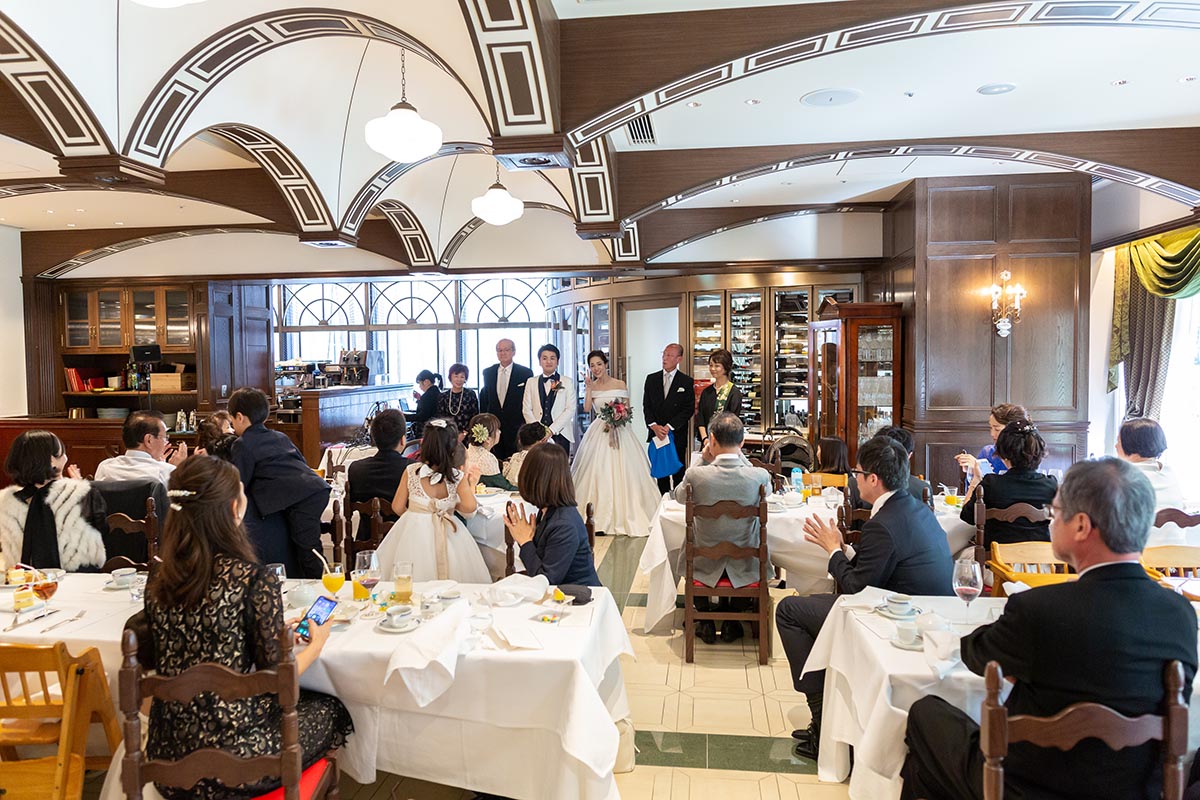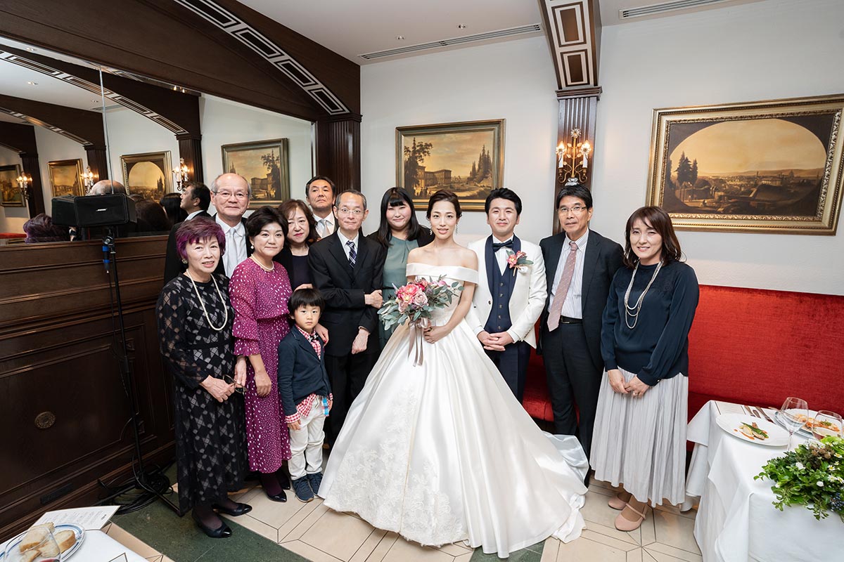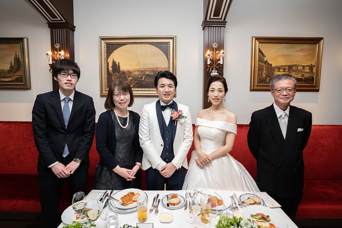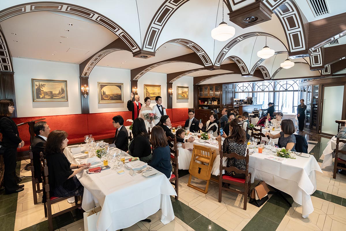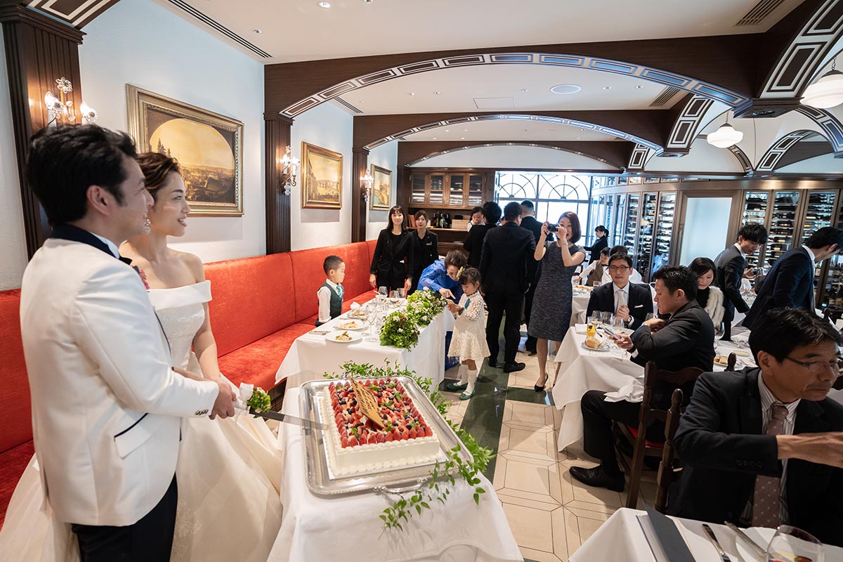また親族を中心とした会にする予定だったこともあり、アットホームな式にしたかったので、会場も広すぎず列席者の距離も近く皆さんとお話がしやすそうなので丁度良いと思い、決めさせて頂きました。お料理も試食させて頂きましたが大変美味しく、また新郎のご両親が好きなレストランであったことも決め手の一つとなりました。親族の中には、遠方から来られる方もいたので、分かりやすく交通の便の良い場所が良いなと思っていましたので、有楽町という立地がさらに後押しとなりました。
