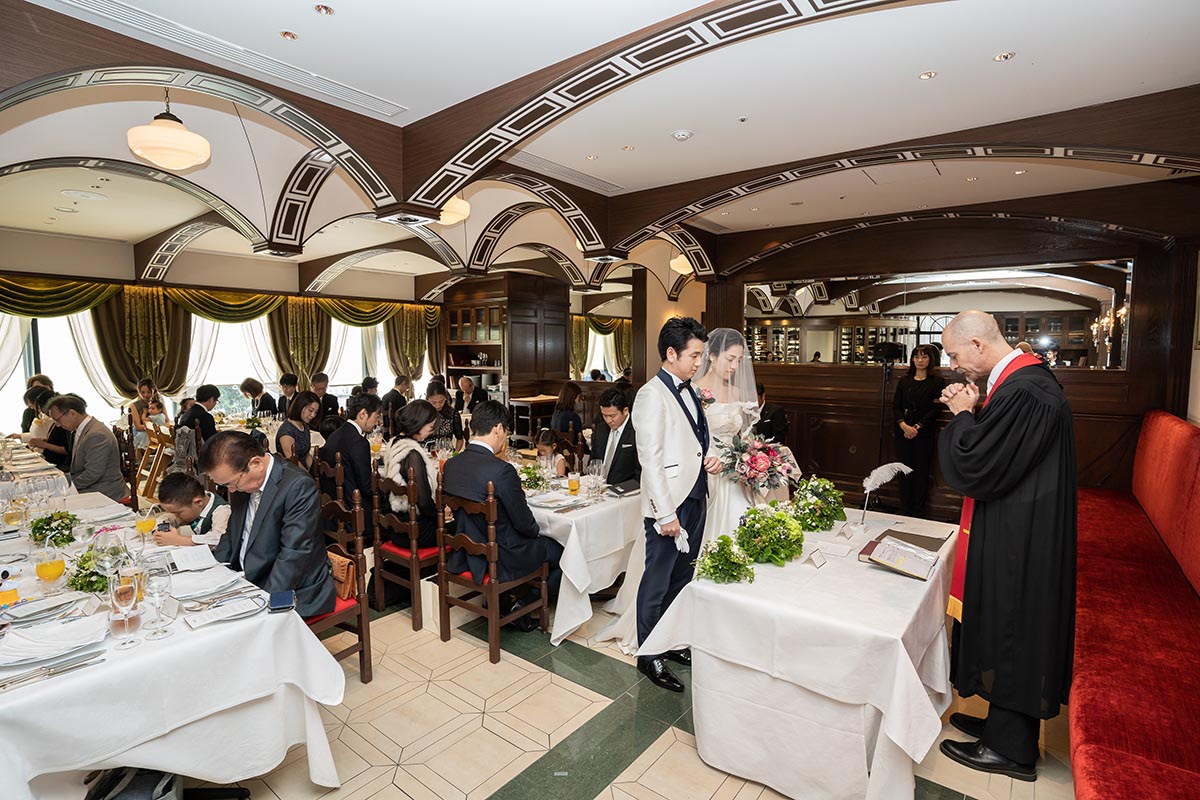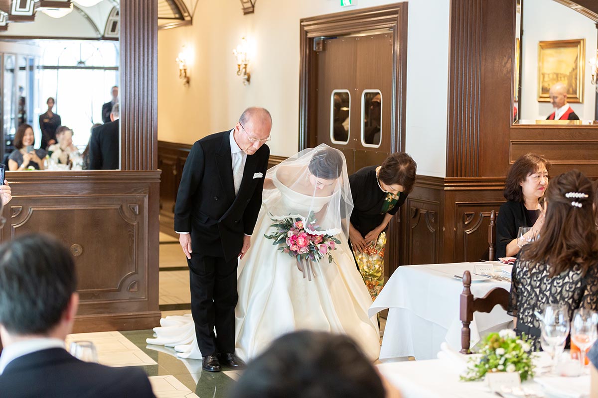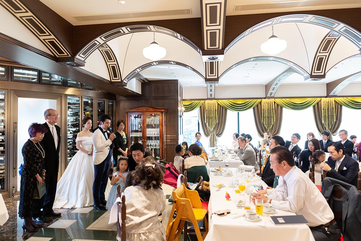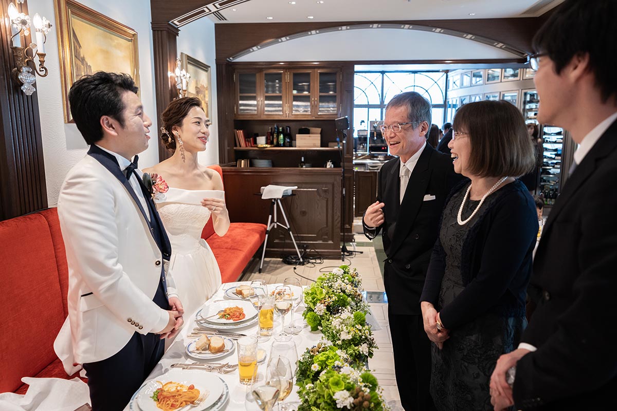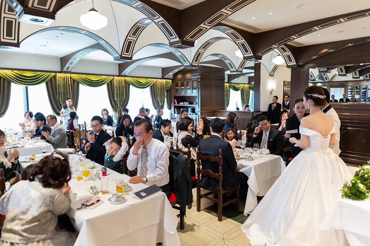 また親族を中心とした会にする予定だったこともあり、アットホームな式にしたかったので、会場も広すぎず列席者の距離も近く皆さんとお話がしやすそうなので丁度良いと思い、決めさせて頂きました。お料理も試食させて頂きましたが大変美味しく、また新郎のご両親が好きなレストランであったことも決め手の一つとなりました。親族の中には、遠方から来られる方もいたので、分かりやすく交通の便の良い場所が良いなと思っていましたので、有楽町という立地がさらに後押しとなりました。