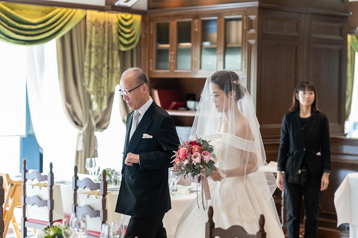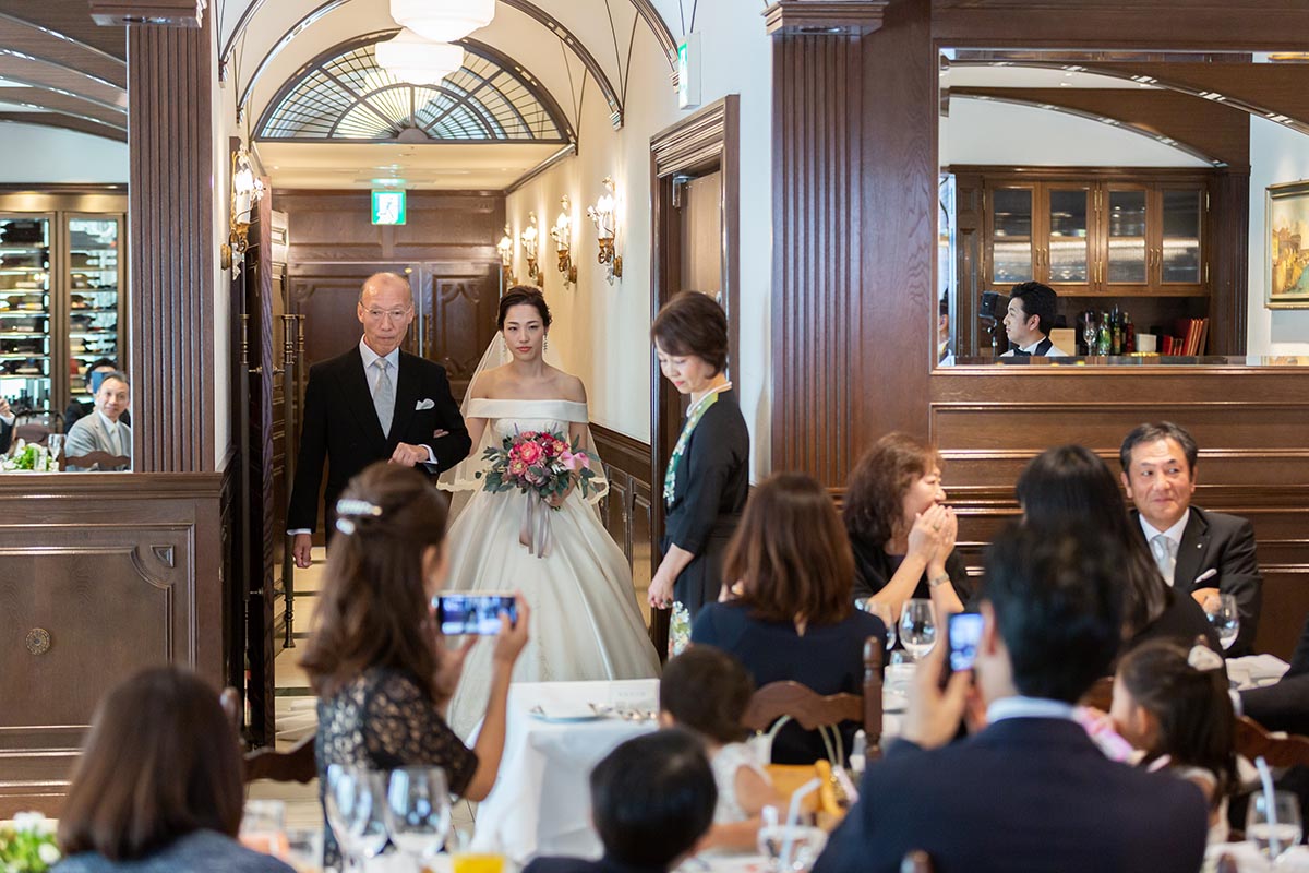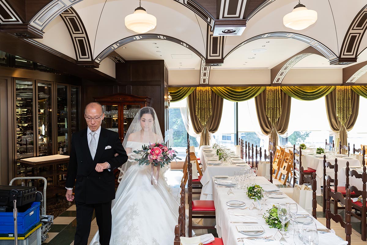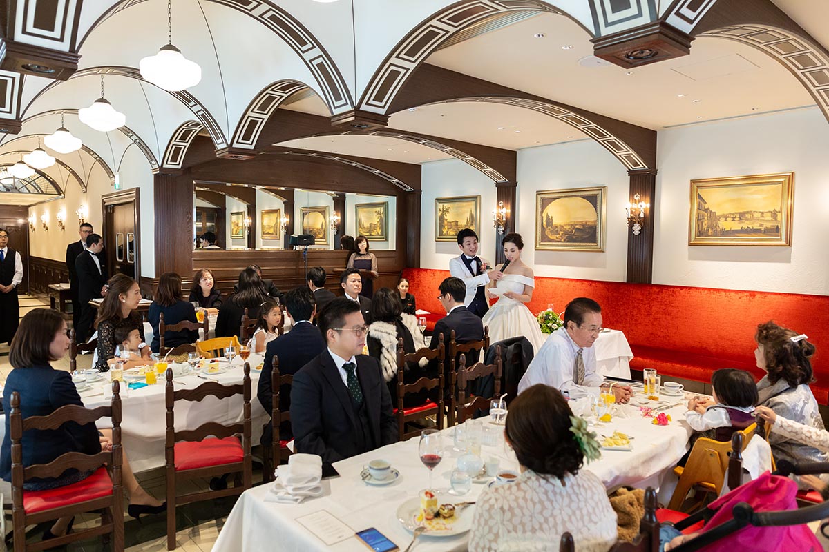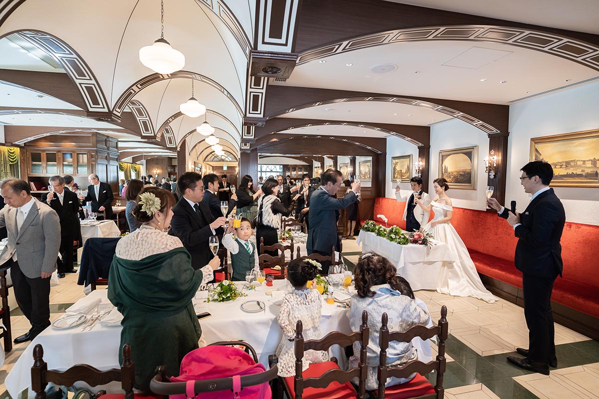 また親族を中心とした会にする予定だったこともあり、アットホームな式にしたかったので、会場も広すぎず列席者の距離も近く皆さんとお話がしやすそうなので丁度良いと思い、決めさせて頂きました。お料理も試食させて頂きましたが大変美味しく、また新郎のご両親が好きなレストランであったことも決め手の一つとなりました。親族の中には、遠方から来られる方もいたので、分かりやすく交通の便の良い場所が良いなと思っていましたので、有楽町という立地がさらに後押しとなりました。