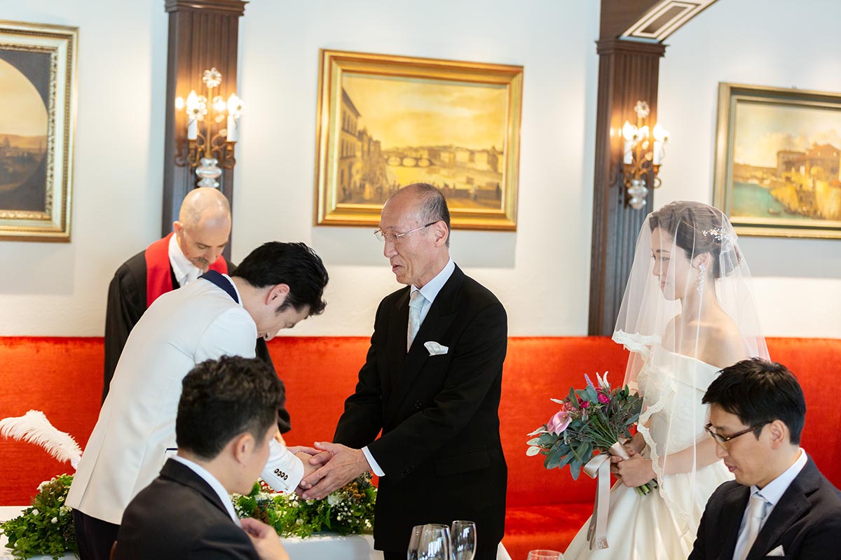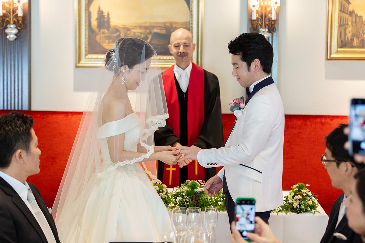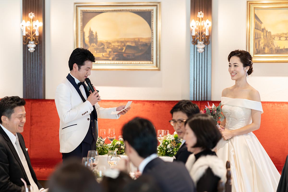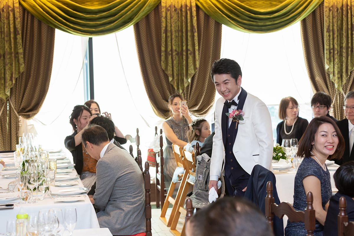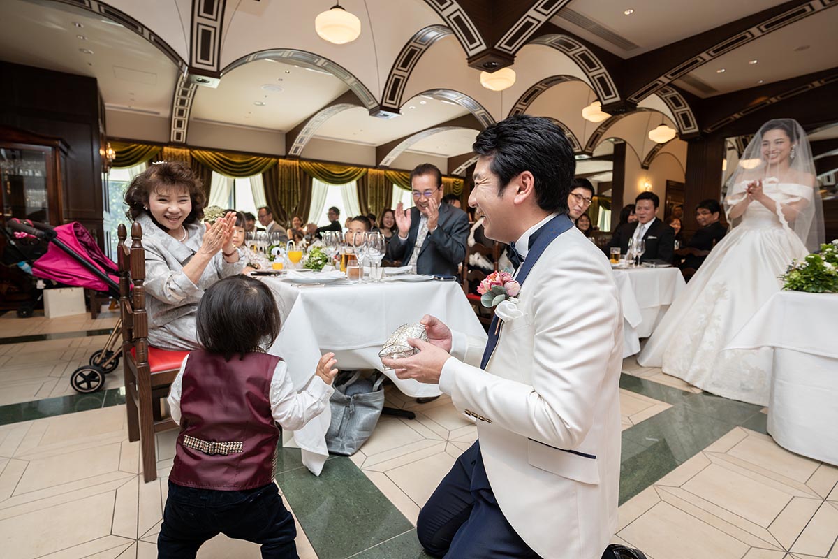 また親族を中心とした会にする予定だったこともあり、アットホームな式にしたかったので、会場も広すぎず列席者の距離も近く皆さんとお話がしやすそうなので丁度良いと思い、決めさせて頂きました。お料理も試食させて頂きましたが大変美味しく、また新郎のご両親が好きなレストランであったことも決め手の一つとなりました。親族の中には、遠方から来られる方もいたので、分かりやすく交通の便の良い場所が良いなと思っていましたので、有楽町という立地がさらに後押しとなりました。