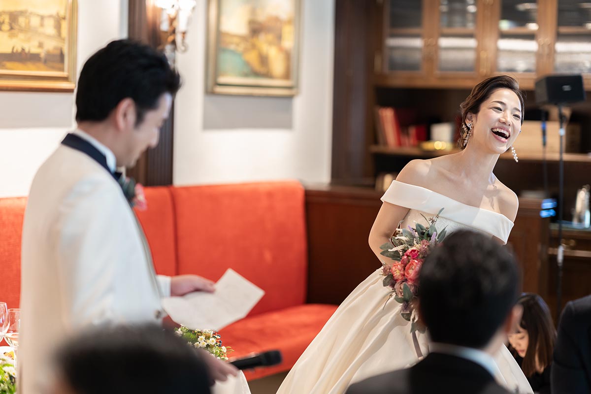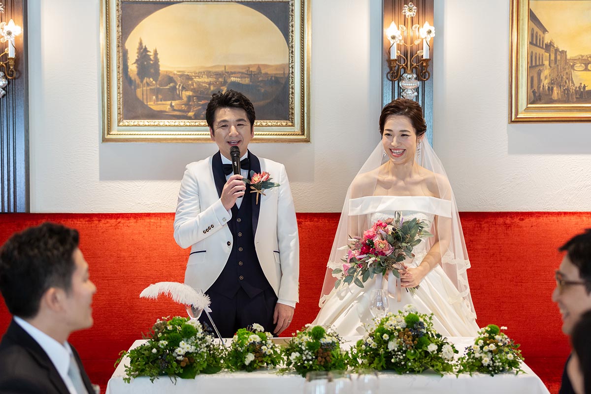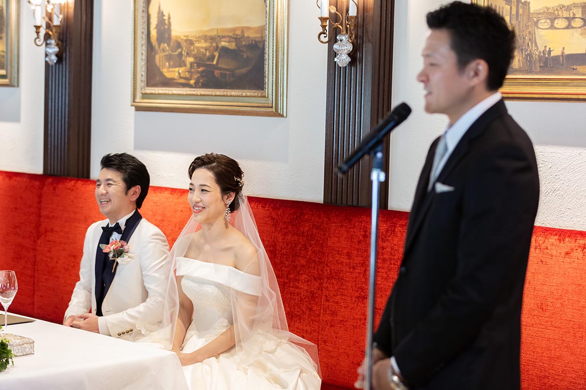 親族の方々を中心とした結婚式でしたので、演出や余興等を行うのではなく、歓談の時間を多く取って頂き、列席者の方々とたくさんコミュニケーションが取れるような流れに致しました。当日急遽、新郎から新婦への手紙を読むという内容を追加して頂いたのですが、手紙の内容も感動というよりは面白い内容だったので、列席者の方々にも好評で喜んで頂きました。プロフィールのDVDは、自分たちで作成しましたのでかなりの労力を費やしましたが、お互いの家族が私たちのことを深く知ることが出来るきっかけとなり、頑張って作成してよかったなと思います。最後の新婦から両親への手紙も恥ずかしいので迷ってはいましたが、多くの方に感動したよ、良かったよと言って頂いたので、このような機会ももう無いので結婚式という場をお借りして手紙を読ませて頂き、本当に良かったなと今となっては思います。