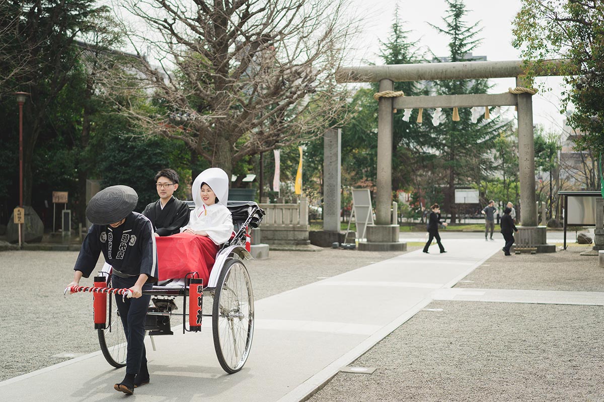 すぐに気に入ってしまいました。神社も会食会場も歴史や風情があり、とても素敵で迷うことなく決めました。また人力車での送迎、ダルマケーキなど和でモダンな演出がでいるもの魅力でした。