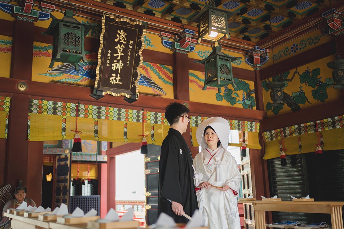 和装の凛とした雰囲気が好きで日本古来の式をしたいと思い、会場を探していました。浅草は子供の頃から思い出があり大人になってからも度々訪れていました。活気があり、人情に溢れた浅草の雰囲気が好きでした。ハートツリーウェディングでの結婚式のレポートを見て、