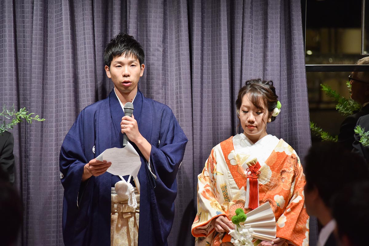 現在の結婚式は洋式が多いです。今回の結婚式は和式で行うため、できるだけ和の雰囲気が出るように意識しました。また、今回の式の招待者は友人が中心であるため、堅くなりすぎず、できるだけ明るい雰囲気になるように意識しました。