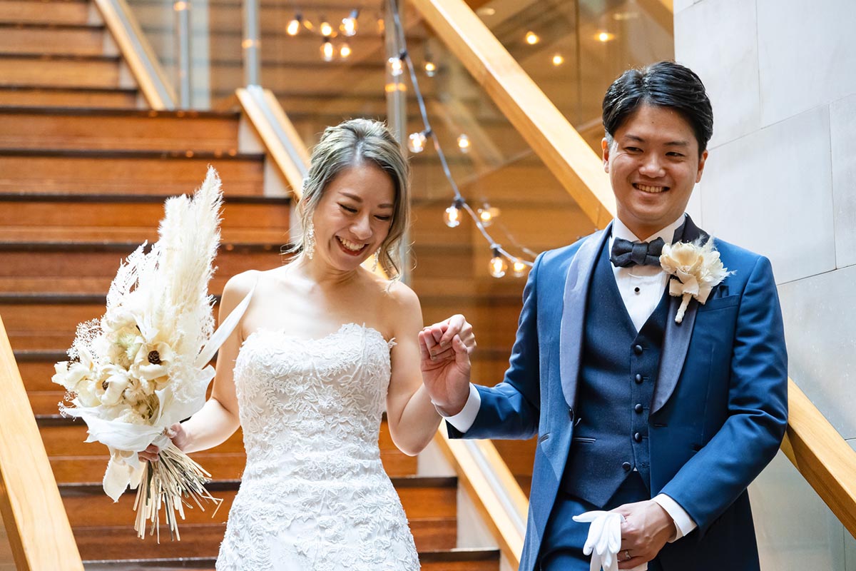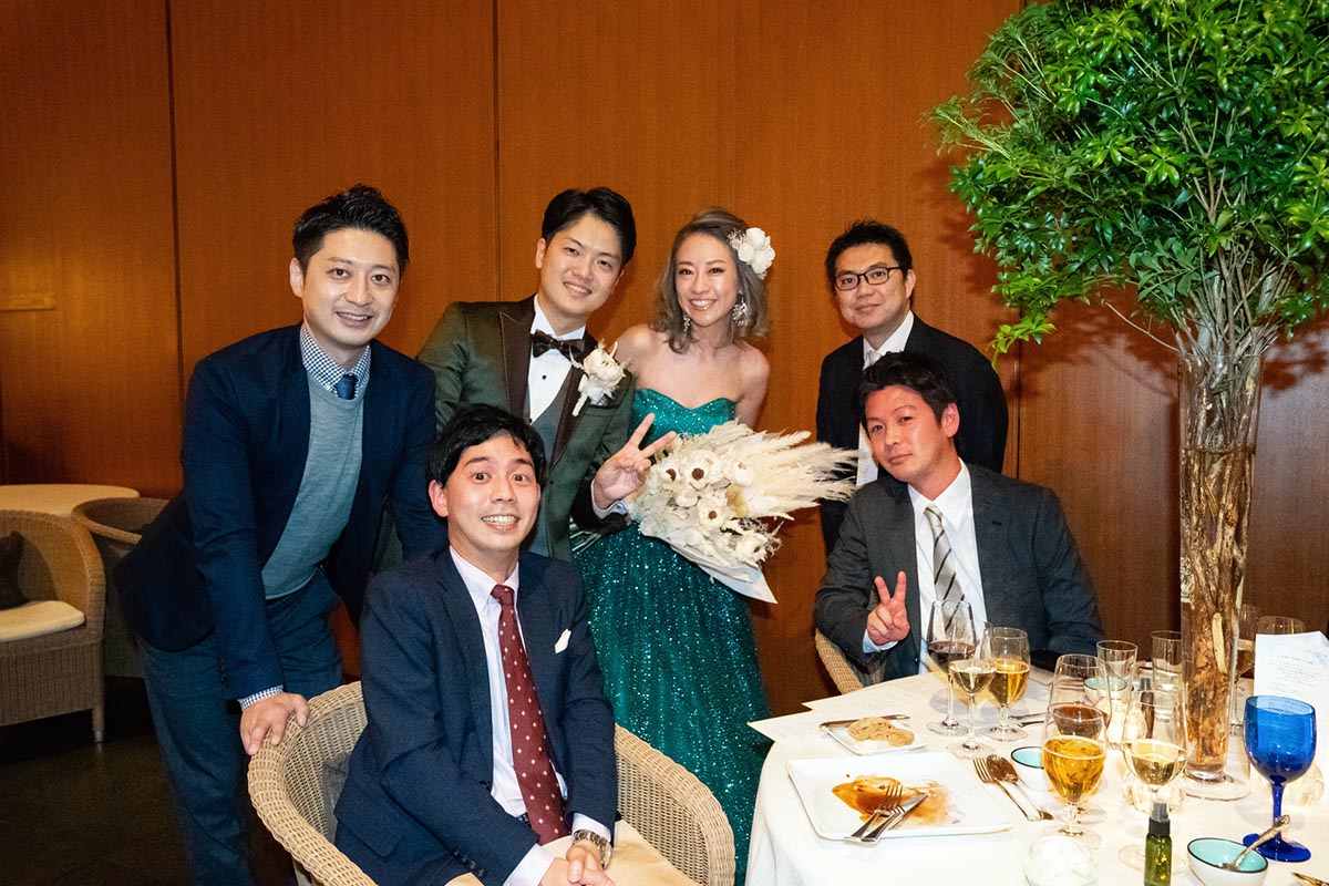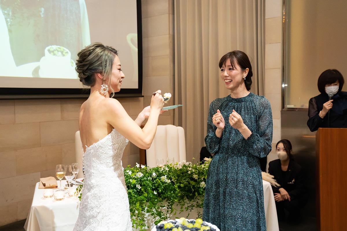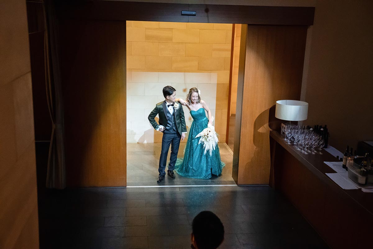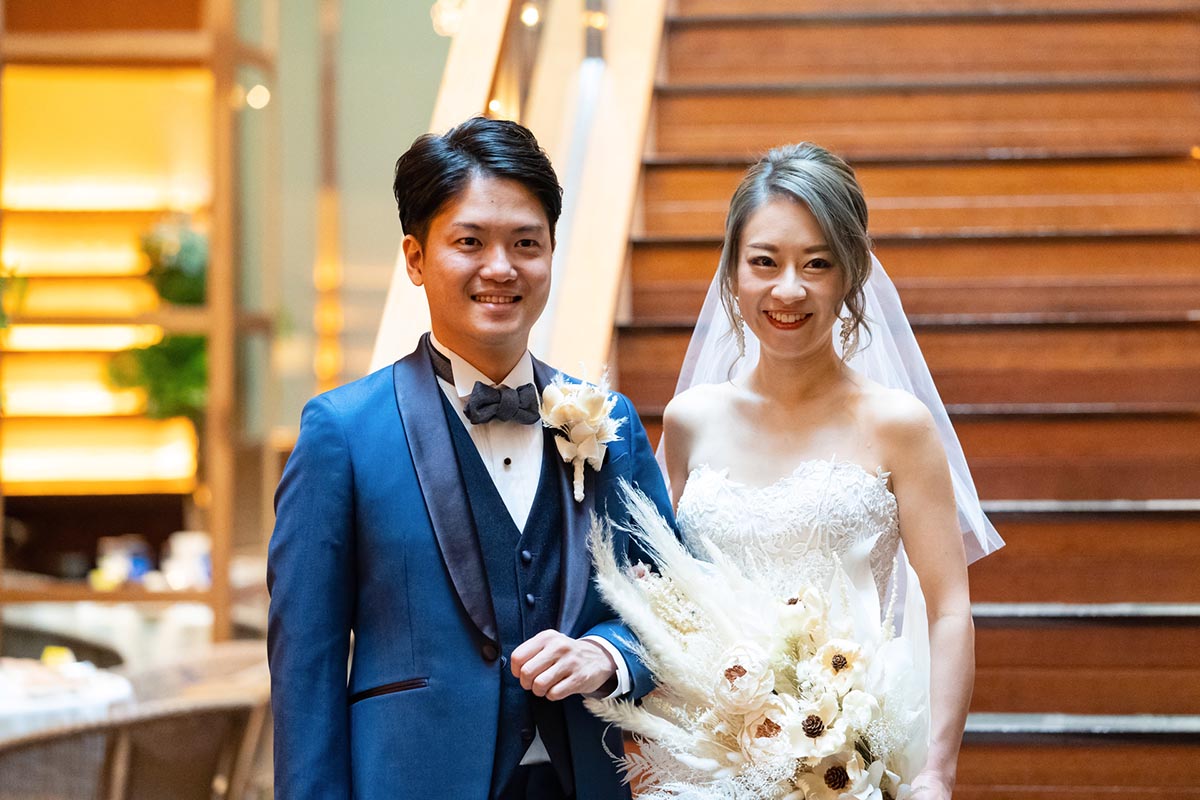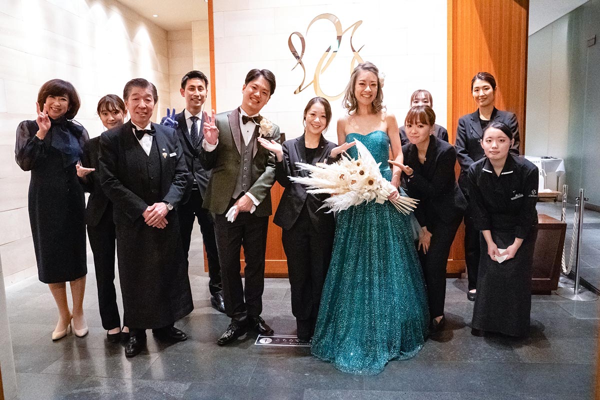 天井が高く開放的な空間やシックな雰囲気などが気に入り、一発で決めました。スタッフの方々が親身に私たちの希望を聞いてくださり、安心してお任せできると感じたことも決め手の一つでした。また、レストランとしても高い評判を見ていましたが、実際に試食させていただき、お料理やワインの味も最高で、ゲストに食べてもらうことがとても楽しみになりました。