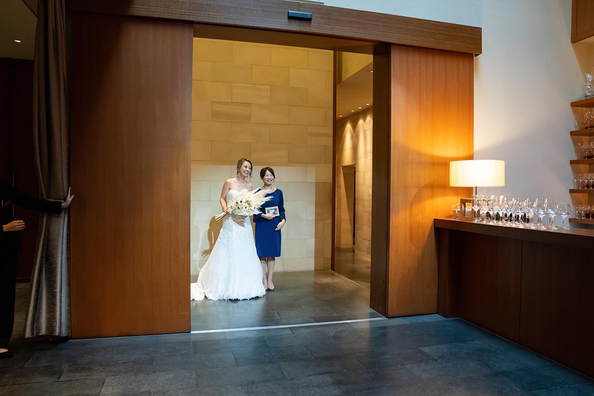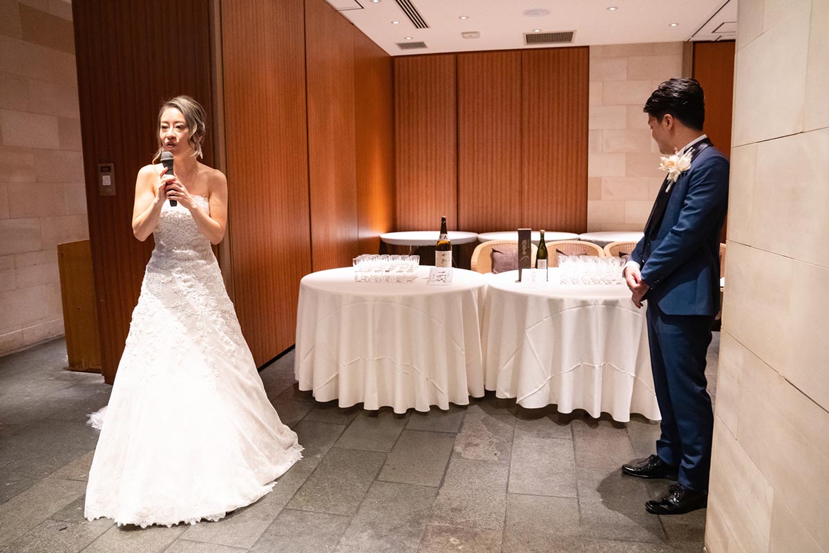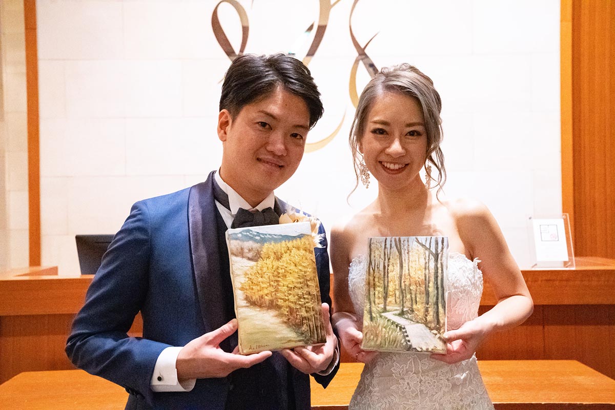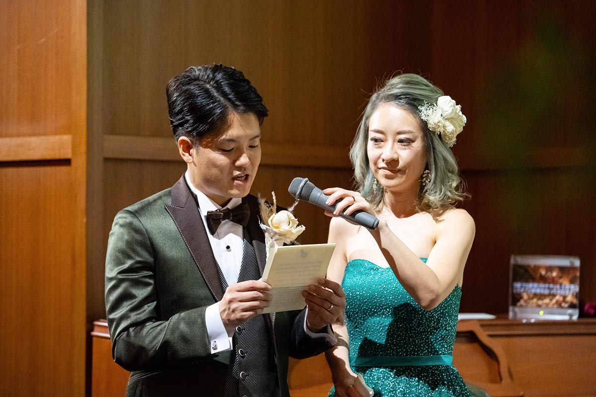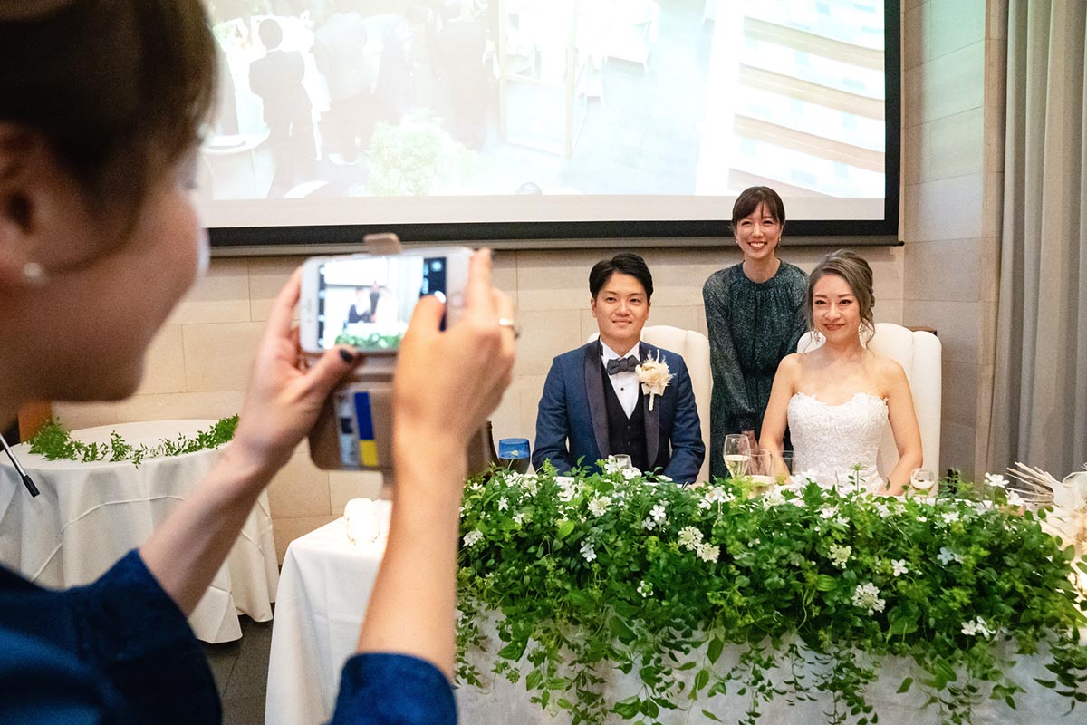 天井が高く開放的な空間やシックな雰囲気などが気に入り、一発で決めました。スタッフの方々が親身に私たちの希望を聞いてくださり、安心してお任せできると感じたことも決め手の一つでした。また、レストランとしても高い評判を見ていましたが、実際に試食させていただき、お料理やワインの味も最高で、ゲストに食べてもらうことがとても楽しみになりました。