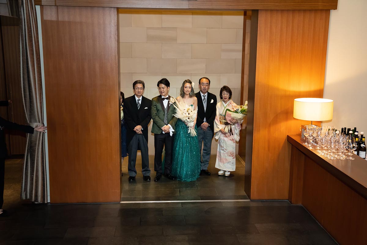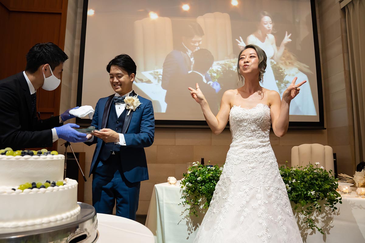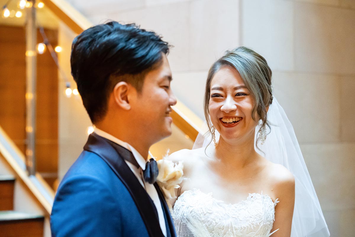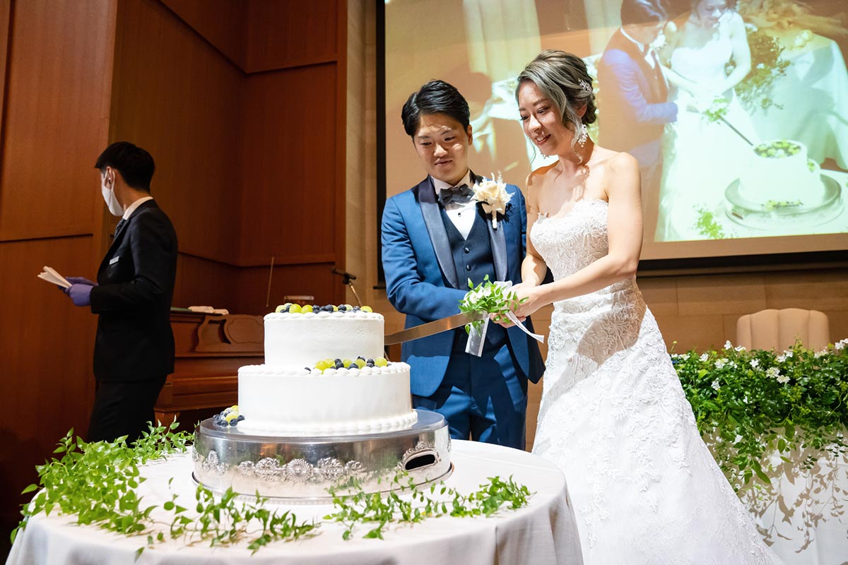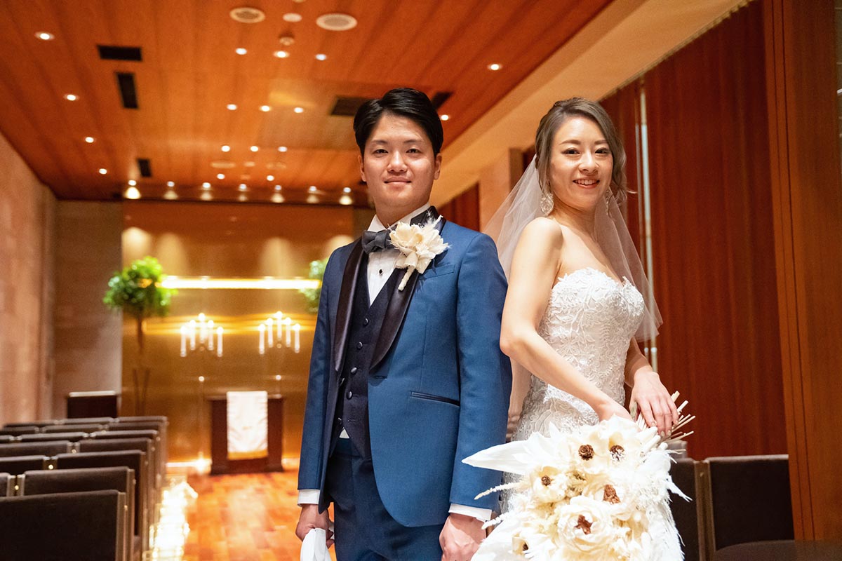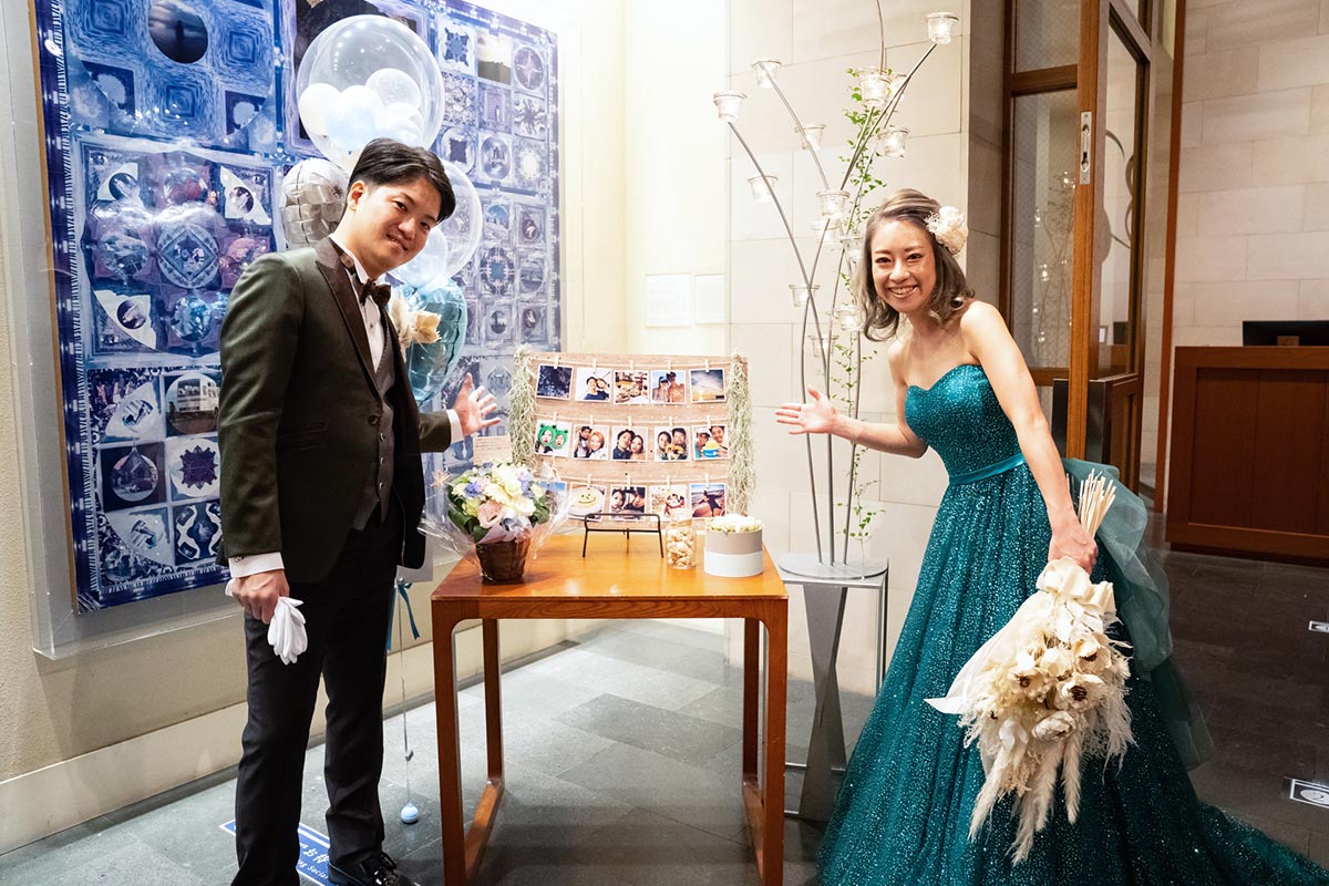 天井が高く開放的な空間やシックな雰囲気などが気に入り、一発で決めました。スタッフの方々が親身に私たちの希望を聞いてくださり、安心してお任せできると感じたことも決め手の一つでした。また、レストランとしても高い評判を見ていましたが、実際に試食させていただき、お料理やワインの味も最高で、ゲストに食べてもらうことがとても楽しみになりました。