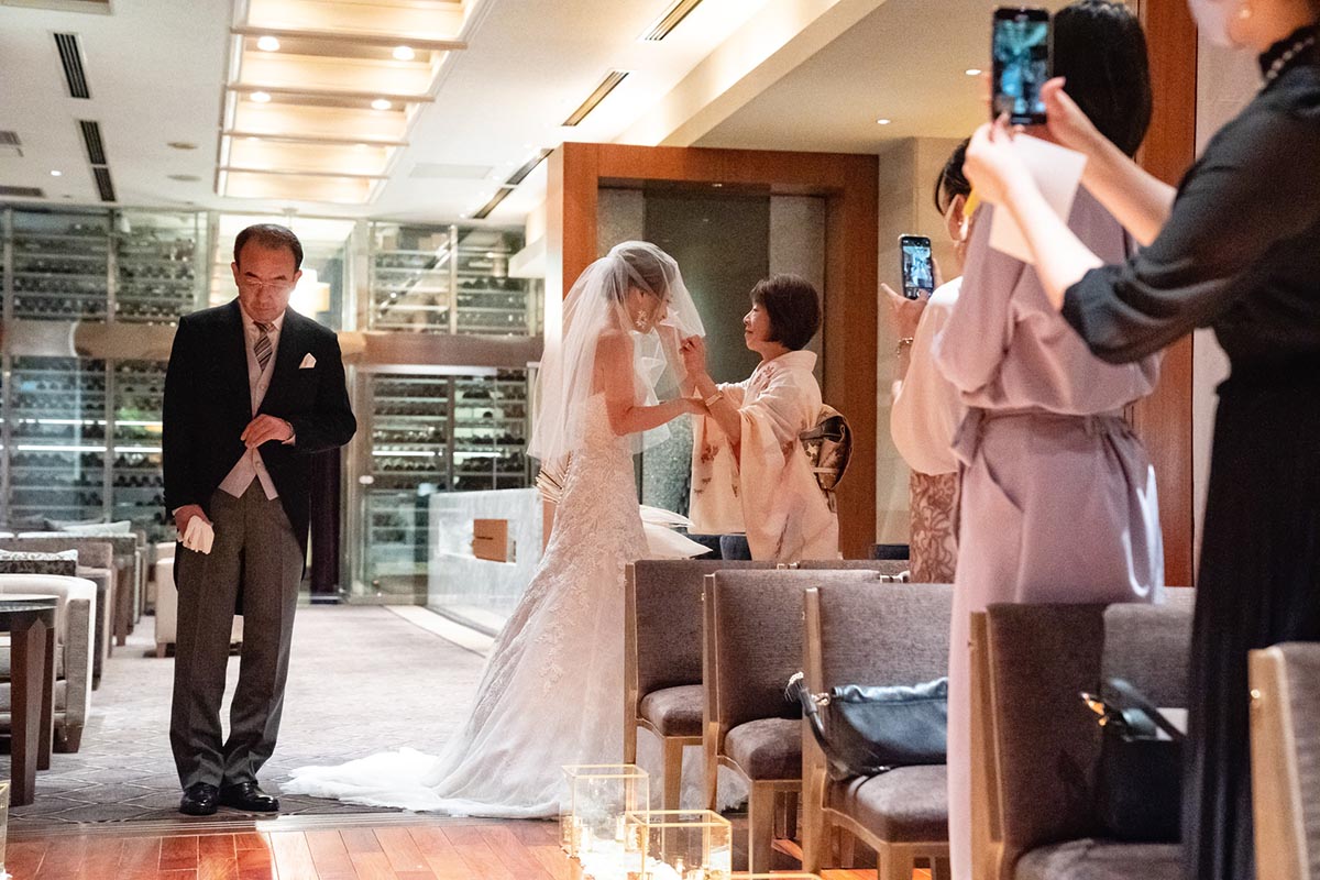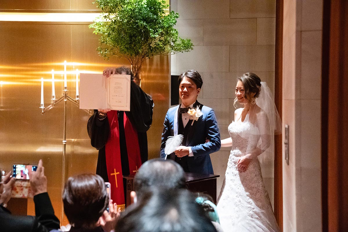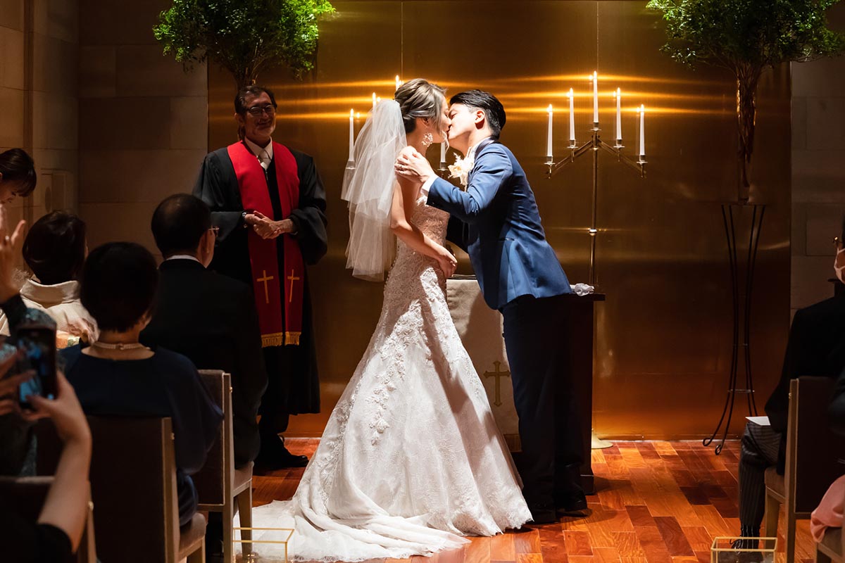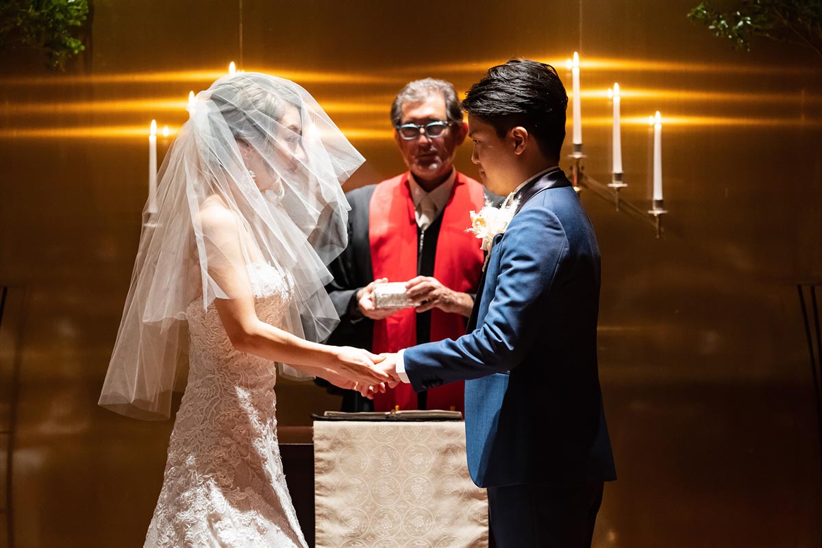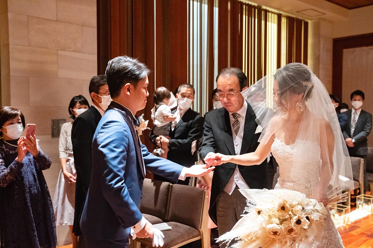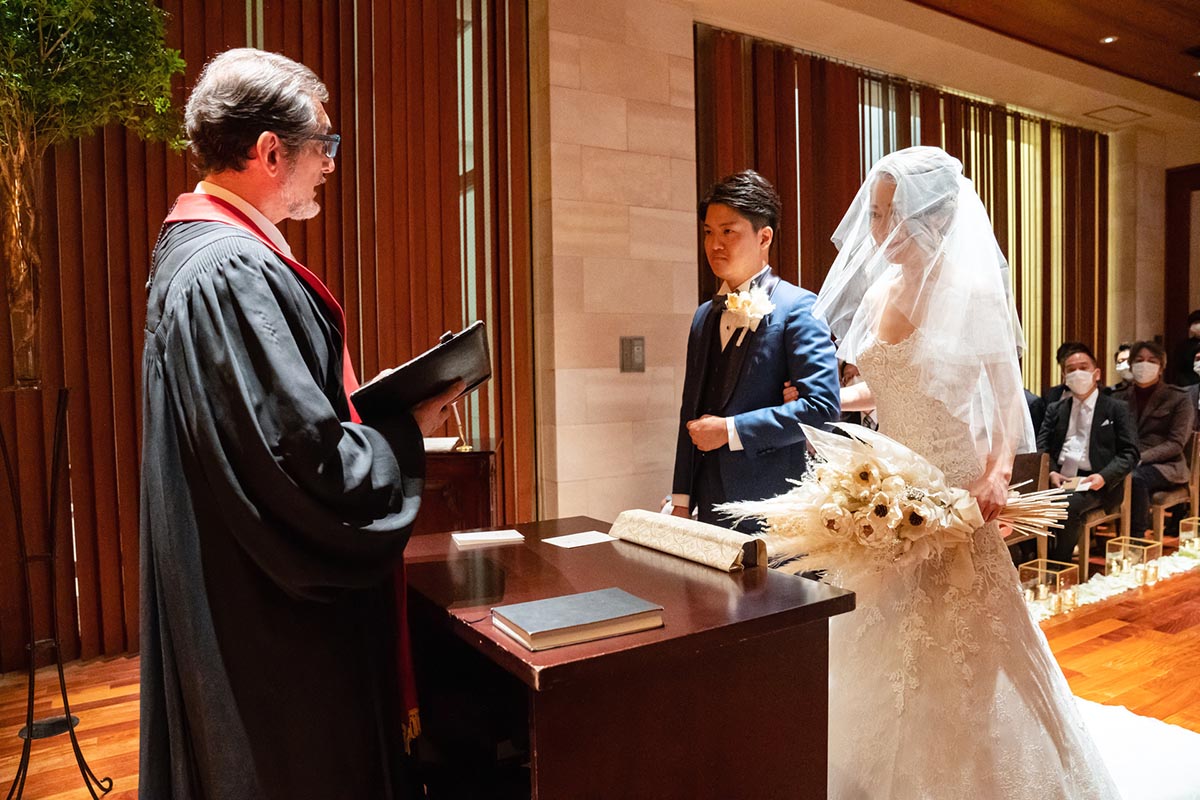 天井が高く開放的な空間やシックな雰囲気などが気に入り、一発で決めました。スタッフの方々が親身に私たちの希望を聞いてくださり、安心してお任せできると感じたことも決め手の一つでした。また、レストランとしても高い評判を見ていましたが、実際に試食させていただき、お料理やワインの味も最高で、ゲストに食べてもらうことがとても楽しみになりました。